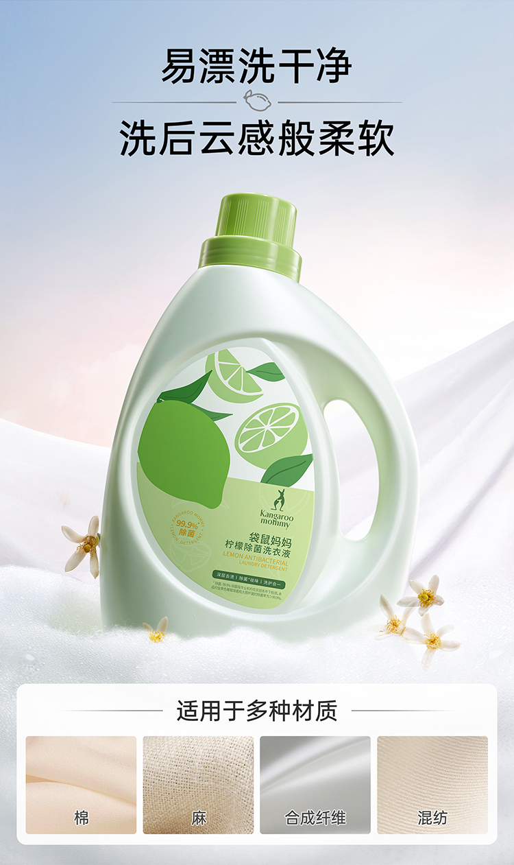 【高效除菌99.9%】袋鼠妈妈天然香水柠檬洗衣液 母婴可用 深层洁净 温和护衣 持久清香 百千万工程助农惠农产品