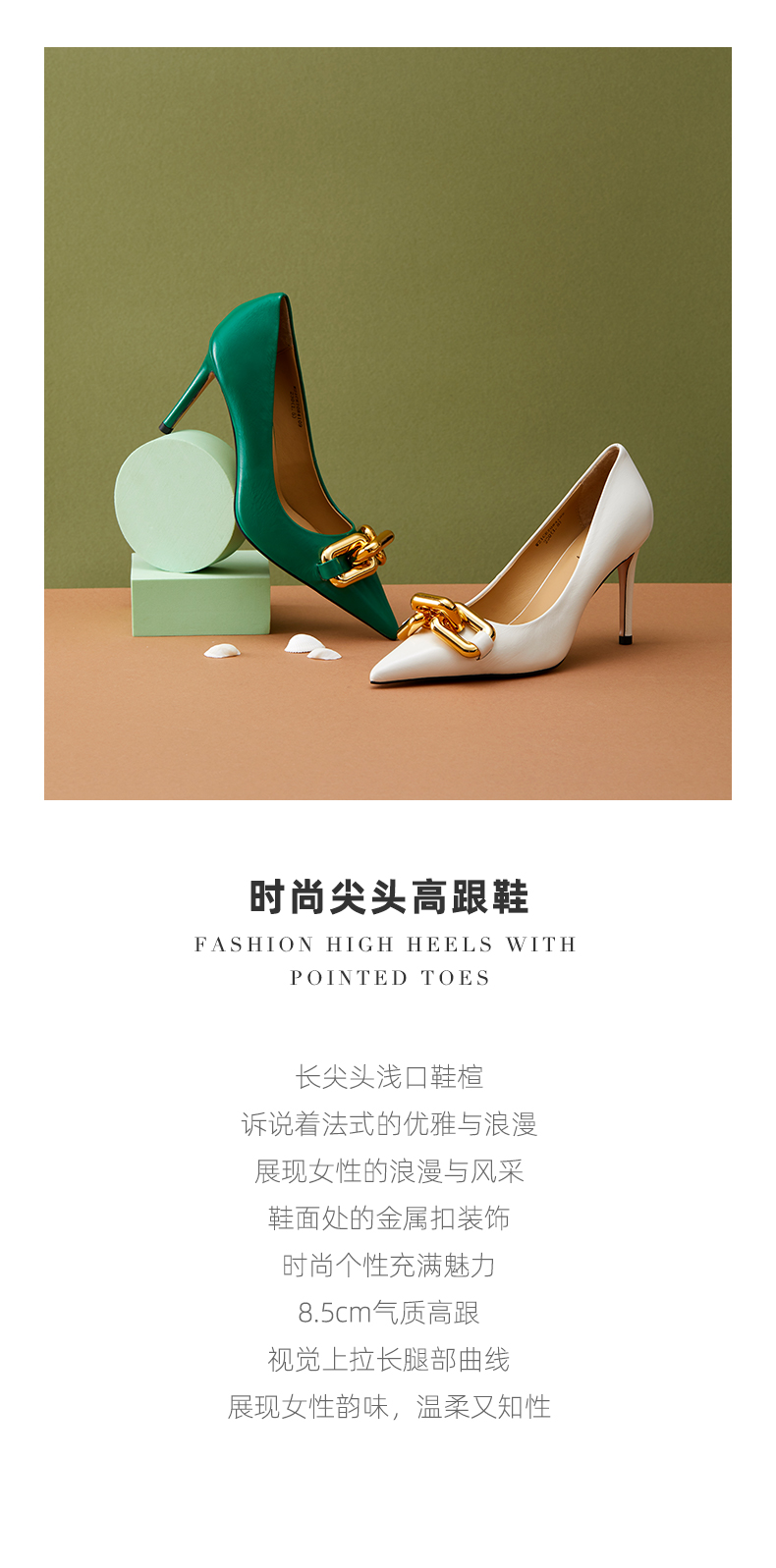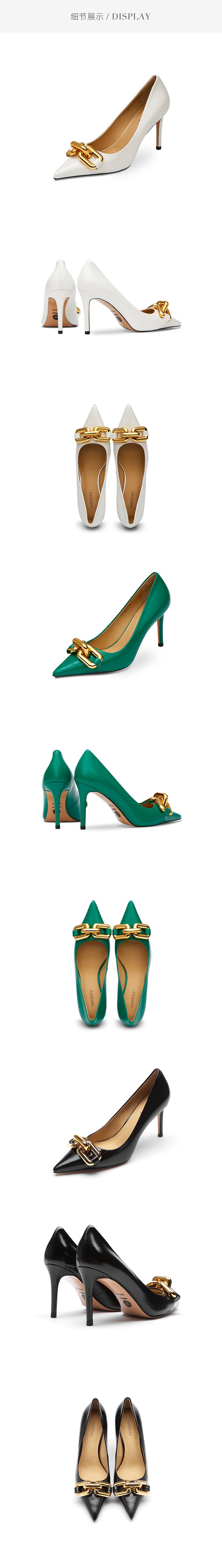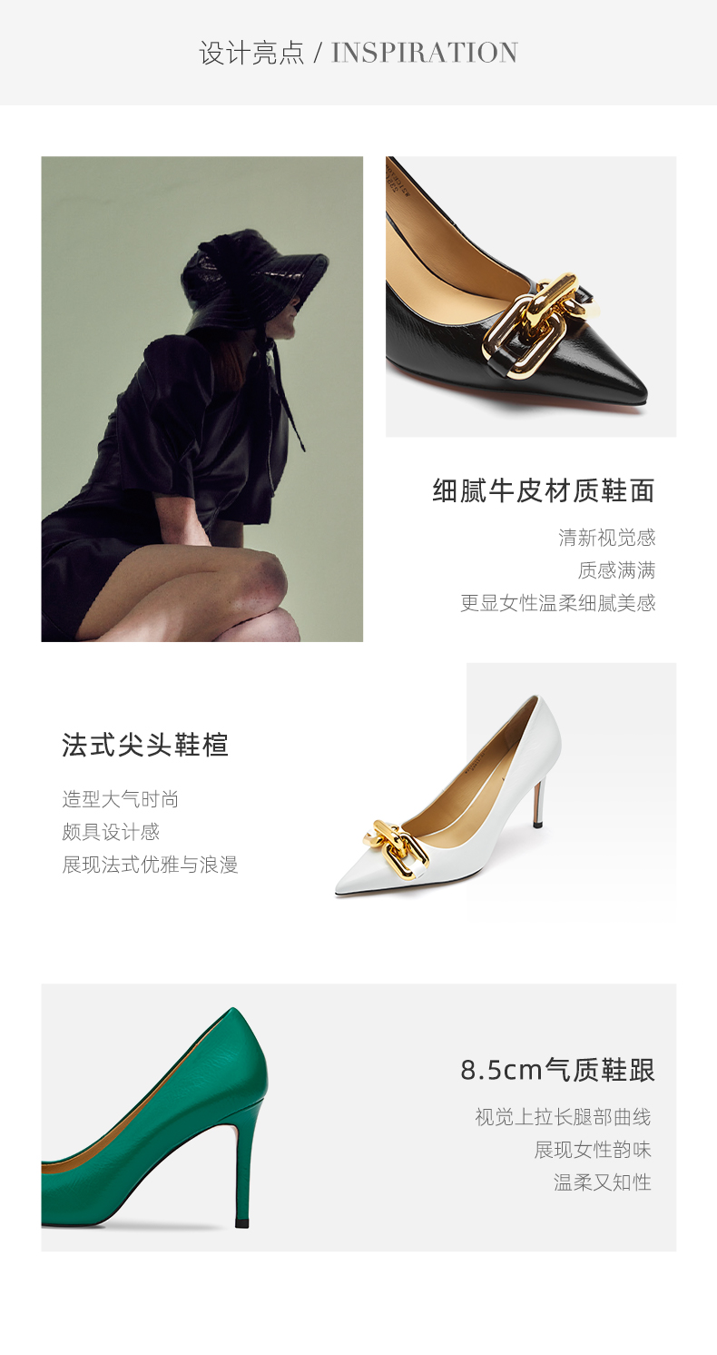 westory夏季彩色羊皮优雅尖头细高跟空鞋女56011