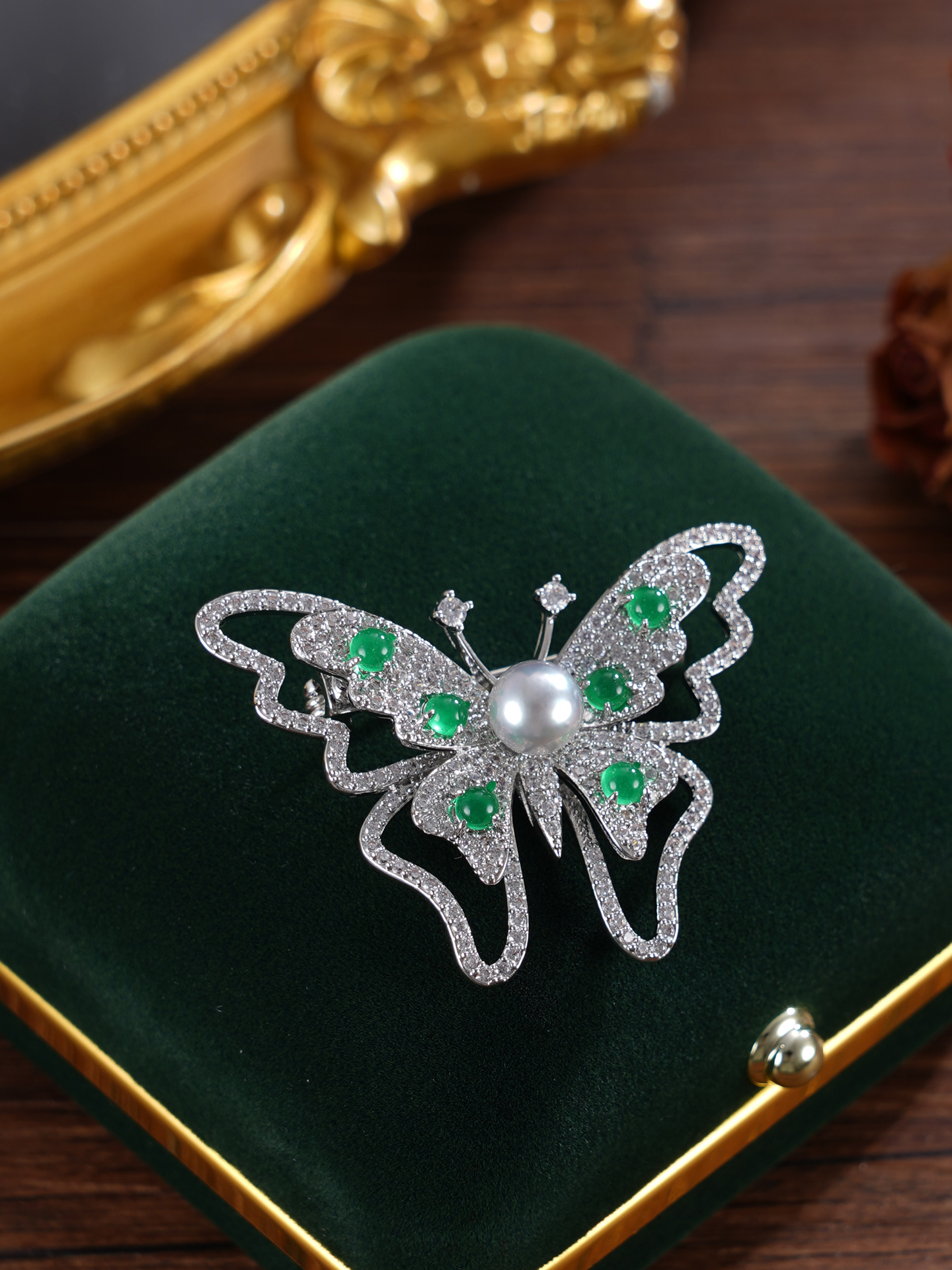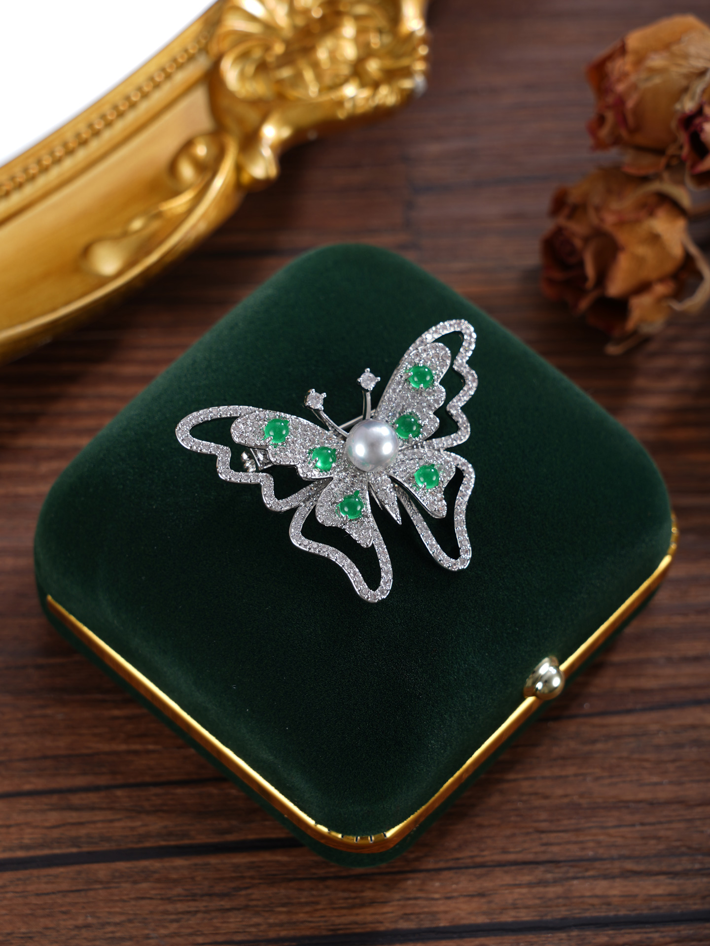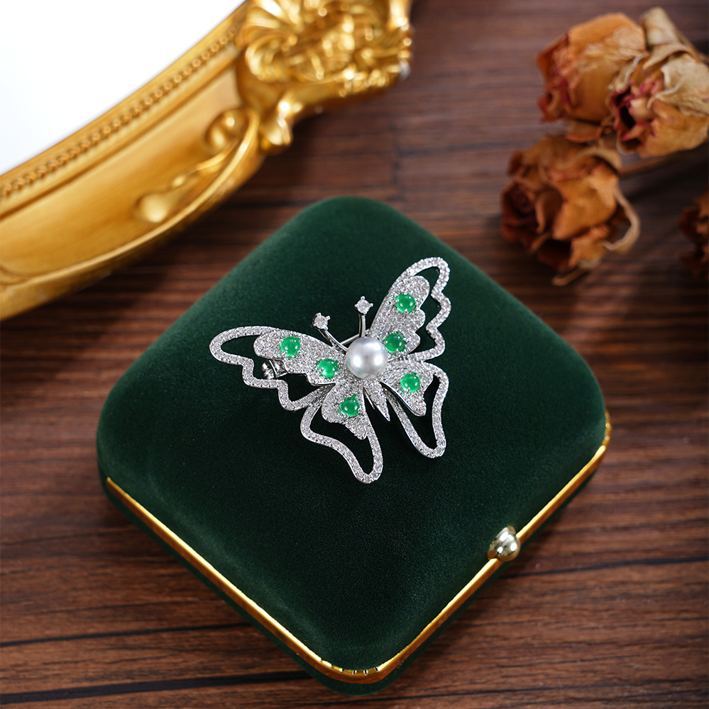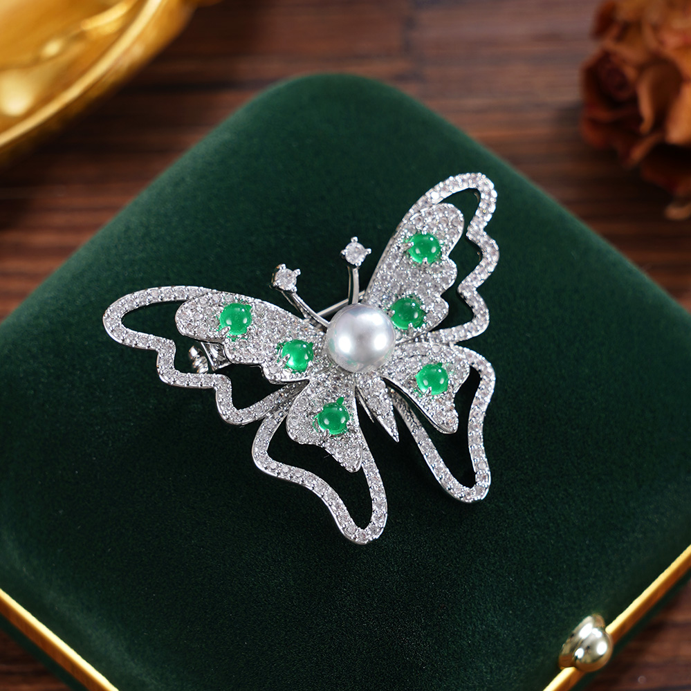 子佩集【蝴蝶春信】珍珠惜王妃胸针【XXXZ250】6mm珠L绿玉髓2601