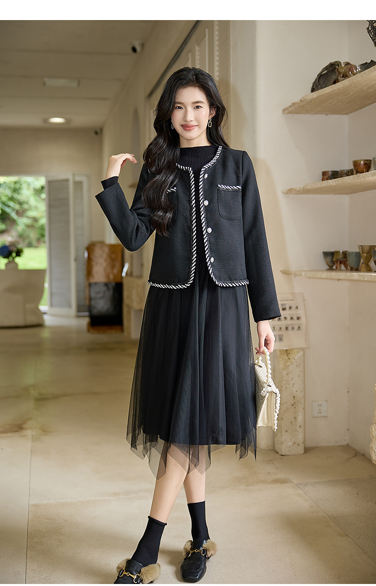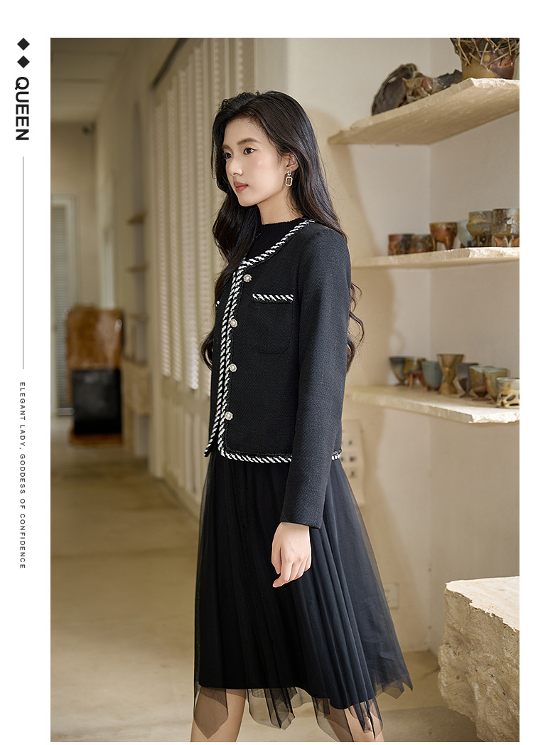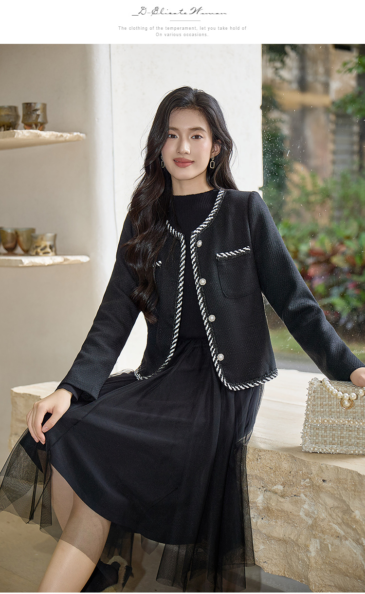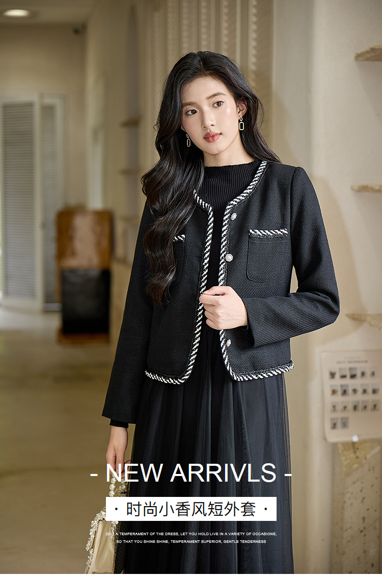 奢姿大码女装2025秋季胖妹妹减龄织带花边设计V领小香风短外套9953353655