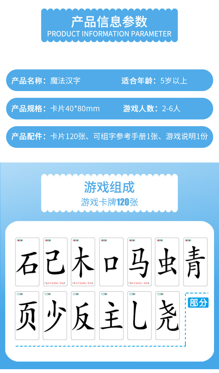 【魔法识字卡片】儿童汉字偏旁部首全套魔术牌趣味桌游戏男女孩幼儿园宝宝小学生拼字组合