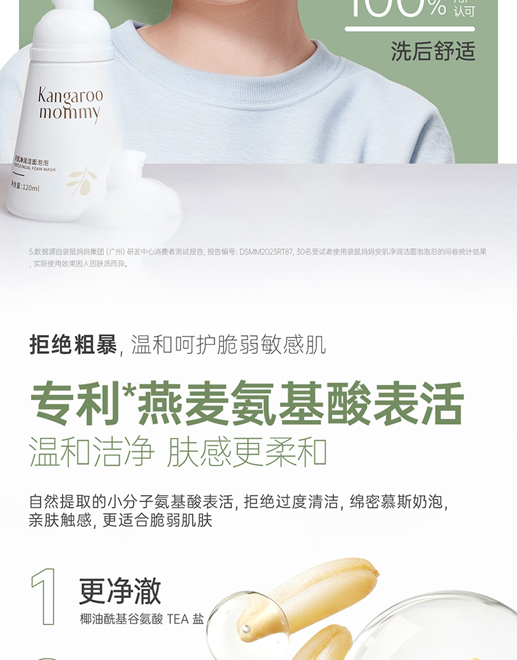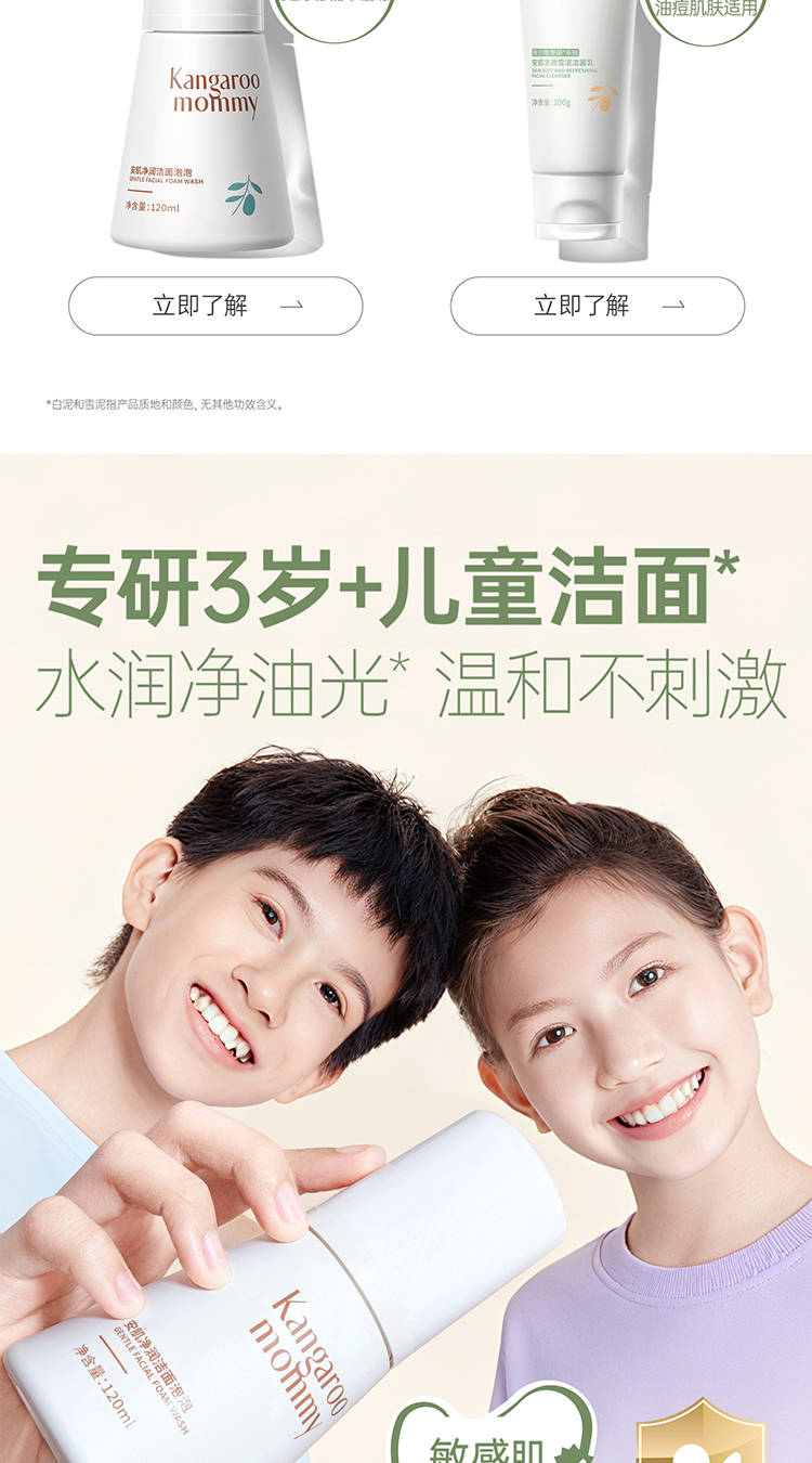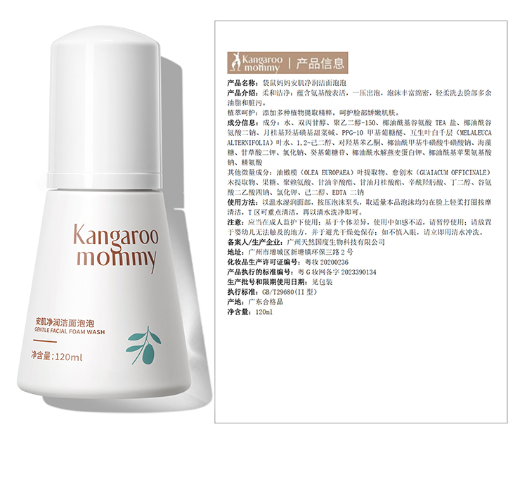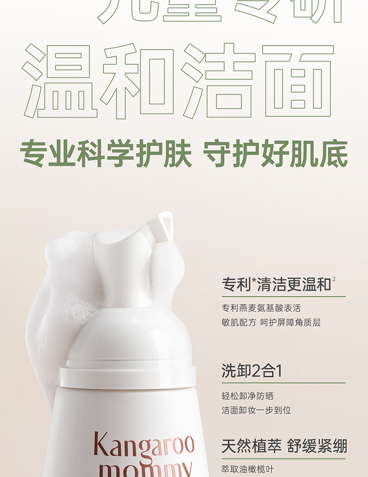 【儿童洁面泡泡】3岁+洁面 一泵净全脸 净油防痘 袋鼠妈妈安肌净润洁面泡泡120ml