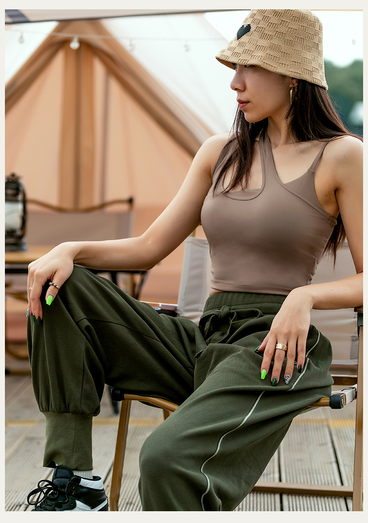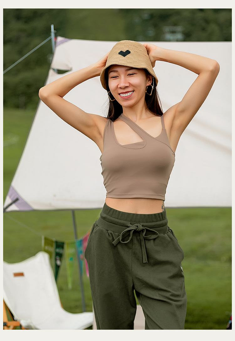 【双磨肌理】方领肩袢装饰带胸垫运动背心