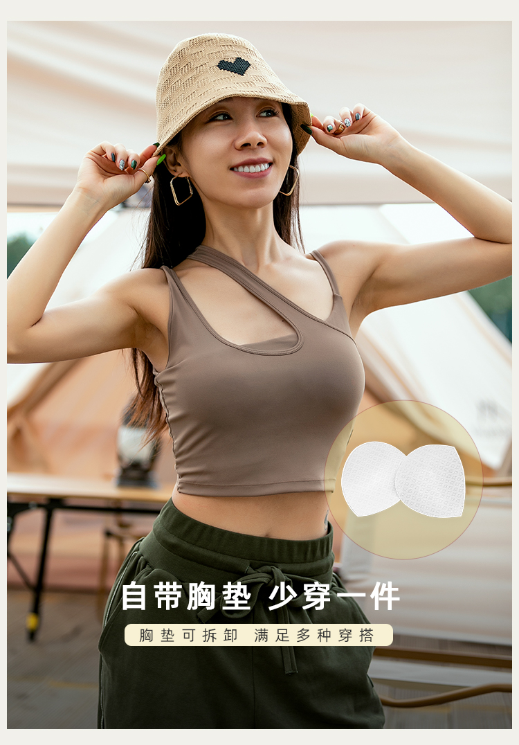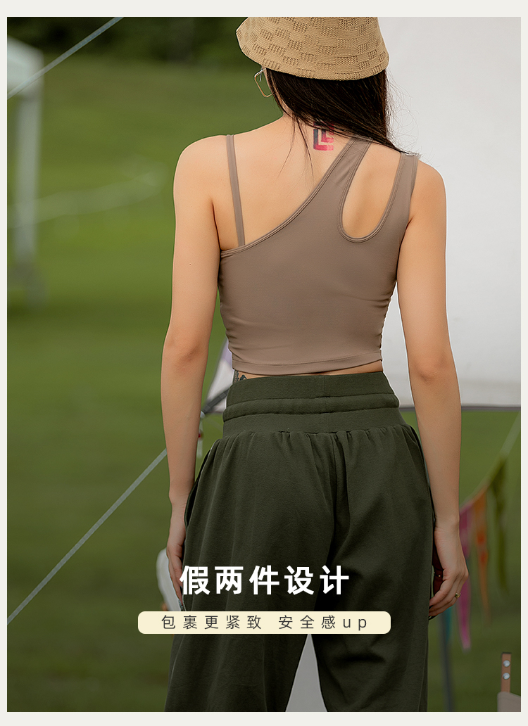 【裸感高弹】肩带不对称带胸垫假两件背心