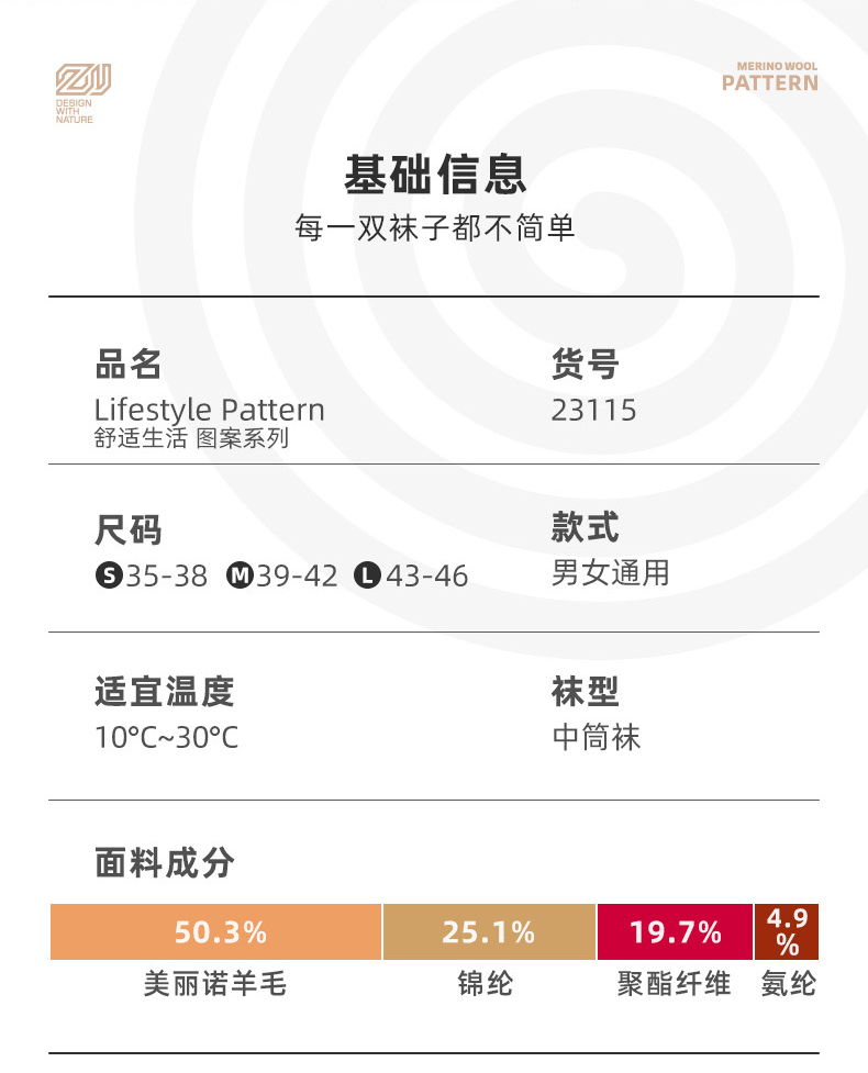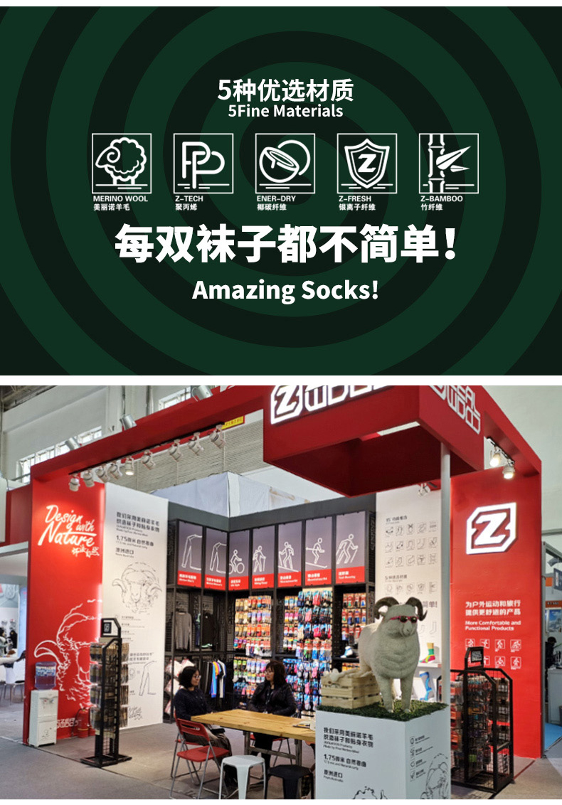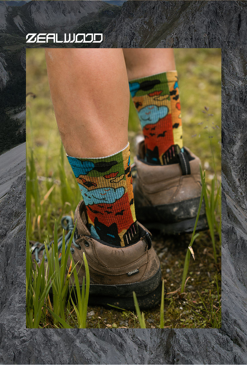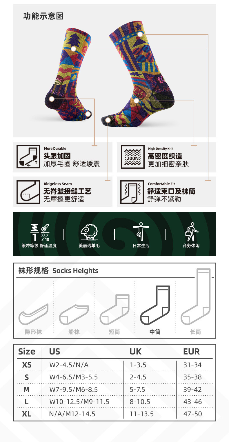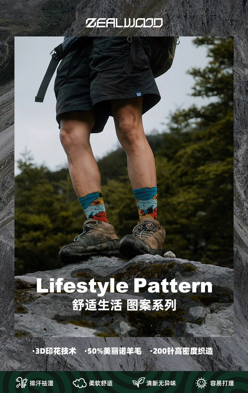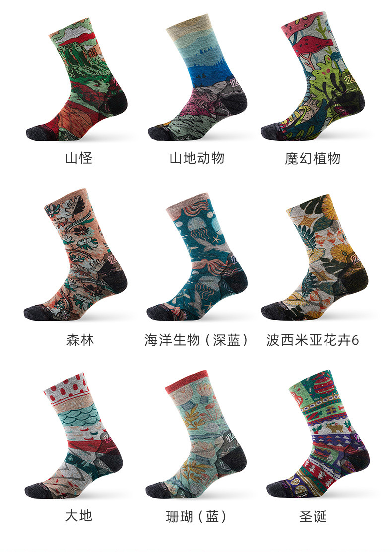 新品升级199元2双赛乐ZEALWOOD美丽诺羊毛3D印花潮袜速干透气