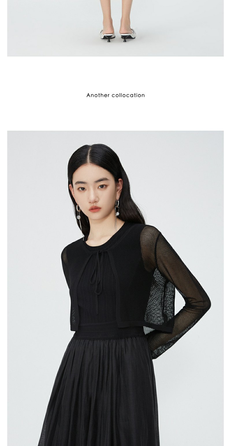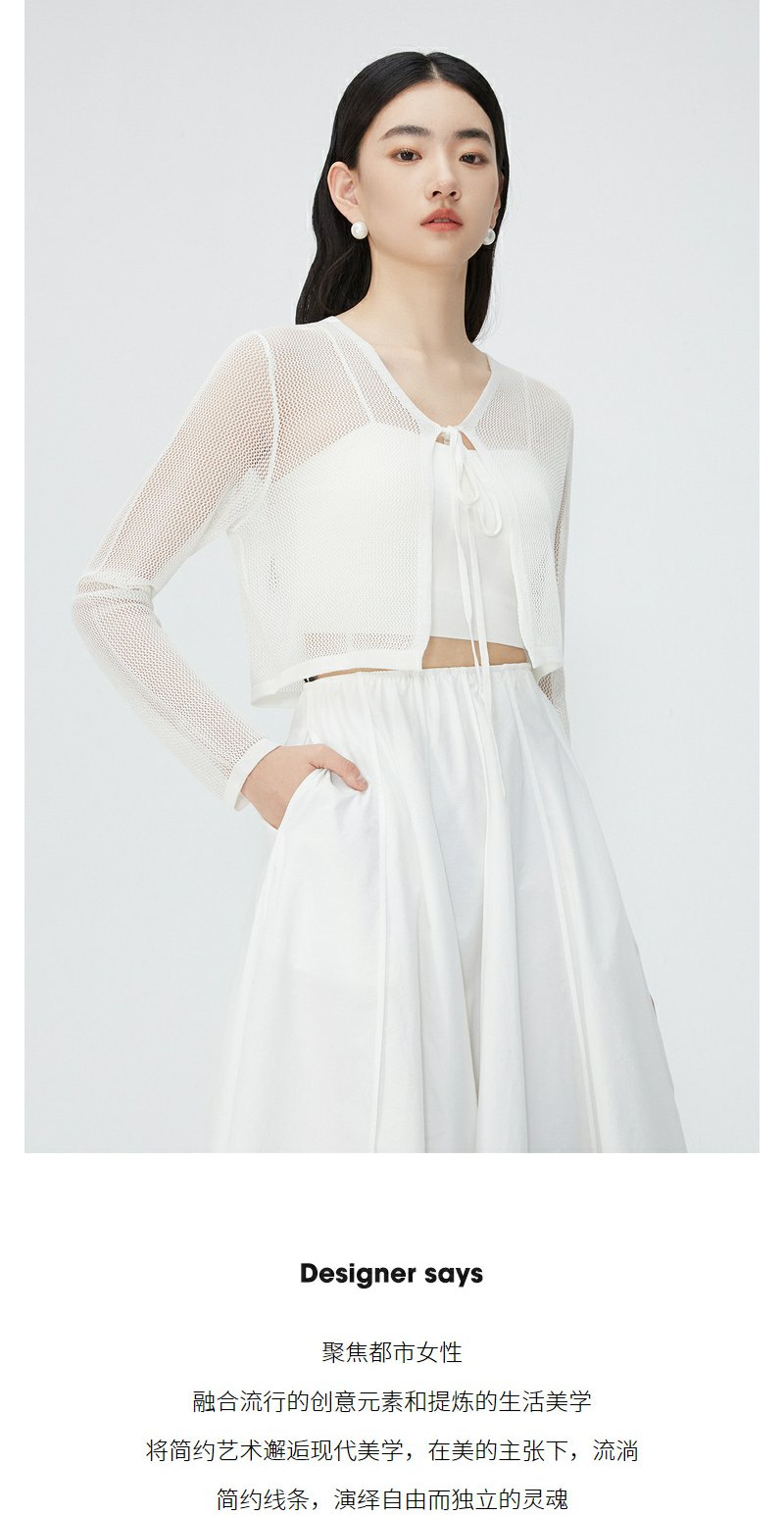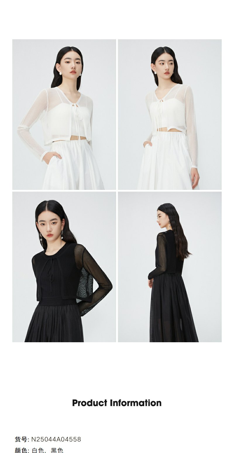 NEELLY纳俪商场同款夏季新款V领绑带高腰针织开衫女温柔百搭上衣N25044A04558