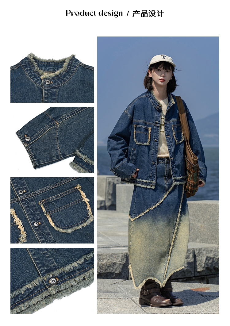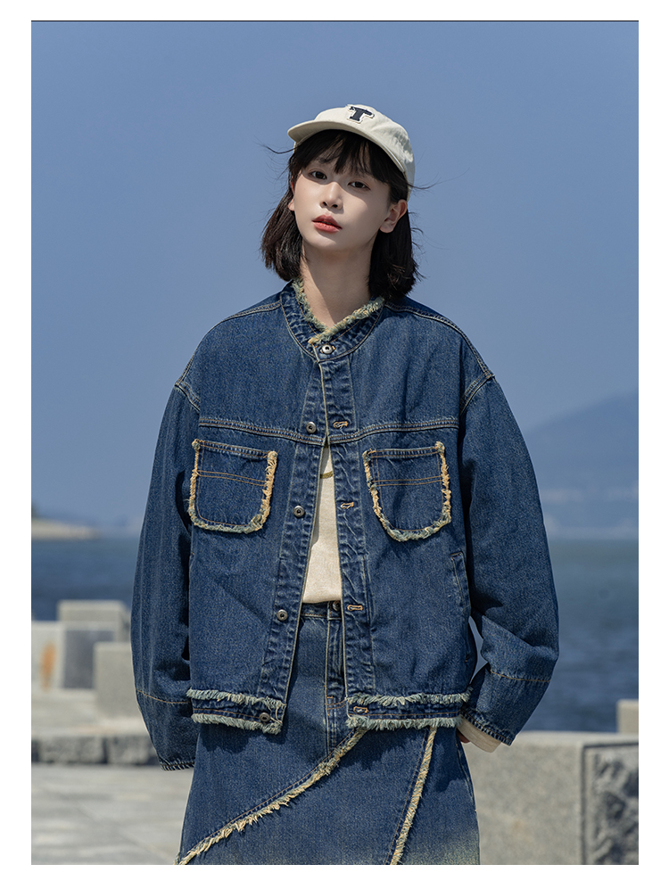 早乙女惠子saotome/STMWT243139/做旧毛边水洗牛仔外套