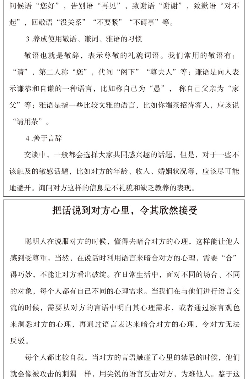 我们都生活在一定的集体中,免不了与人交流与沟通,而人际关系好的人很明显有个撒手锏——说话时把握人心,了解如何为人处世,进而左右逢源,受人欢迎。