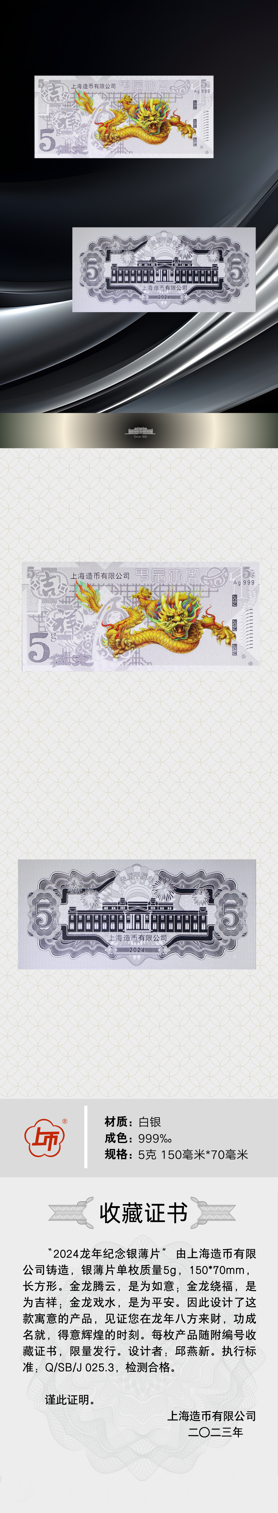 2024龙年纪念银薄片5克