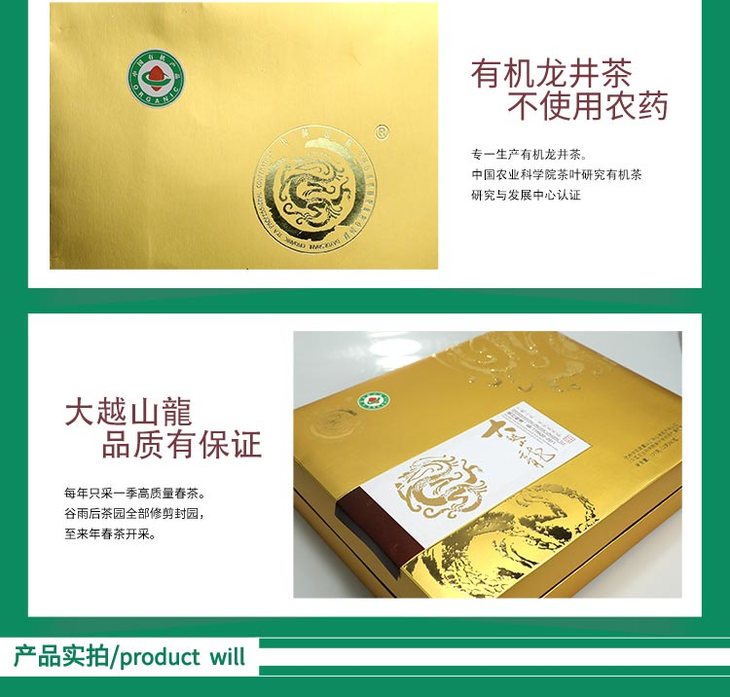【明前】有机龙井茶绿茶茶叶礼盒装 120g共60包 新茶贡品明前 【节日礼盒装】 包邮