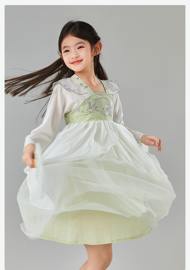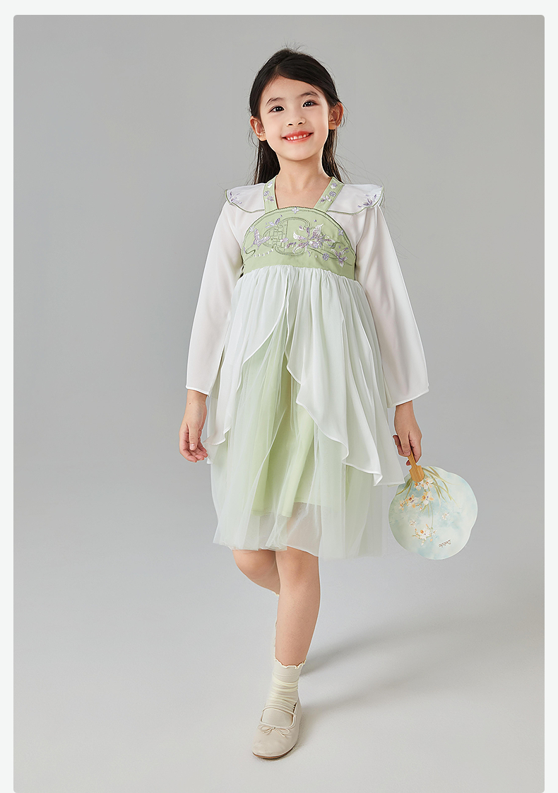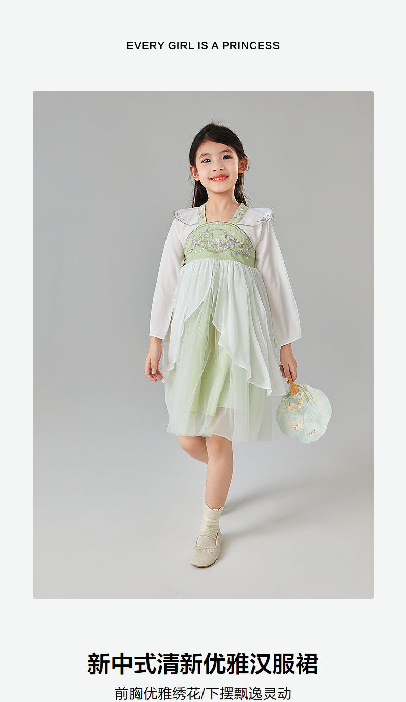 笛莎Deesha 童装女童连衣裙2025春新款新中式清新优雅汉服裙