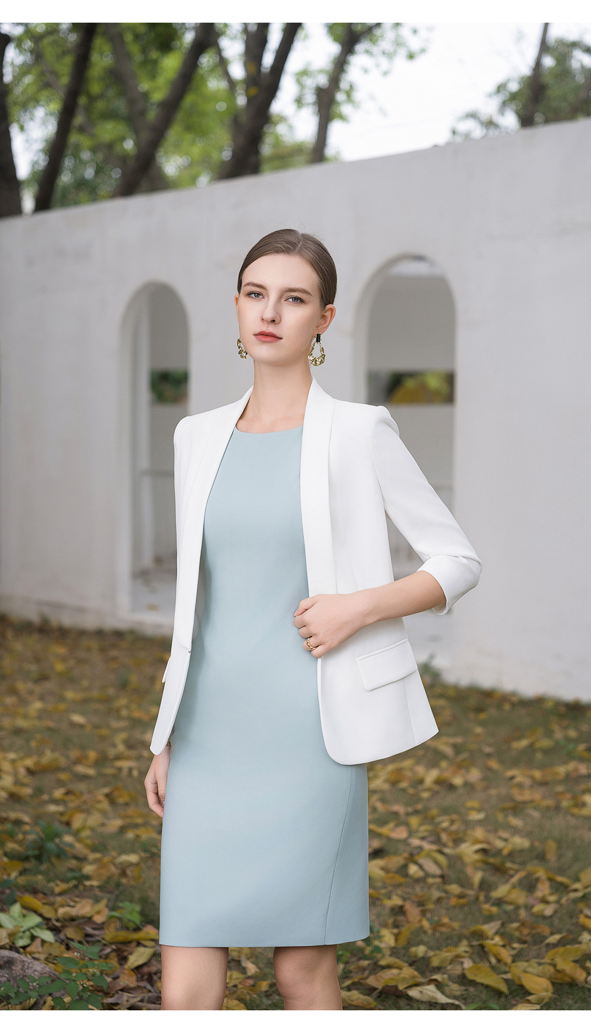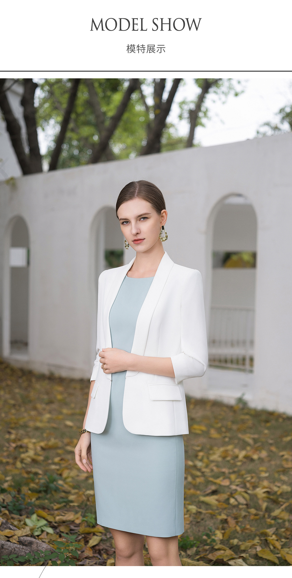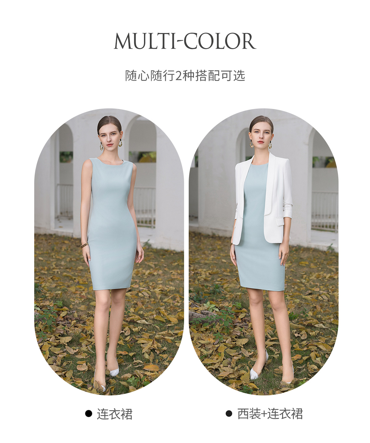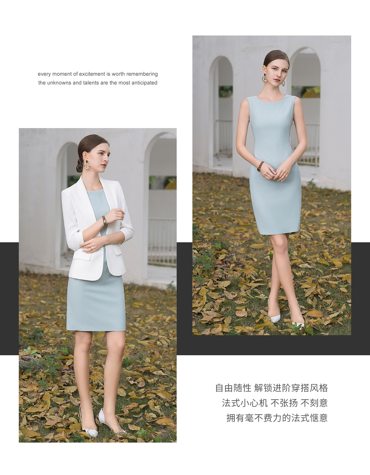 IWY/高端职业装两件套女总裁范西装套装白色西服内搭蓝连衣裙无袖C1989+Q1100