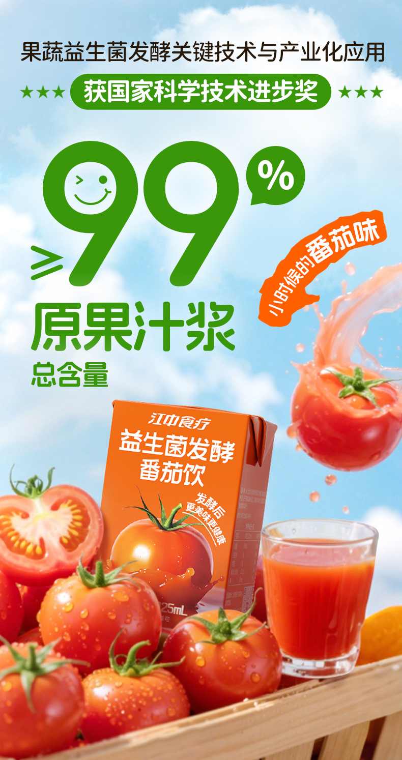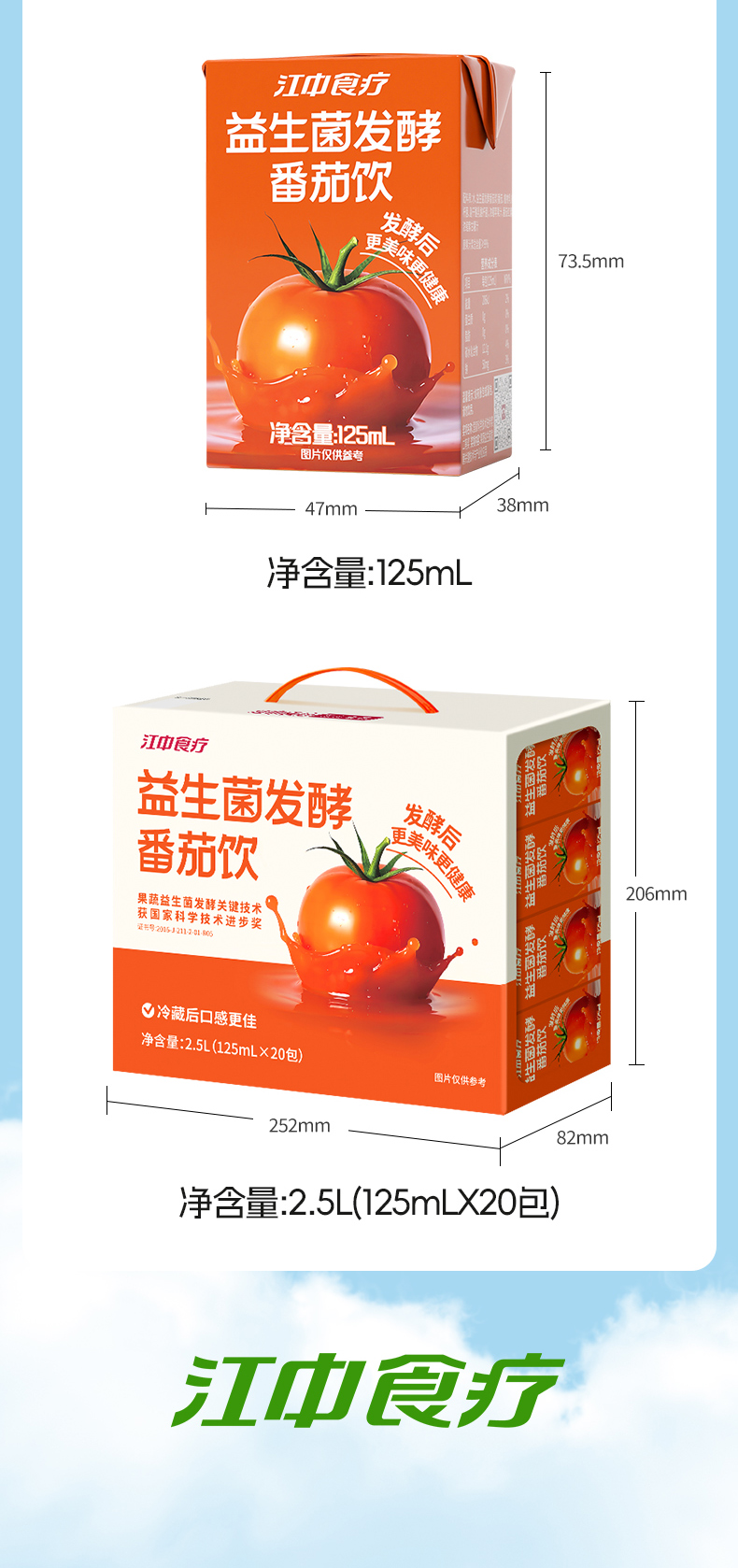【积分兑换】江中食疗益生菌发酵番茄饮125mL*20包装 2025年8月生产 保质期12个月