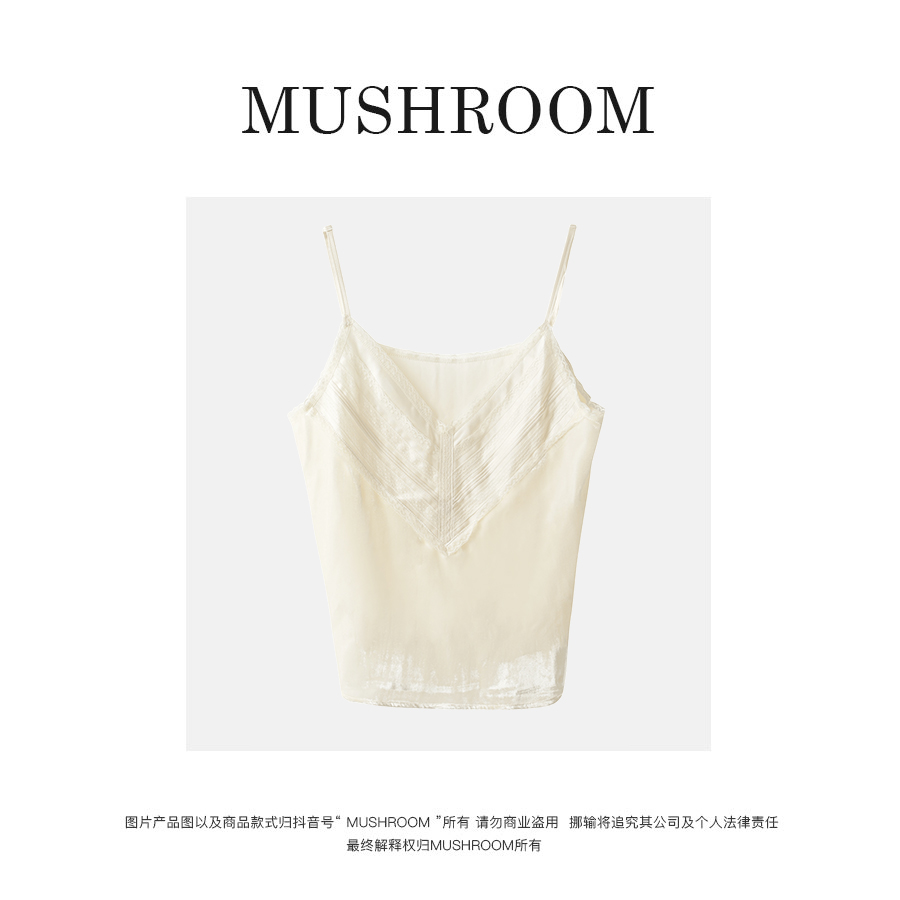 金蘑菇菇【瓷肌琉璃】新款丝绒蕾丝刺绣上衣通勤百搭吊带女
