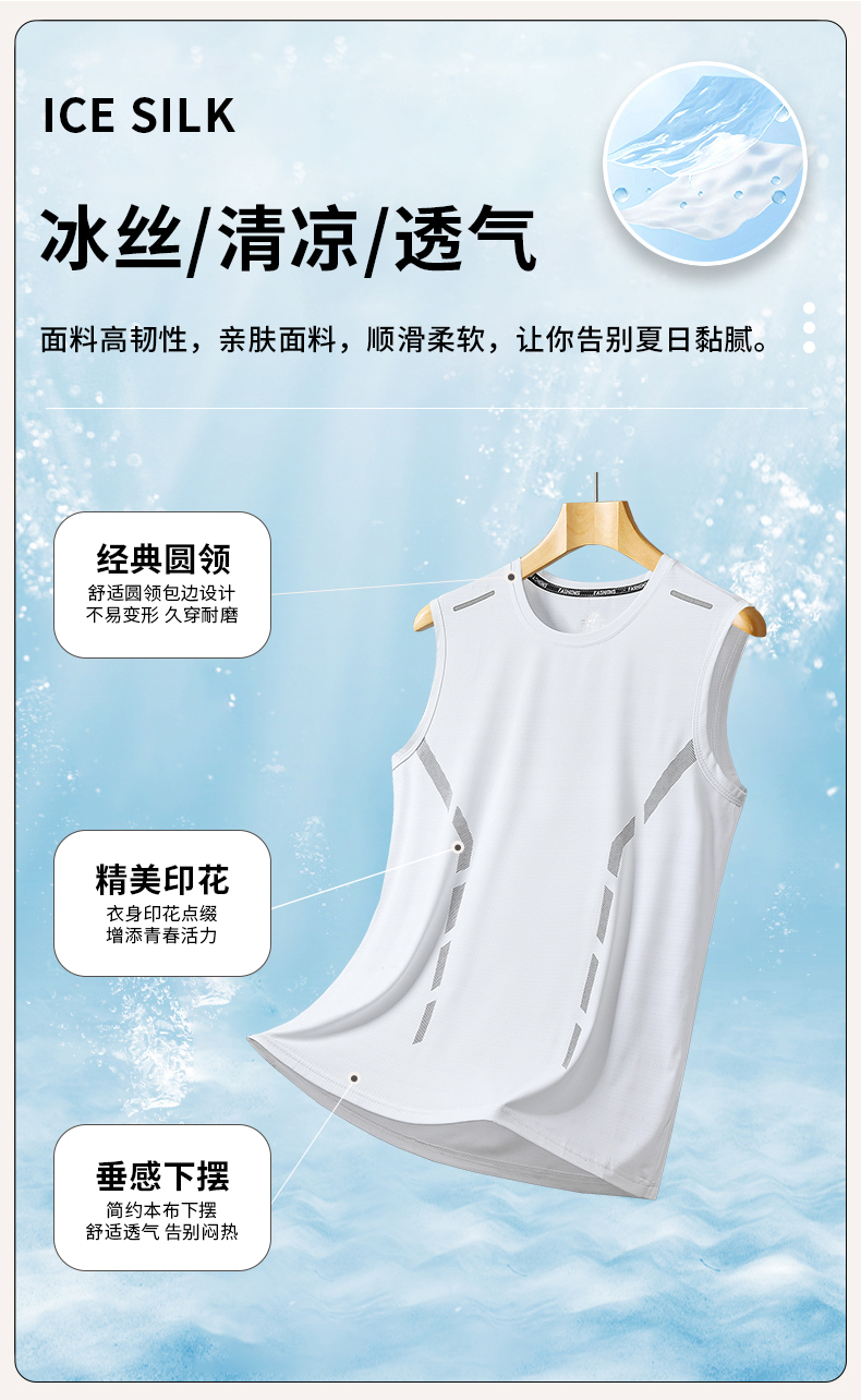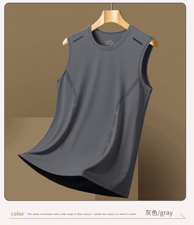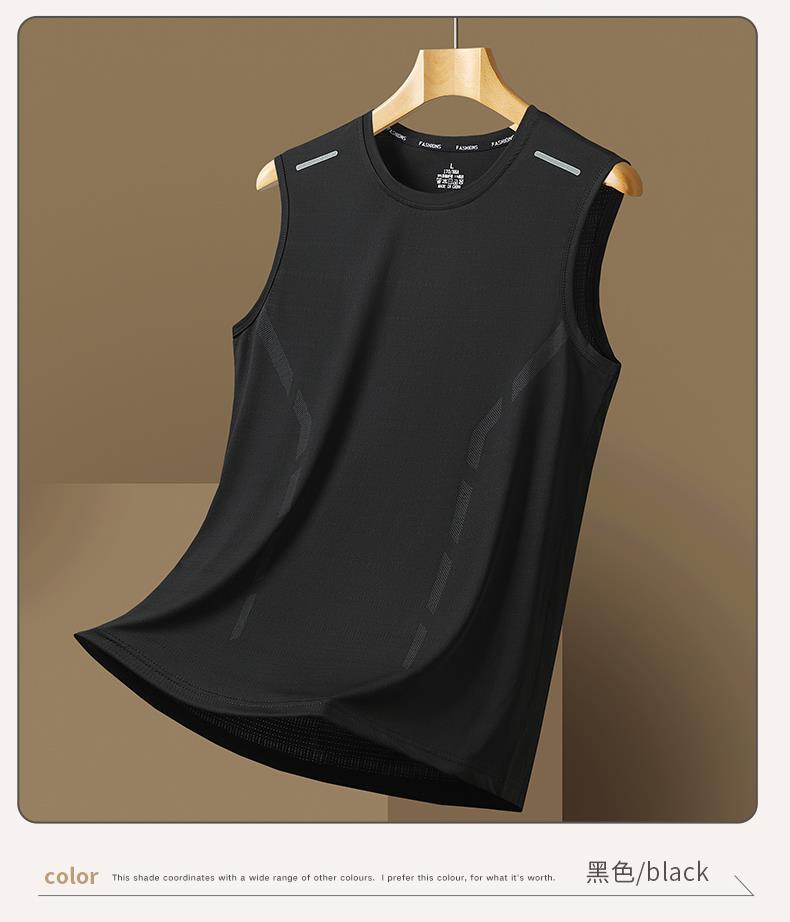 【买上衣送裤子!2025新品!男士冰丝运动两件套!】冰丝休闲运动套装男士夏季2024新款跑步健身背心短裤搭配两件套装-24XH029