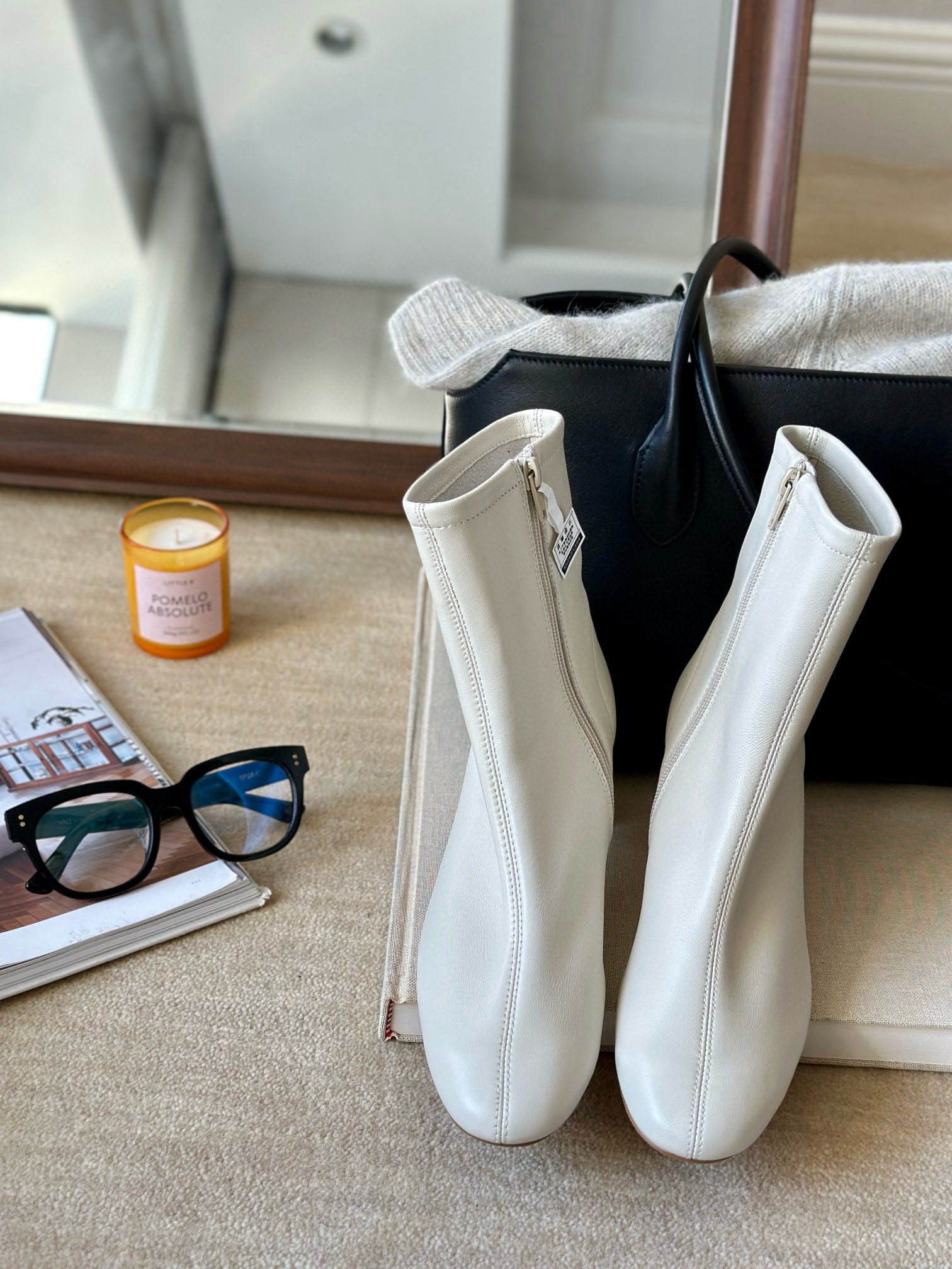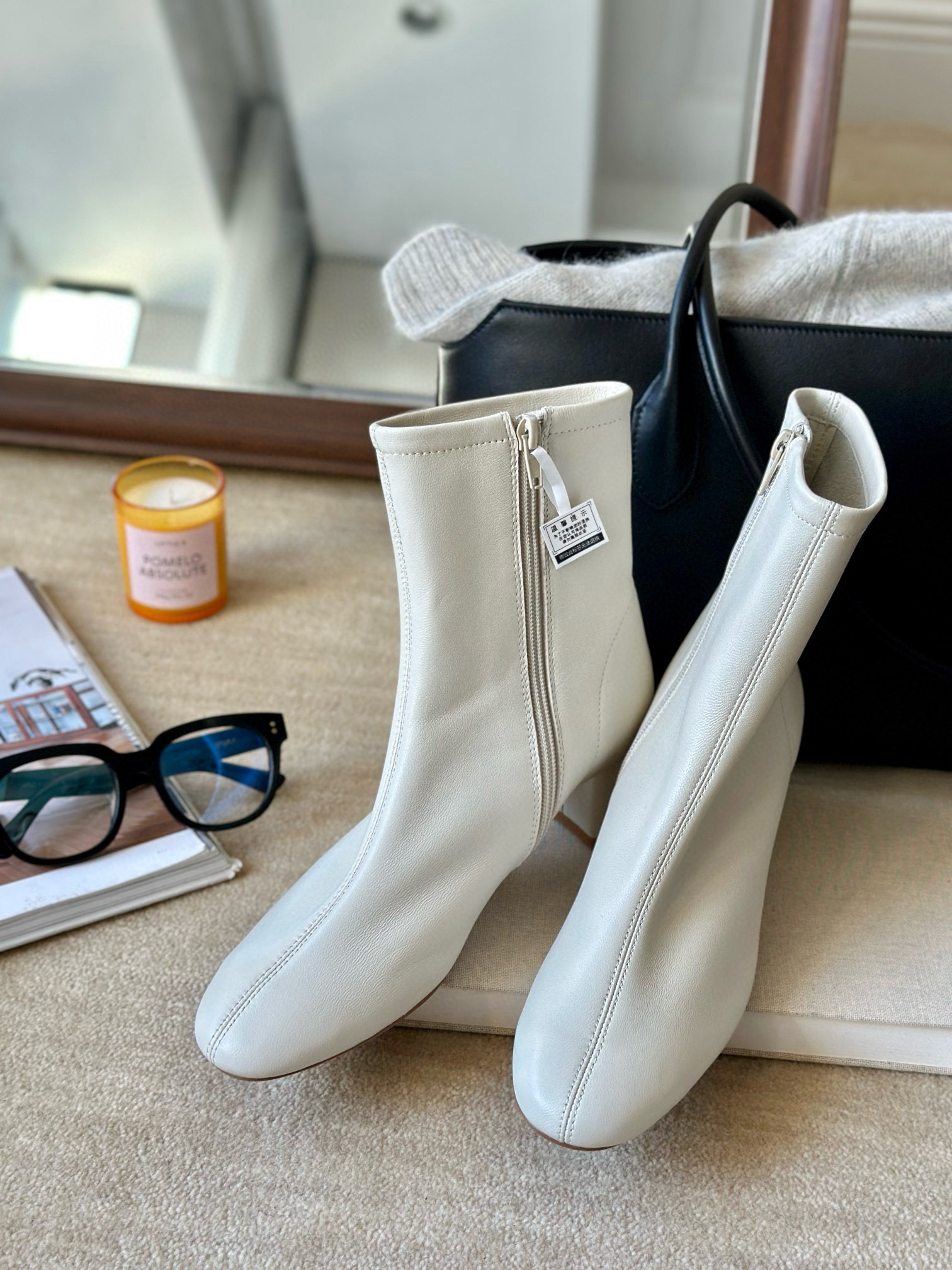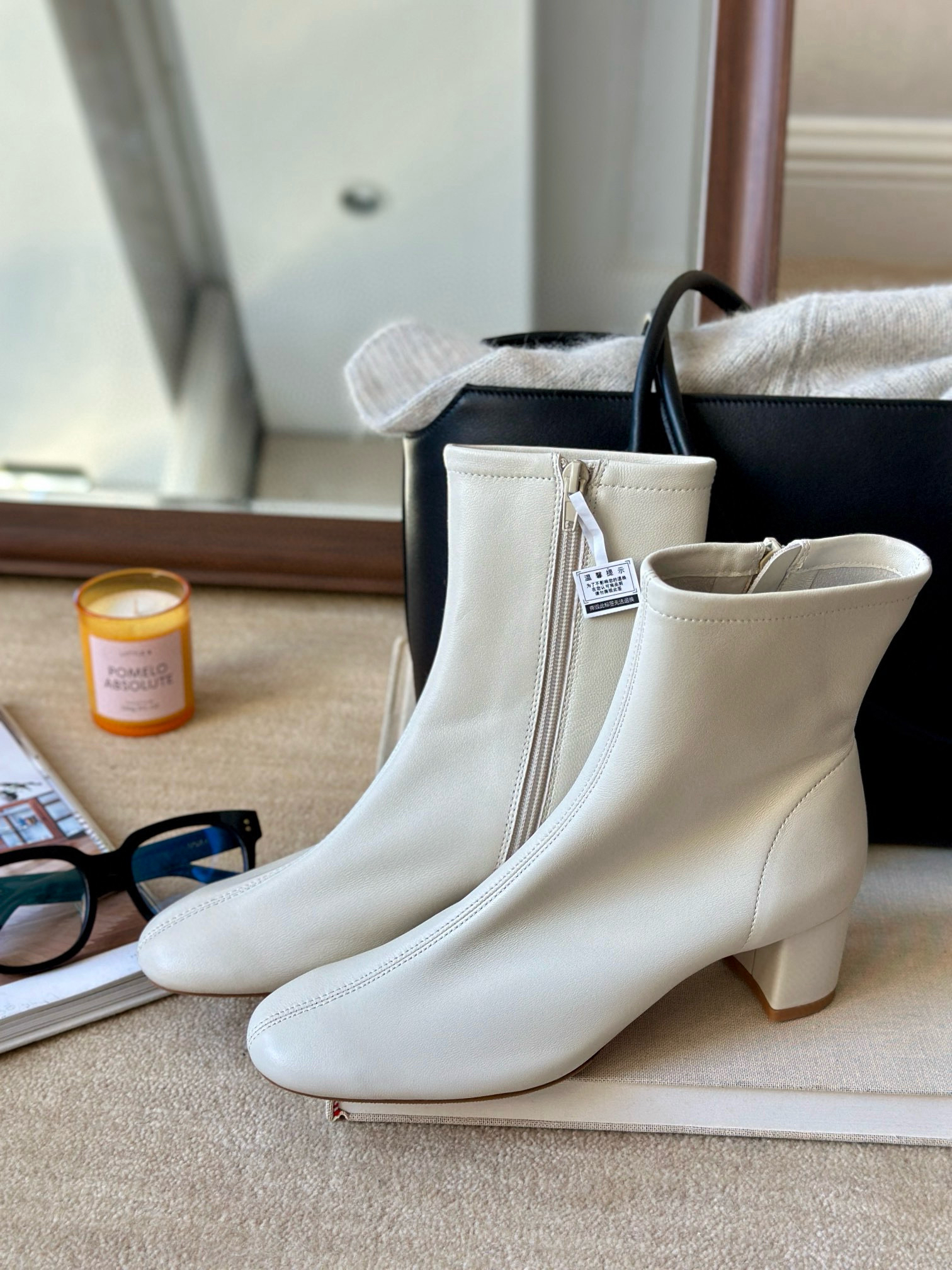 白色的短靴,在秋冬会有意外不到的效果,即便全身暗色,也会让整个搭配轻盈起来,不管是搭配白色阔腿裤,还是黑色,牛仔色,白色短靴分外适配。小羊皮带来的袜套脚感,让舒适升级,中缝缝制,更有袜套的古朴设计感觉。亲肤,透气,舒适,经典好走的6cm方圆跟,恰好好处的跟高,驾驭起来完全木有鸭梨。