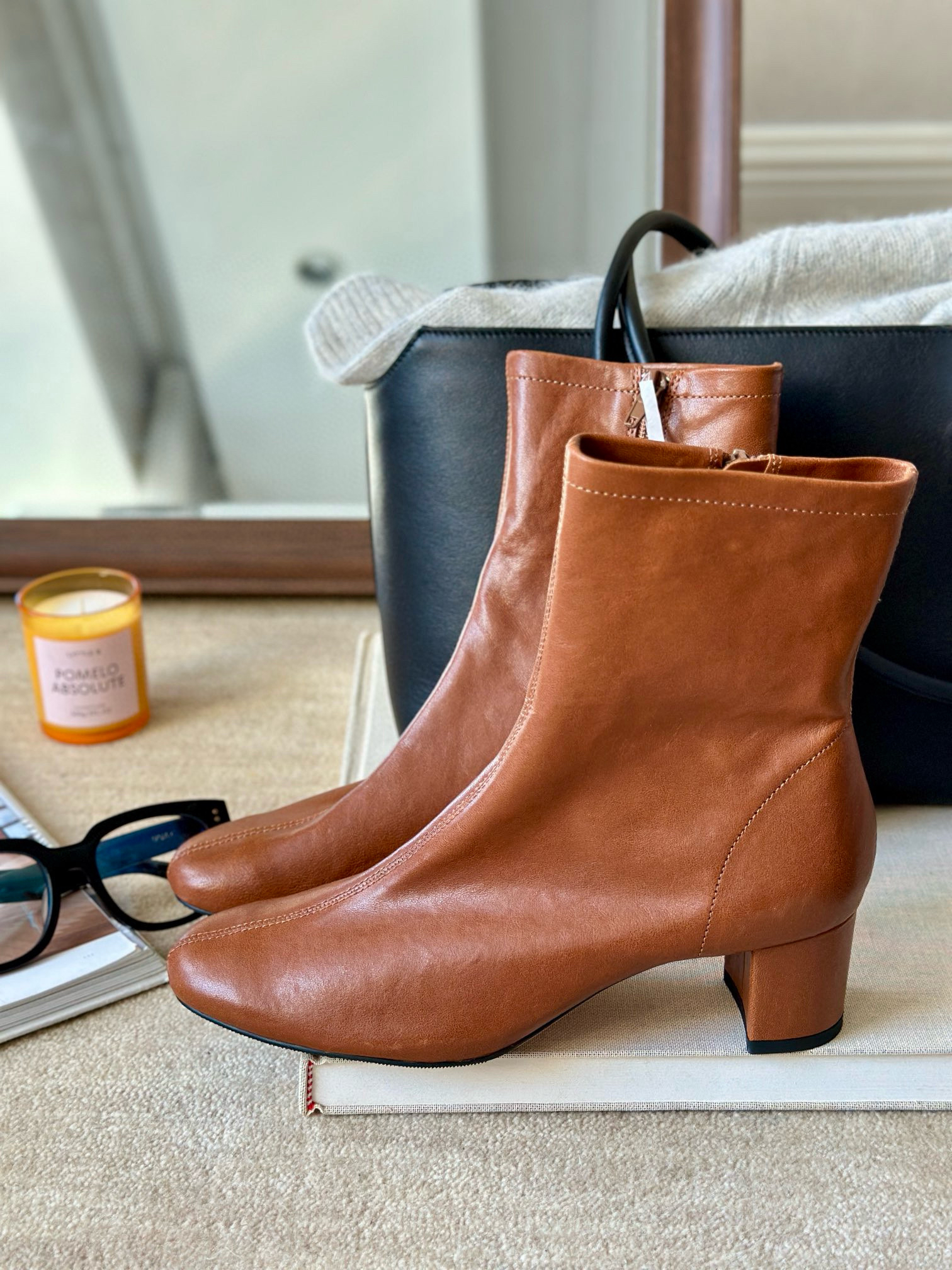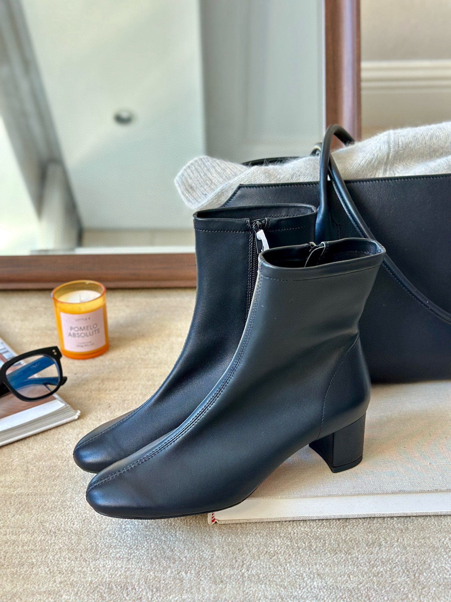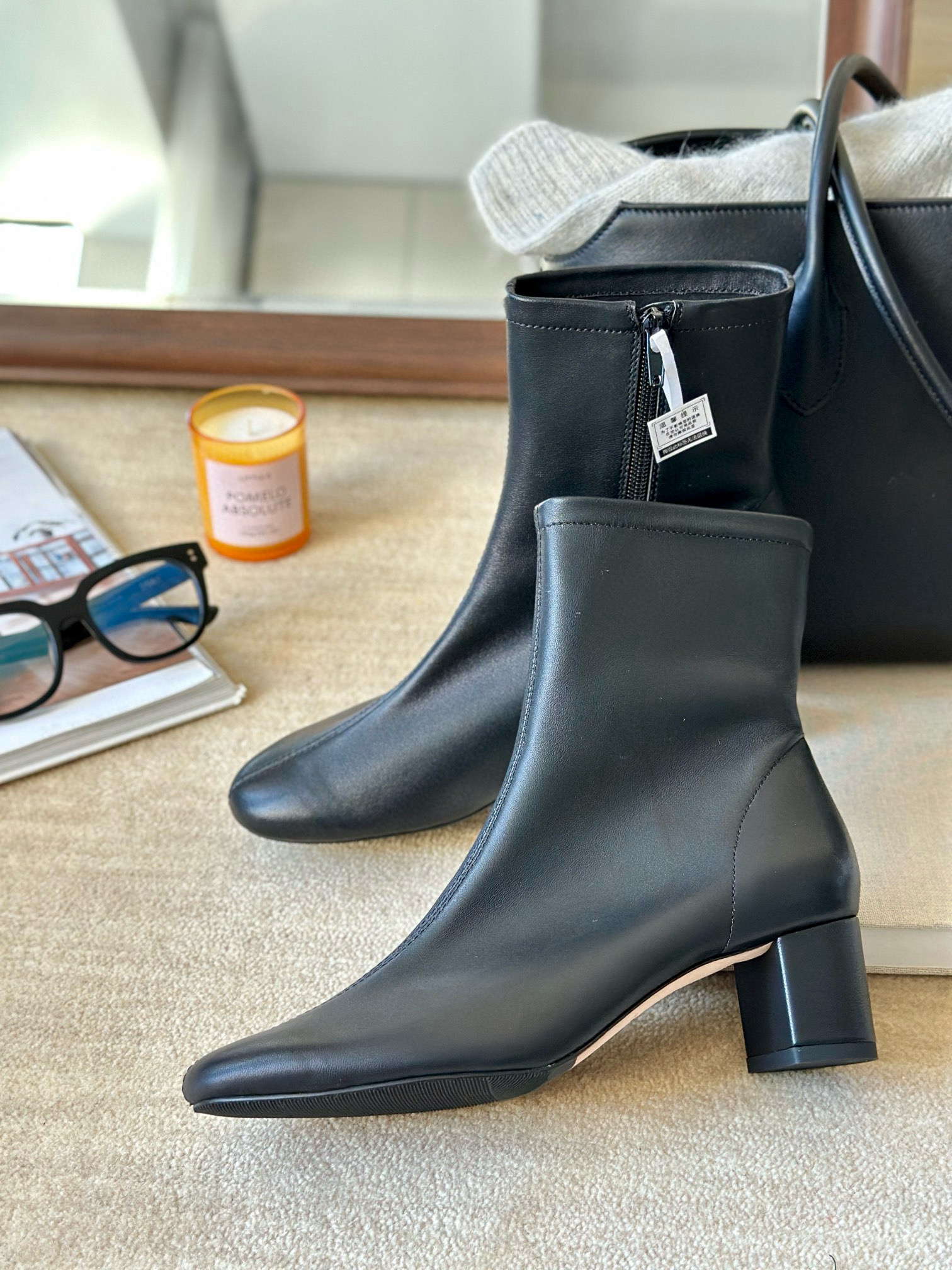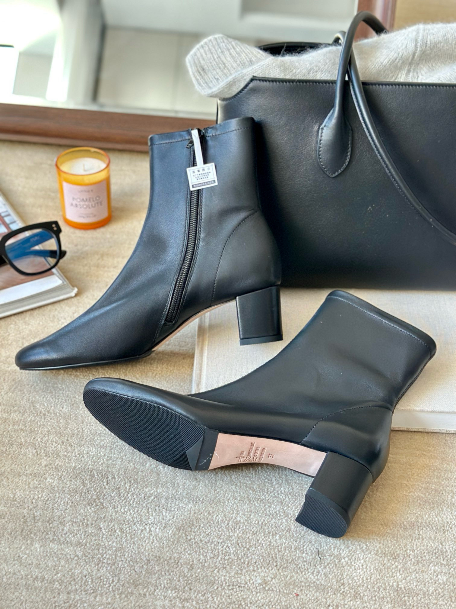 实拍来,BF的设计感,不言而喻,看着简单干净,实际特别值得玩味。复古杏仁鞋头,简洁小圆跟,圆与方,在这双短靴很和谐。选用更为细腻的小羊皮,不仅亲肤软糯,更有一定的延展性,外层进口头层羊皮,内里压纹羊皮+针织布,意大利进口真皮大底,越穿越贴合脚型。