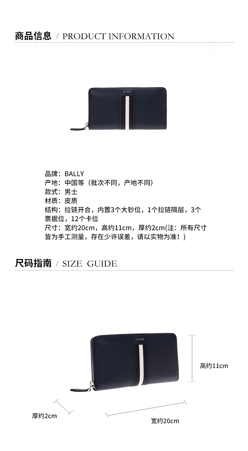 BALLY/巴利【22春夏新款】男士条纹皮质长款钱包钱夹 TELEN LT