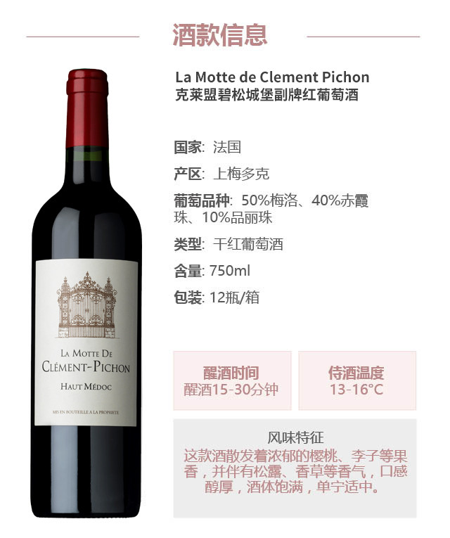 克莱盟碧松城堡副牌红葡萄酒 La Motte de Clement Pichon 750ml