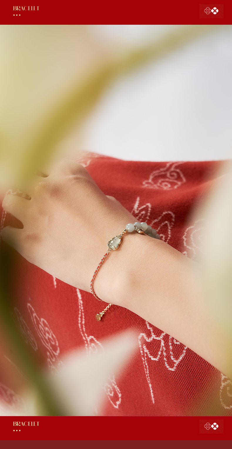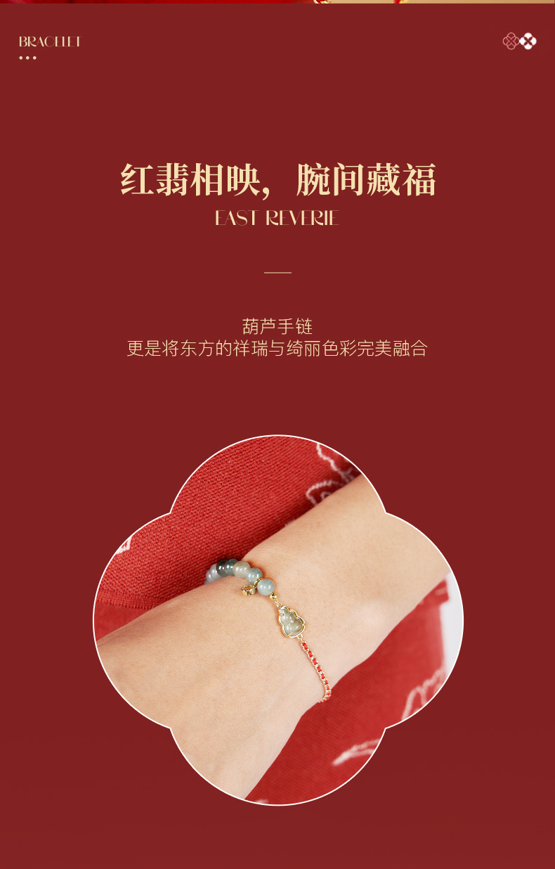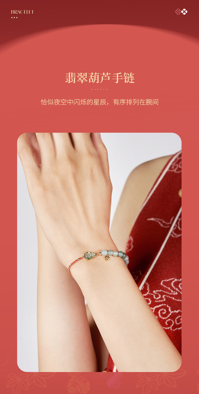 大英博物馆 东方梦境系列 翡翠葫芦红绳手链