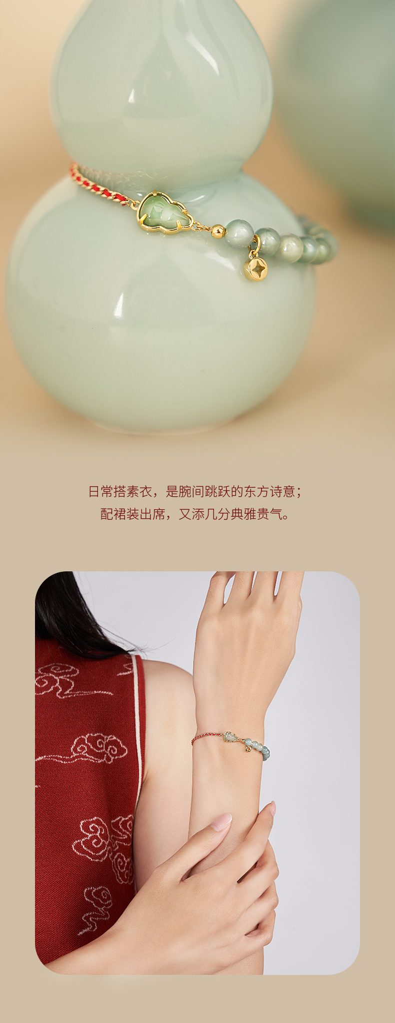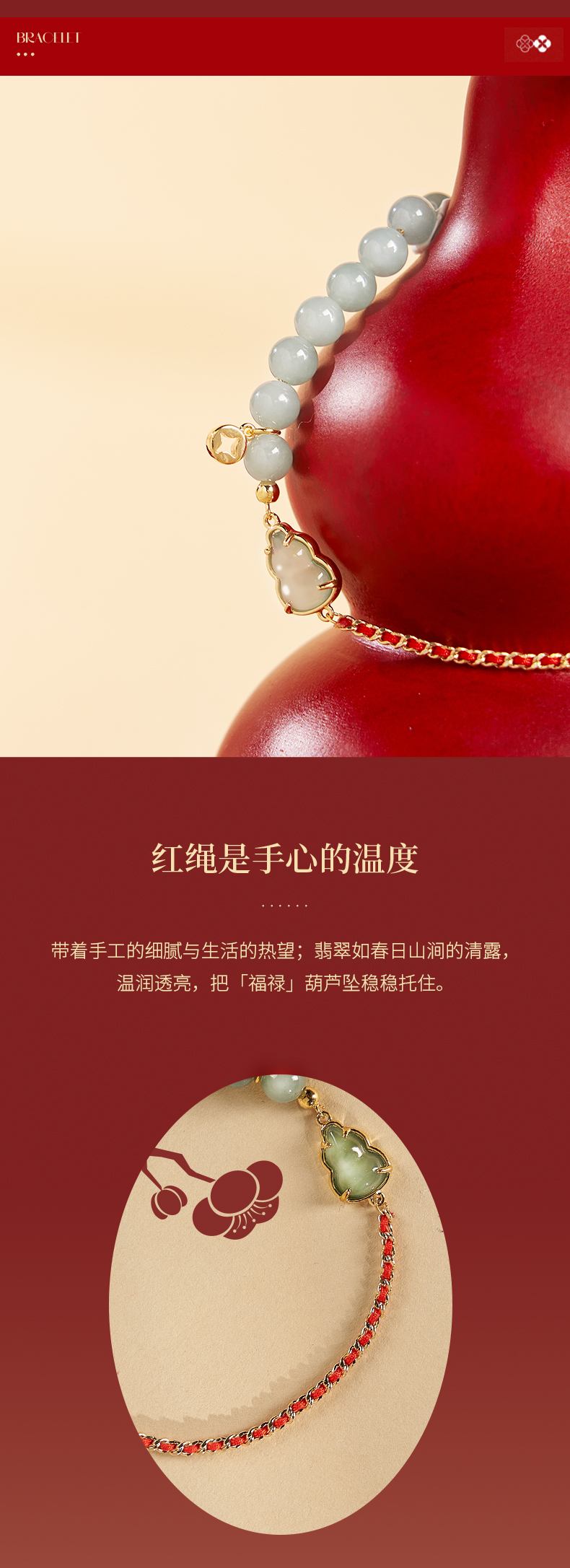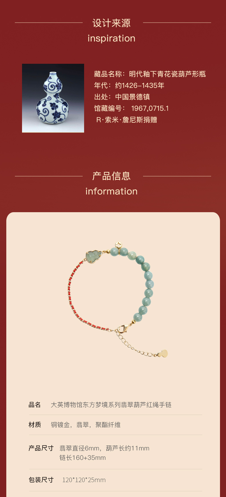 大英博物馆 东方梦境系列 翡翠葫芦红绳手链