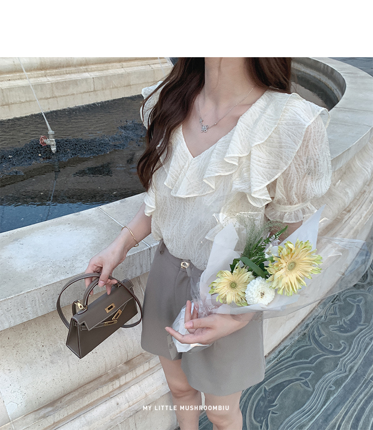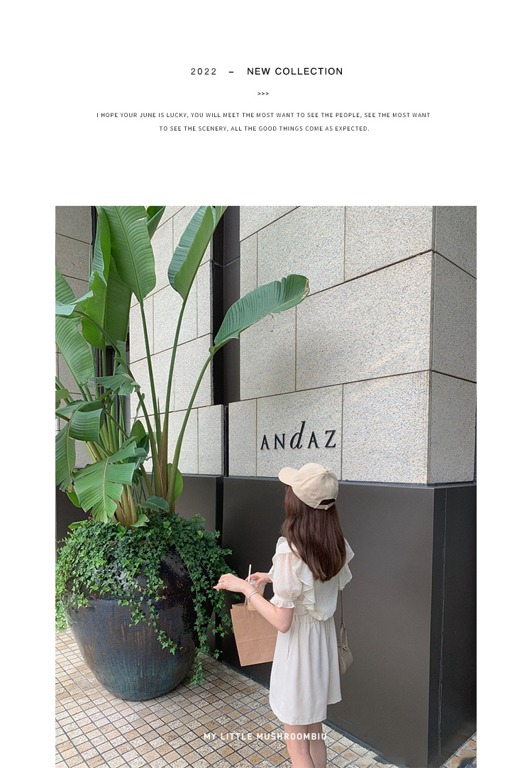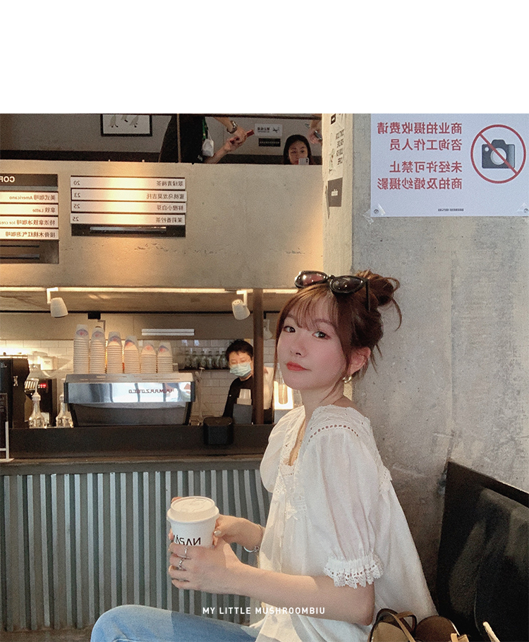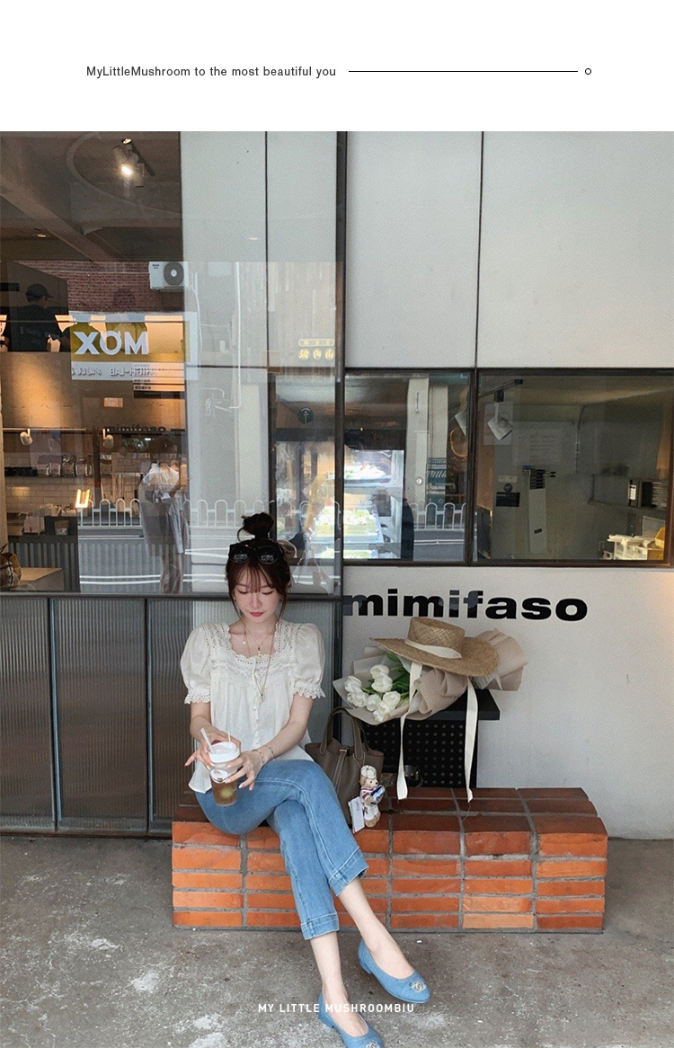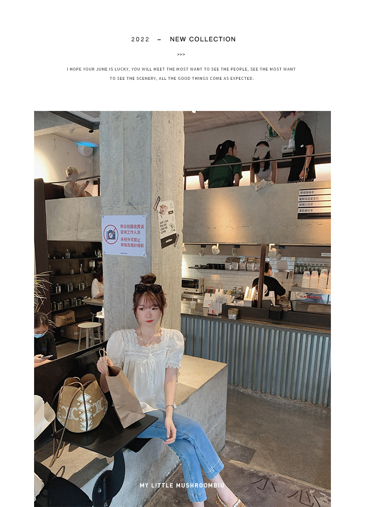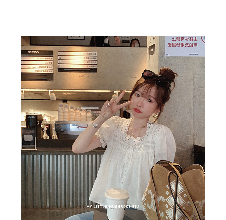 荷叶领小米S码 金蘑菇菇【盛夏真如意】法式少女方领泡泡袖上衣亚麻短袖衬衫