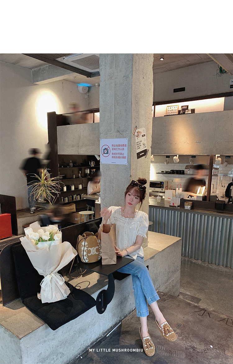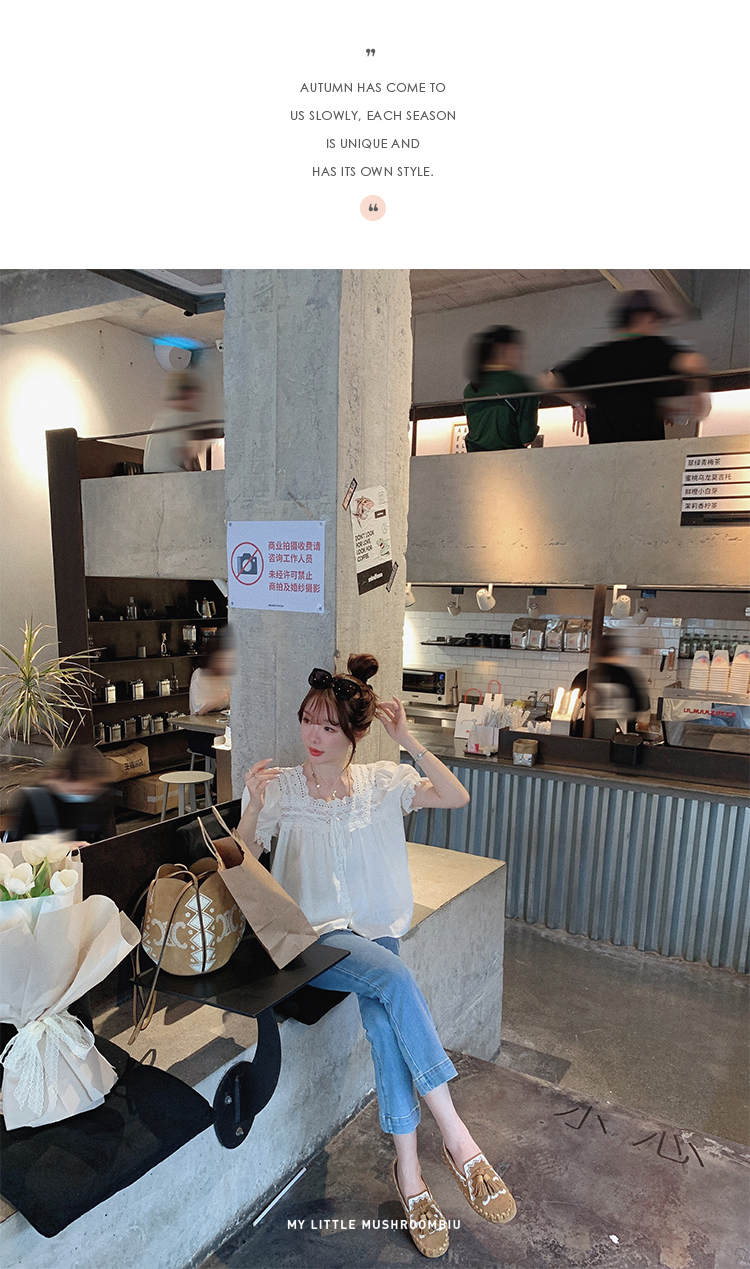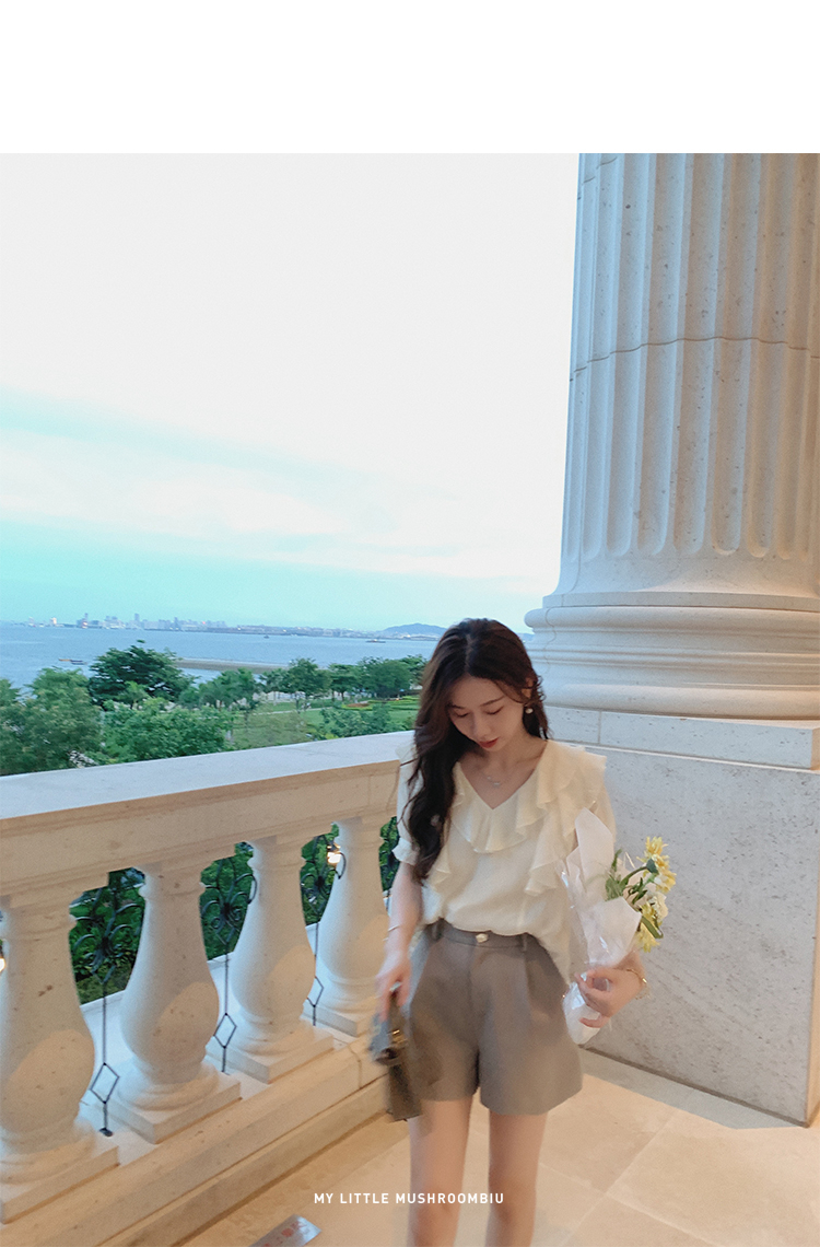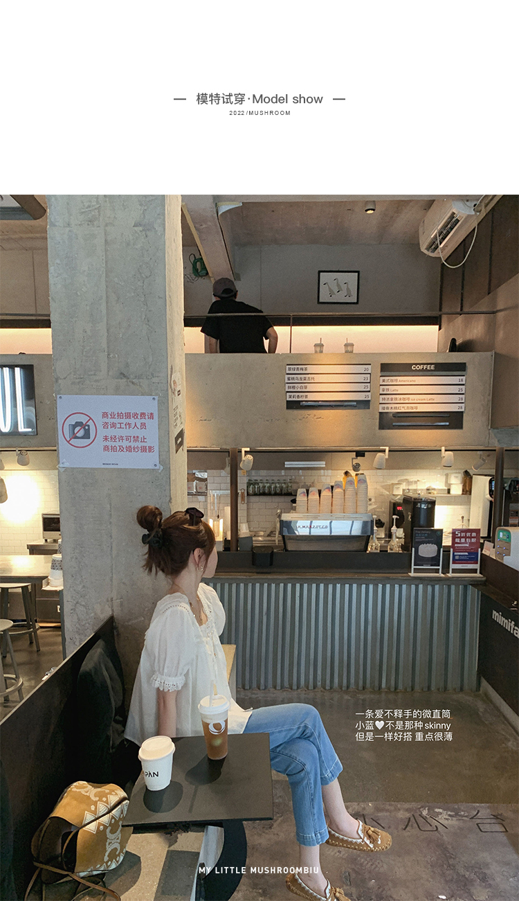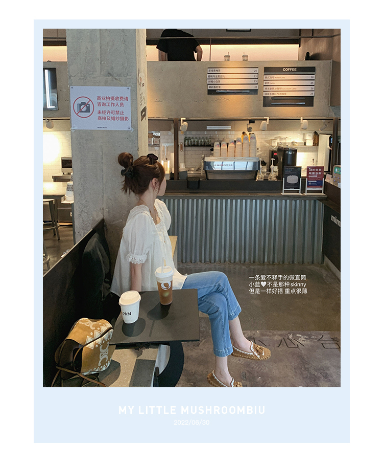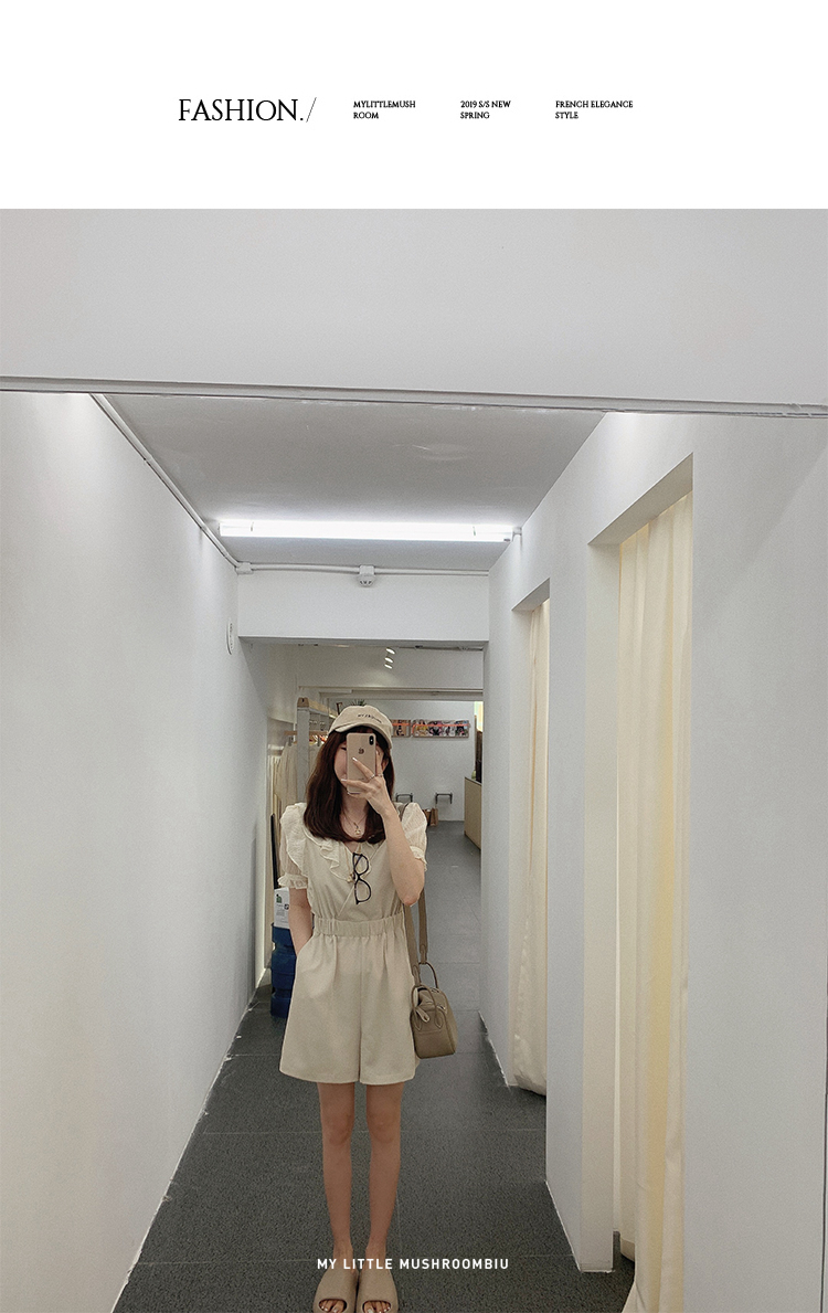 荷叶领小米S码 金蘑菇菇【盛夏真如意】法式少女方领泡泡袖上衣亚麻短袖衬衫