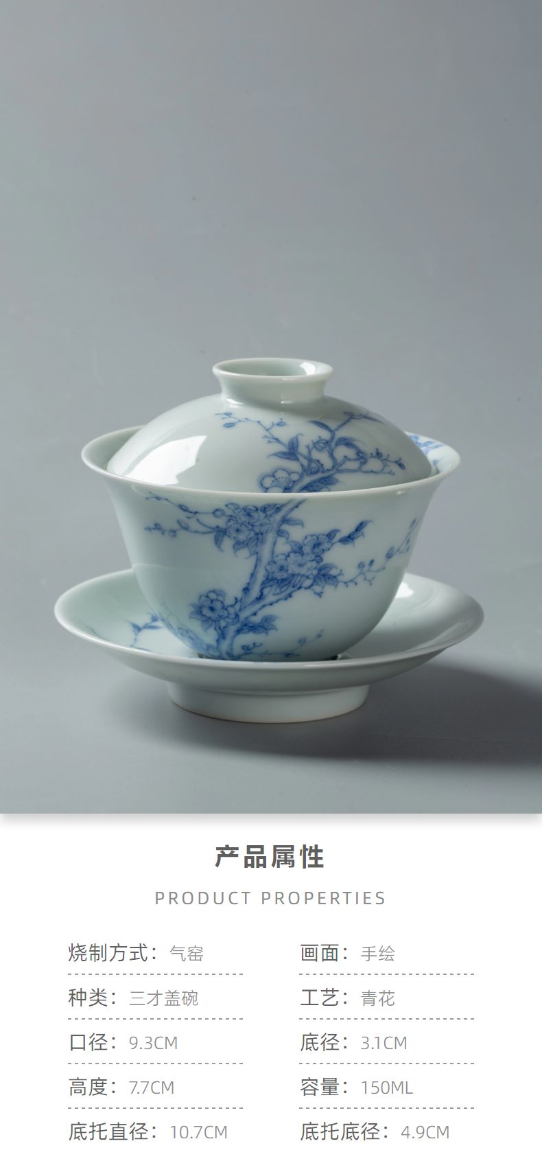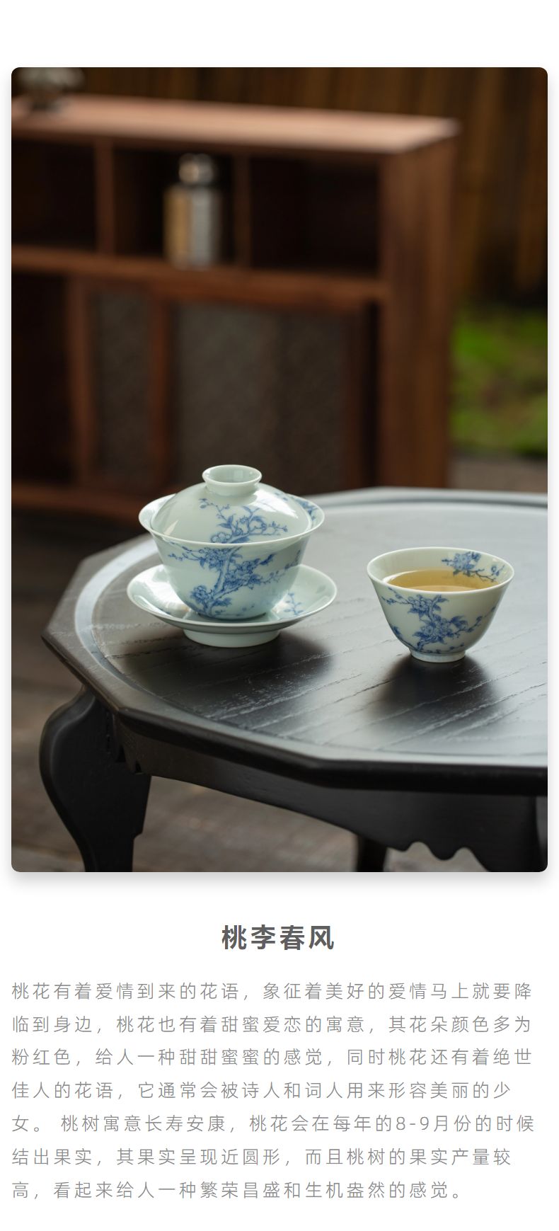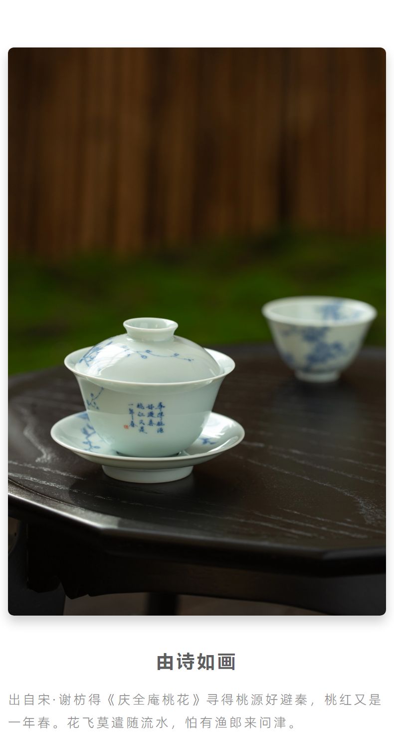 青花桃李春风盖碗150ml