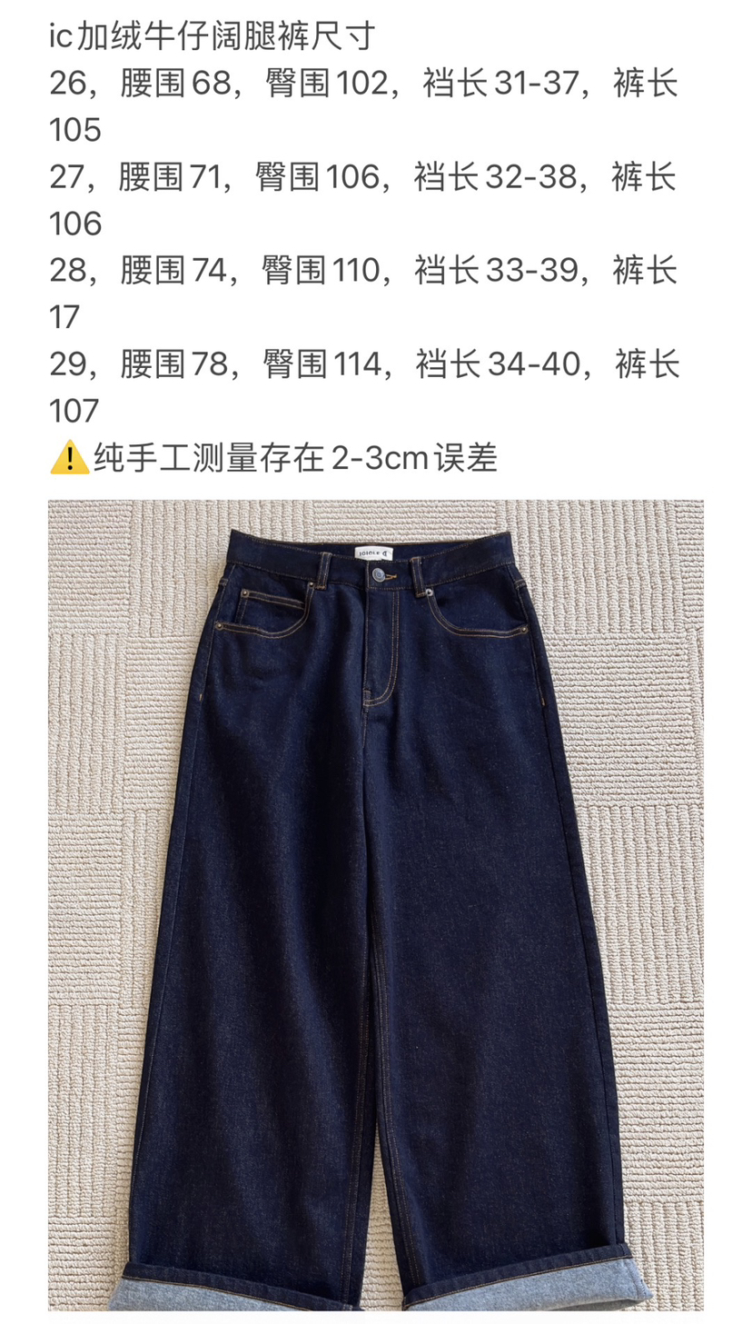 1218-11 月底发 渠道货 小禾 加绒牛仔阔腿裤 显瘦亲肤保暖 我穿29码宽松舒适
