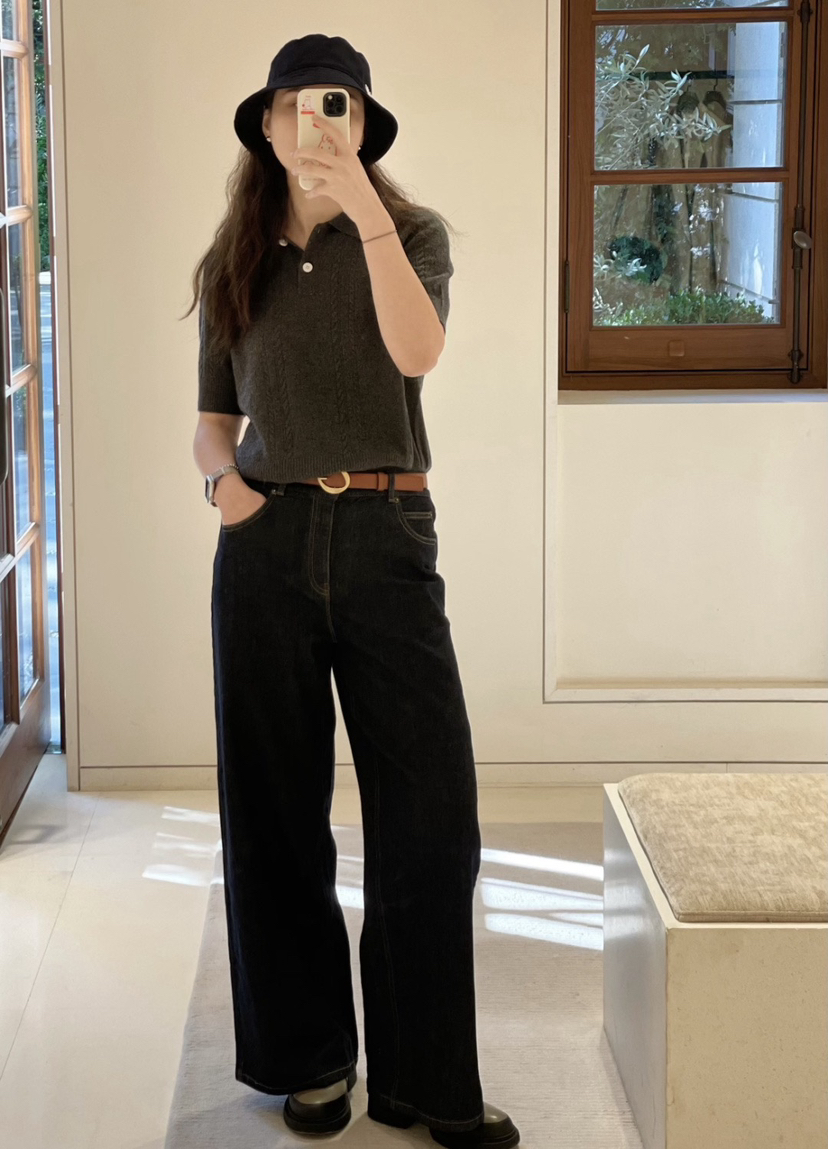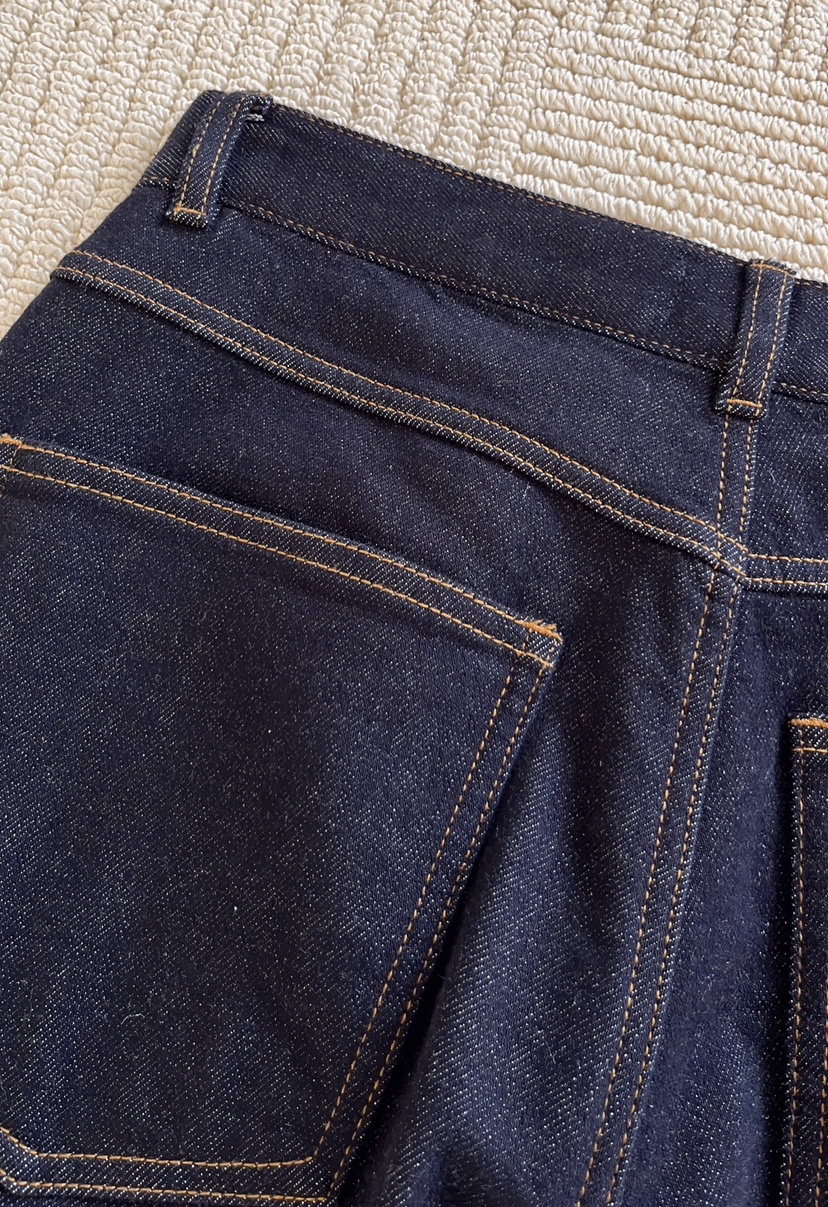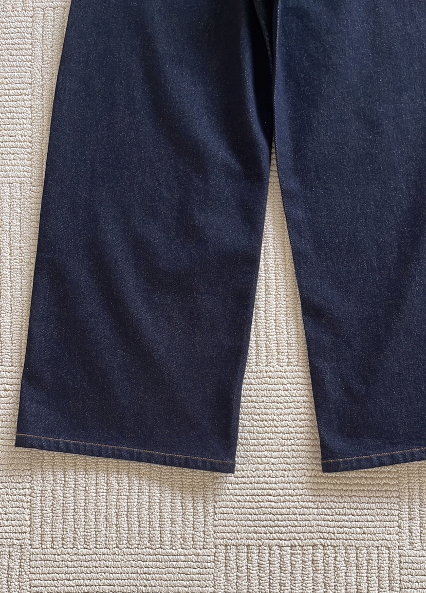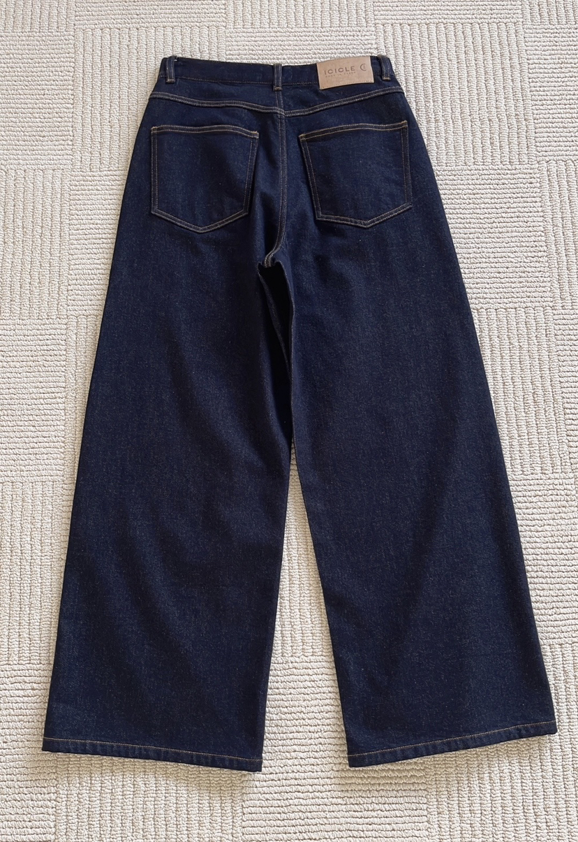 腰臀线很明显,提臀收腹立体有型,阔腿牛仔长裤版型百搭不挑人
