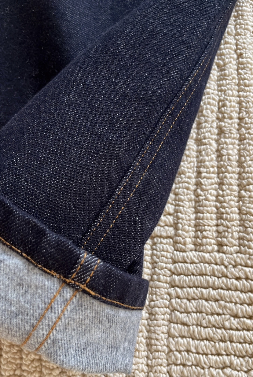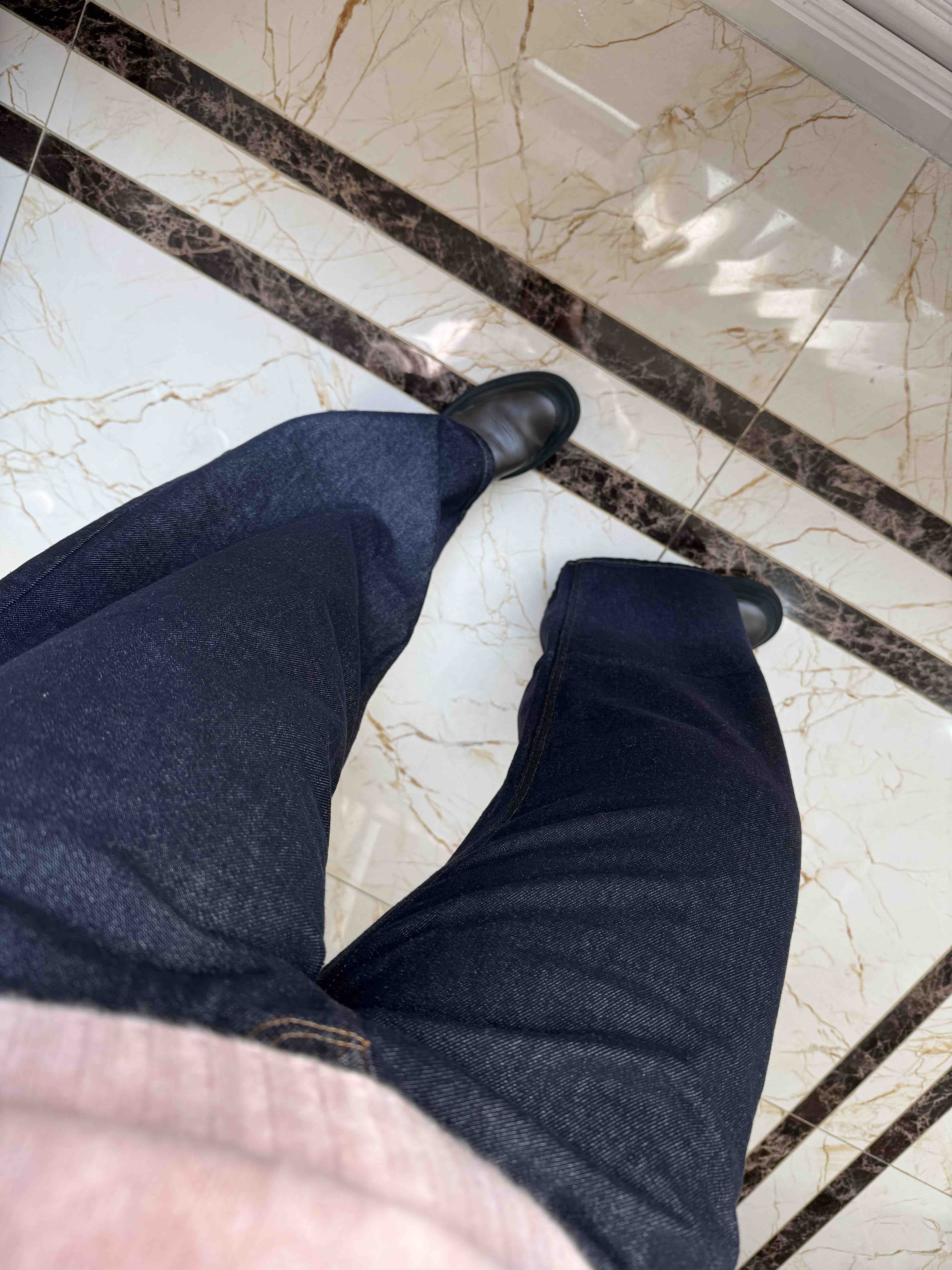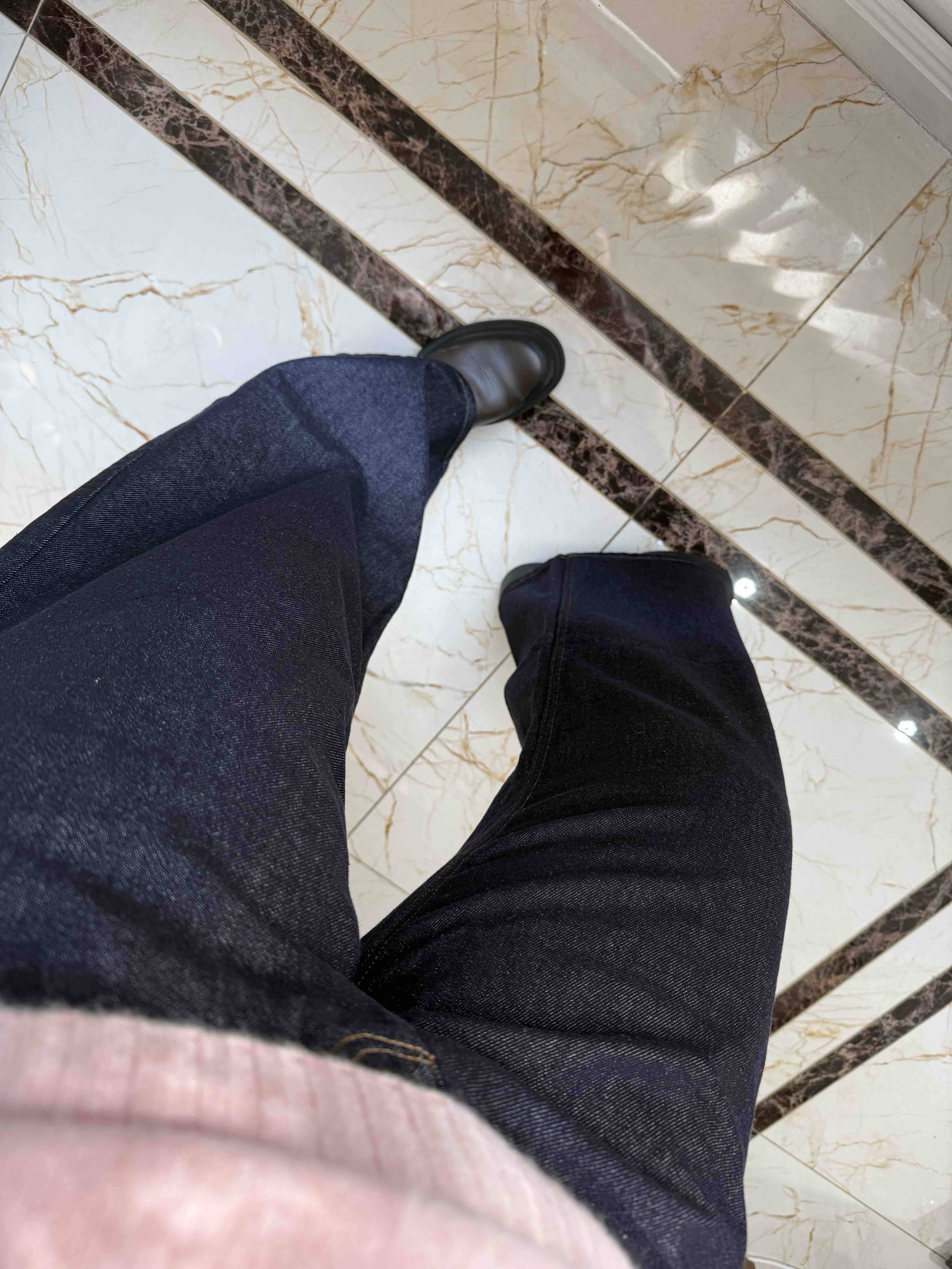 面料柔软舒适,加绒的保暖效果优秀,相当于牛仔裤➕绒裤的效果,中高腰深裆,还有弹力,所以不会有束缚感。宽松直筒,内搭秋裤也合适,你看奢侈品,裤子都是薄的,几乎找不见那种很厚的加绒。