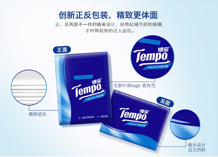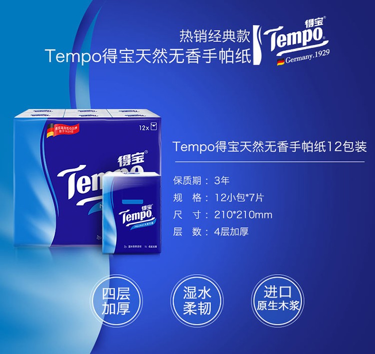 得宝12包4层无香手帕纸