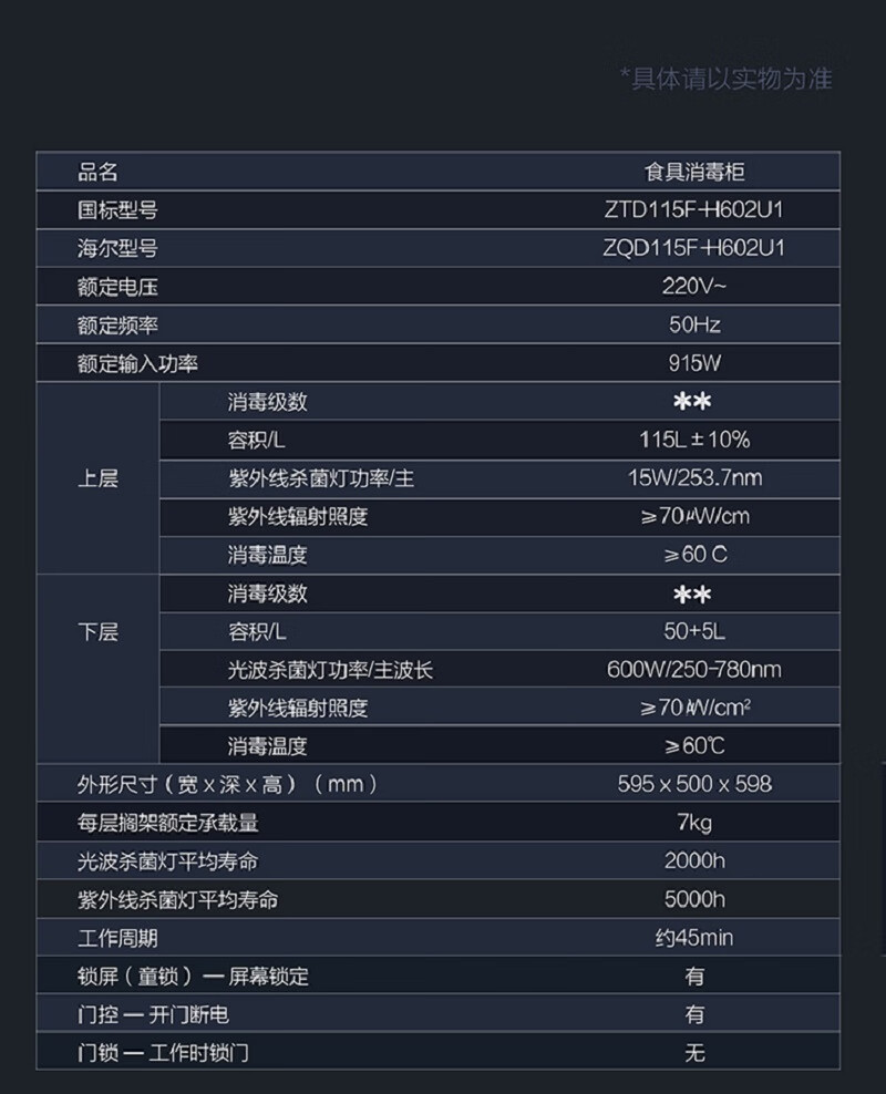 海尔115升嵌入式光波巴氏消毒柜 ZQD115F-H602U1