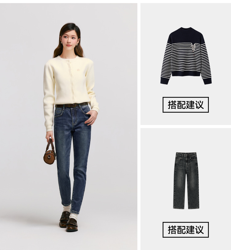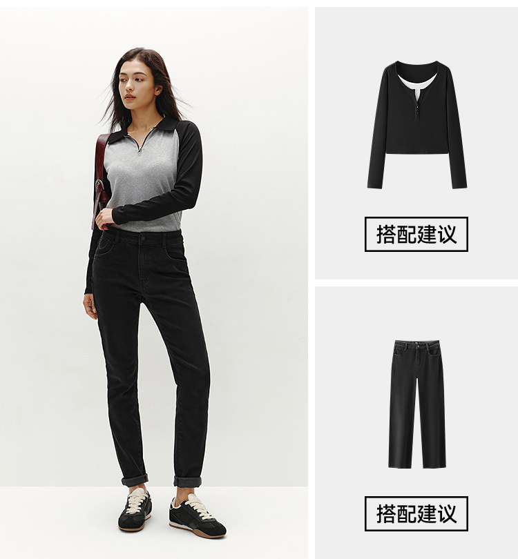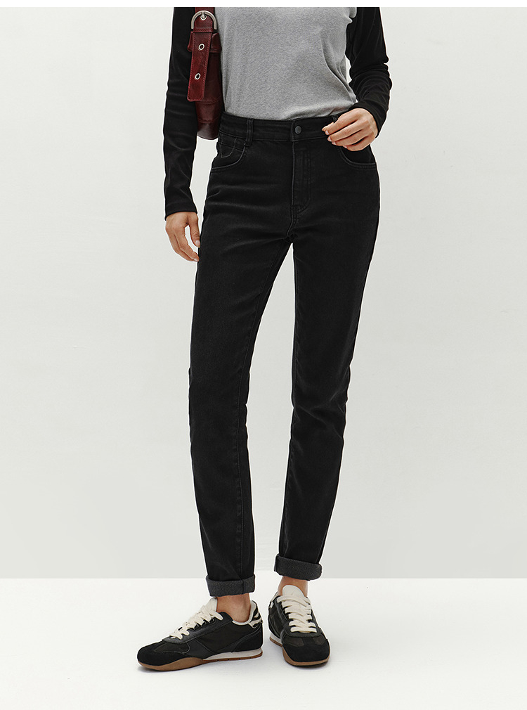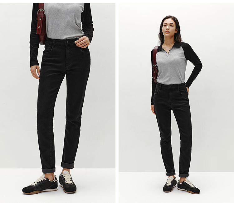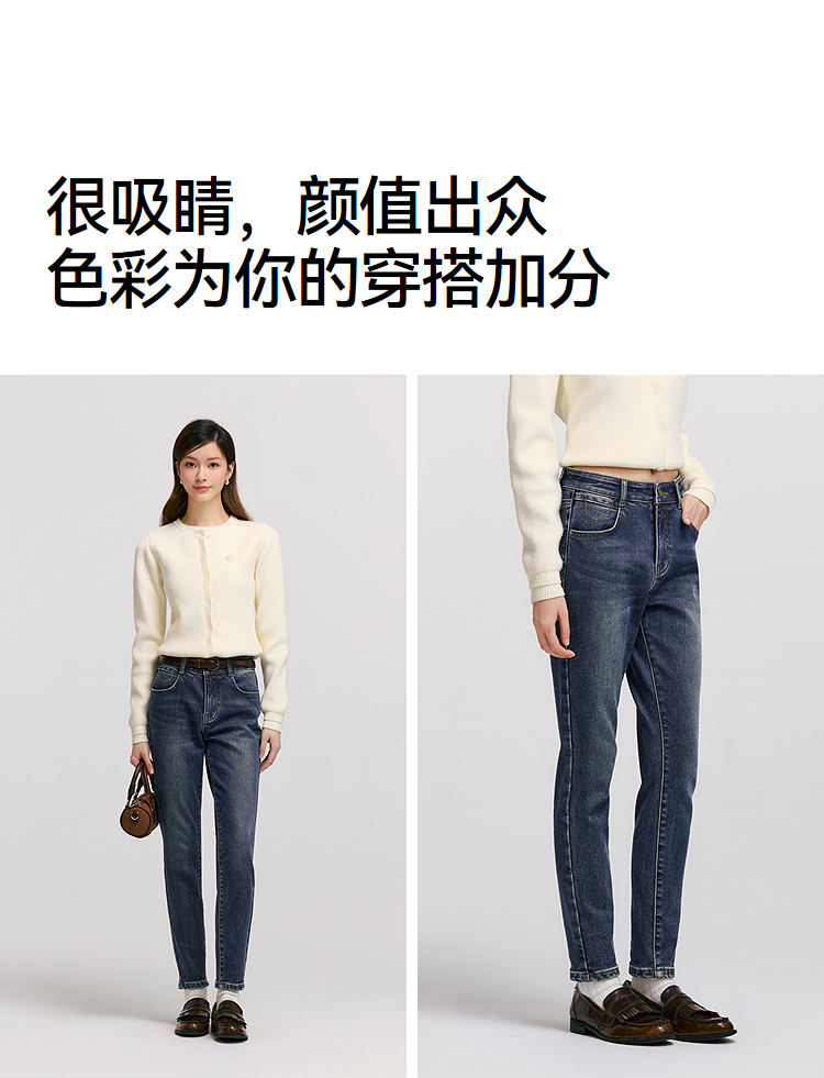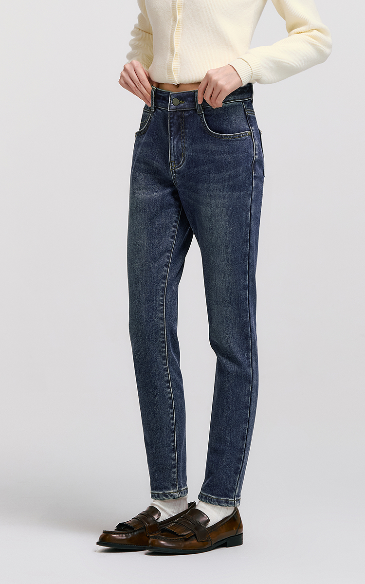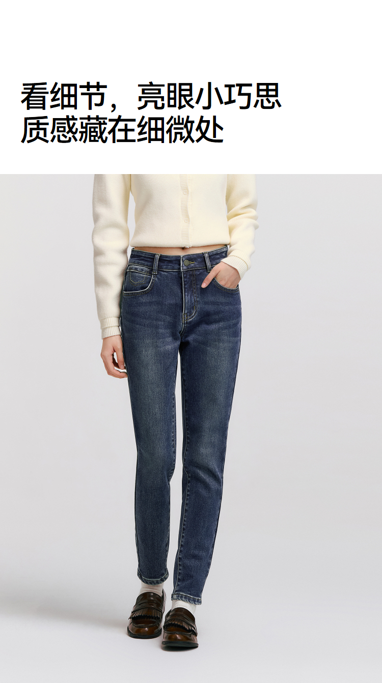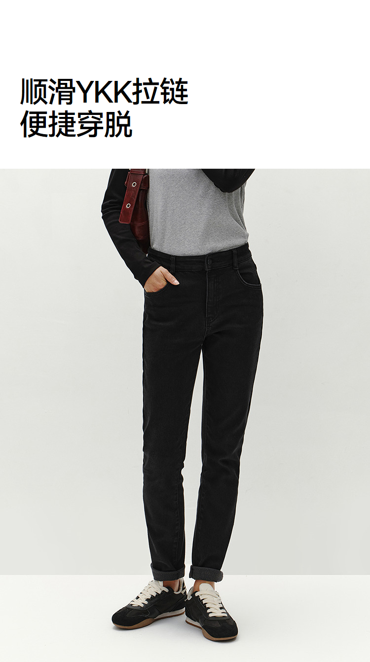 森柔|森马牛仔裤女冬季修身抓毛小脚裤显瘦舒适韩版休闲潮流长裤