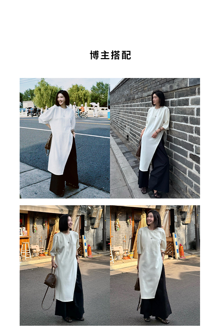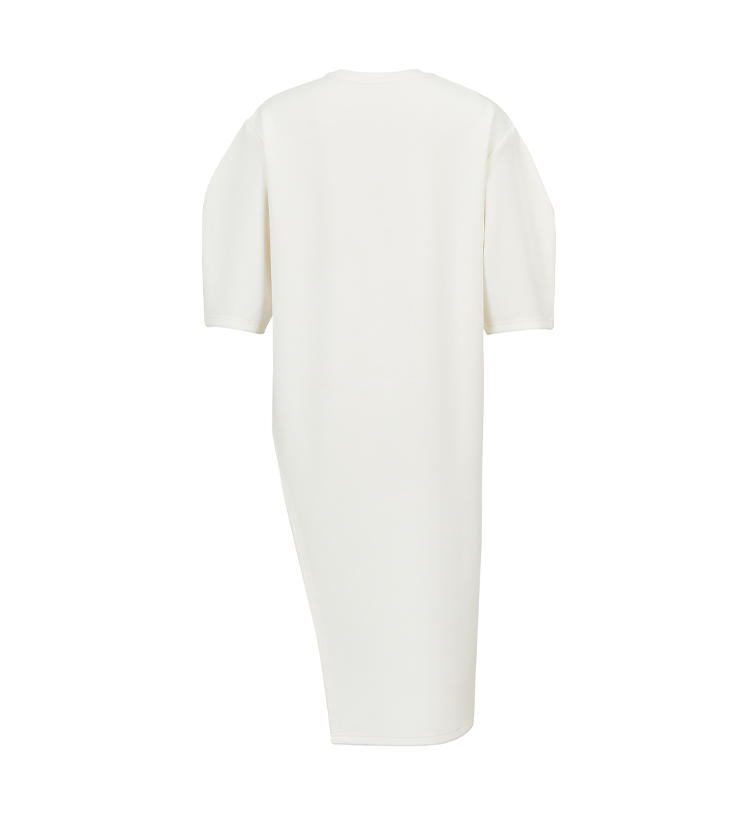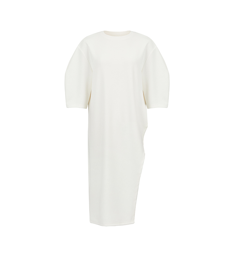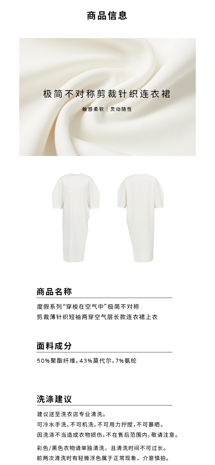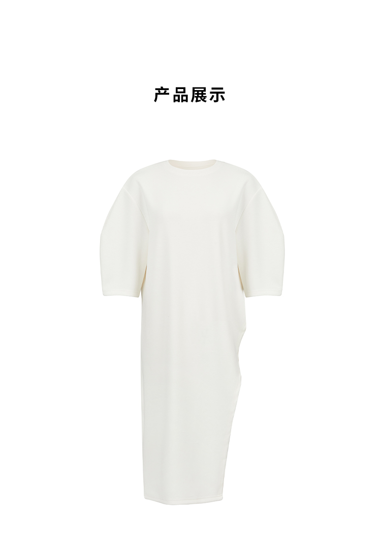 HIDEMI 度假系列极简不对称剪裁薄针织短袖两穿空气层长款连衣裙