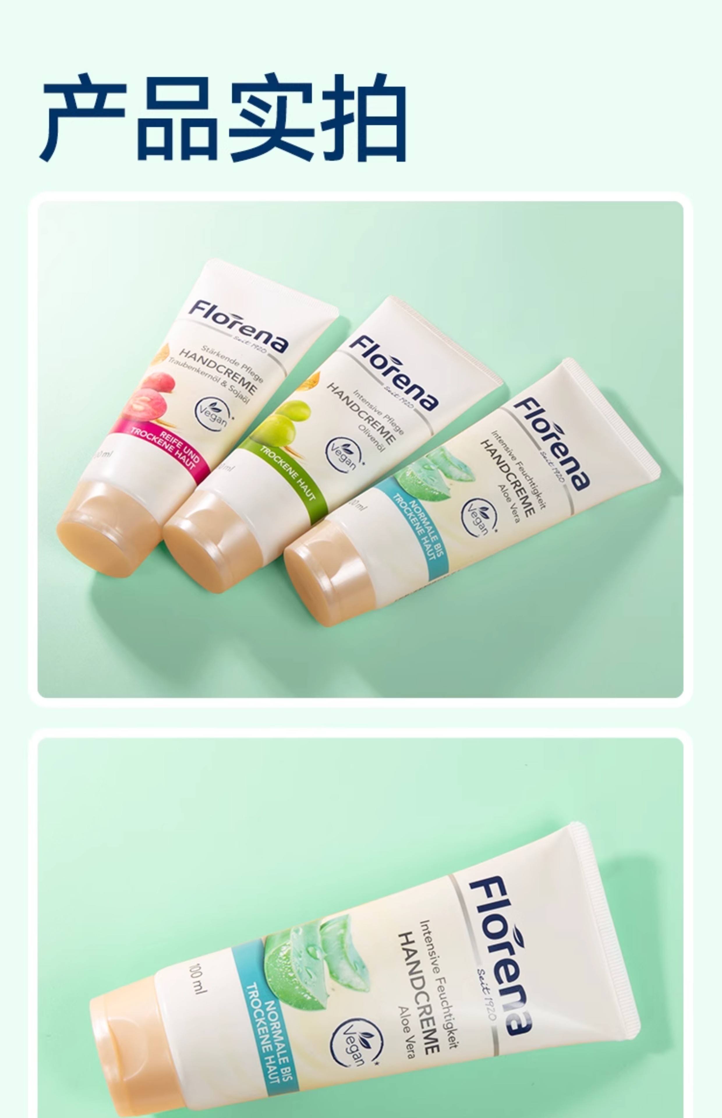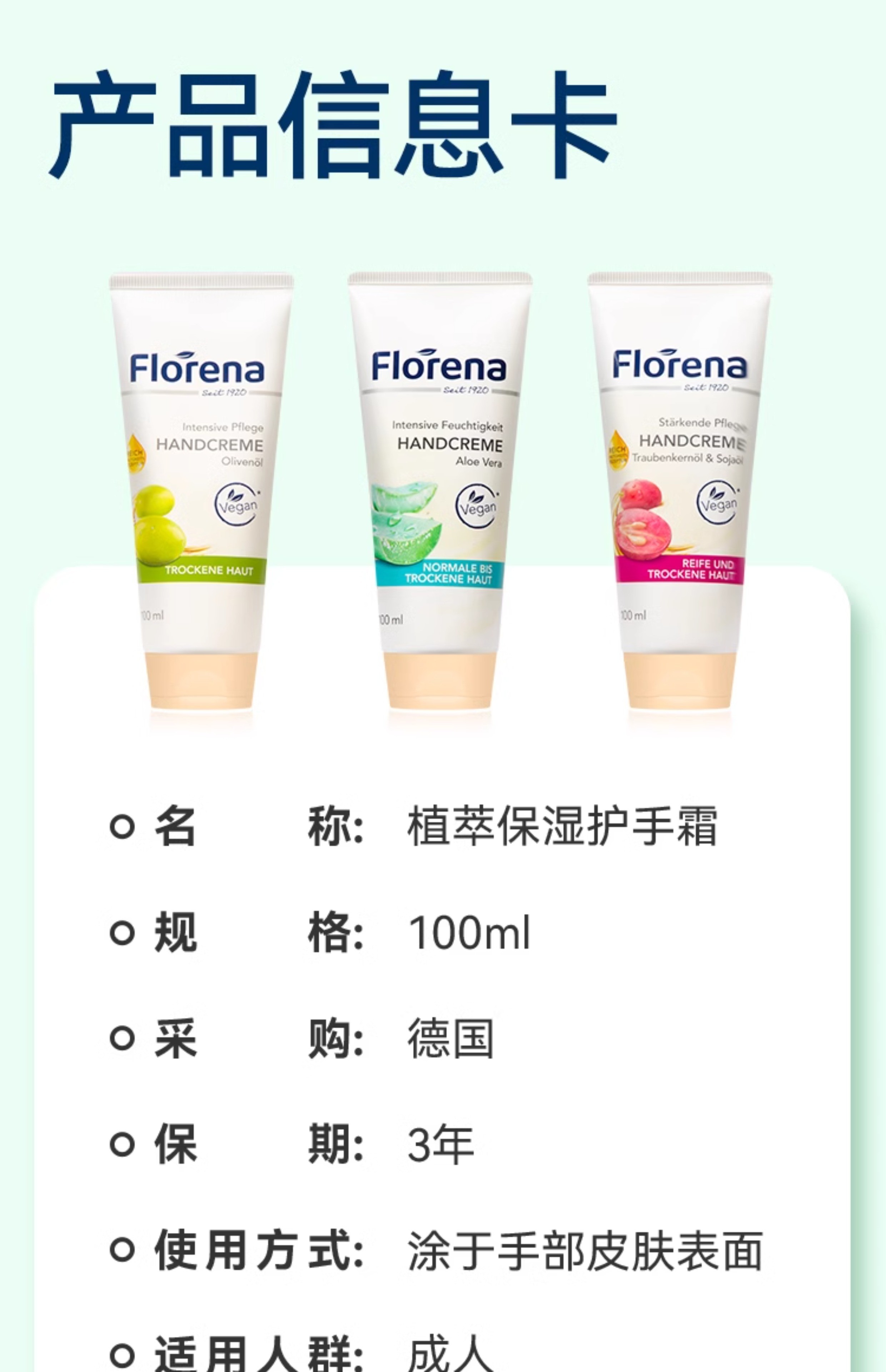 Florena芙蕾蓉娜芦荟保湿护手霜/葡萄籽倍润护手霜/橄榄油修复护手霜100ml