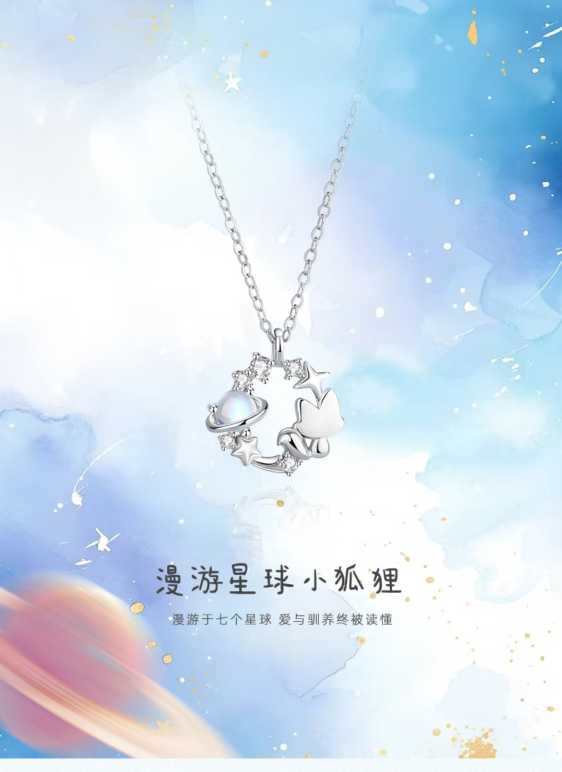 卡蒂罗/KADER 漫游星球小狐狸项链 浪漫甜美幻彩星球闪锆星星精致轻奢小众设计高级感锁骨链 夏日氛围感日常百搭