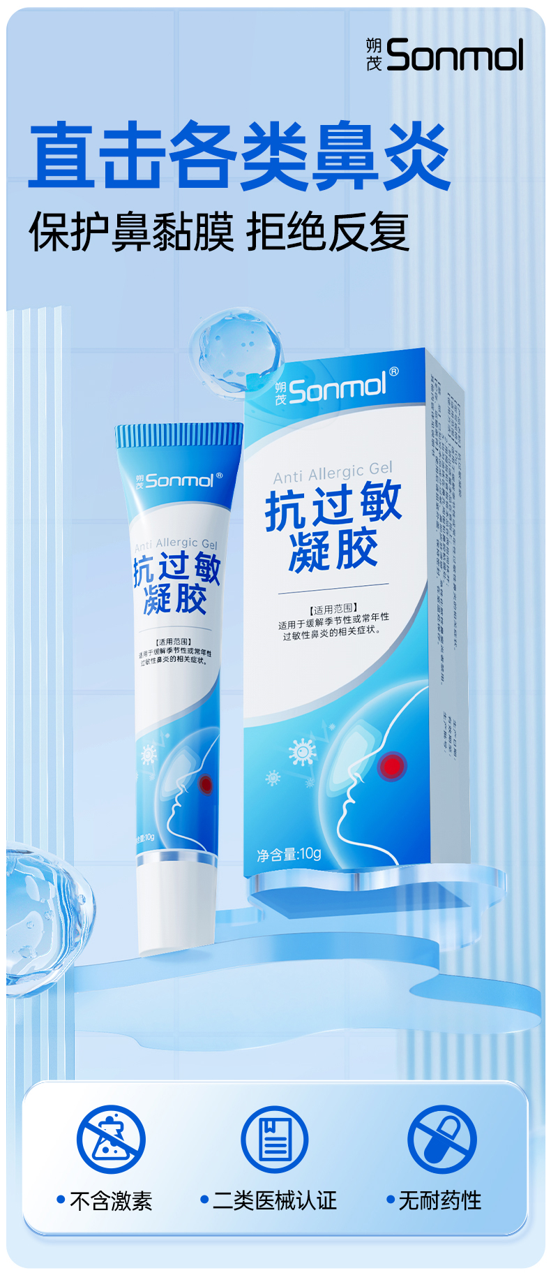 【换季好物】Sonmol朔茂抗过敏凝胶修复鼻粘膜儿童过敏性鼻炎鼻子干燥保湿黏膜
