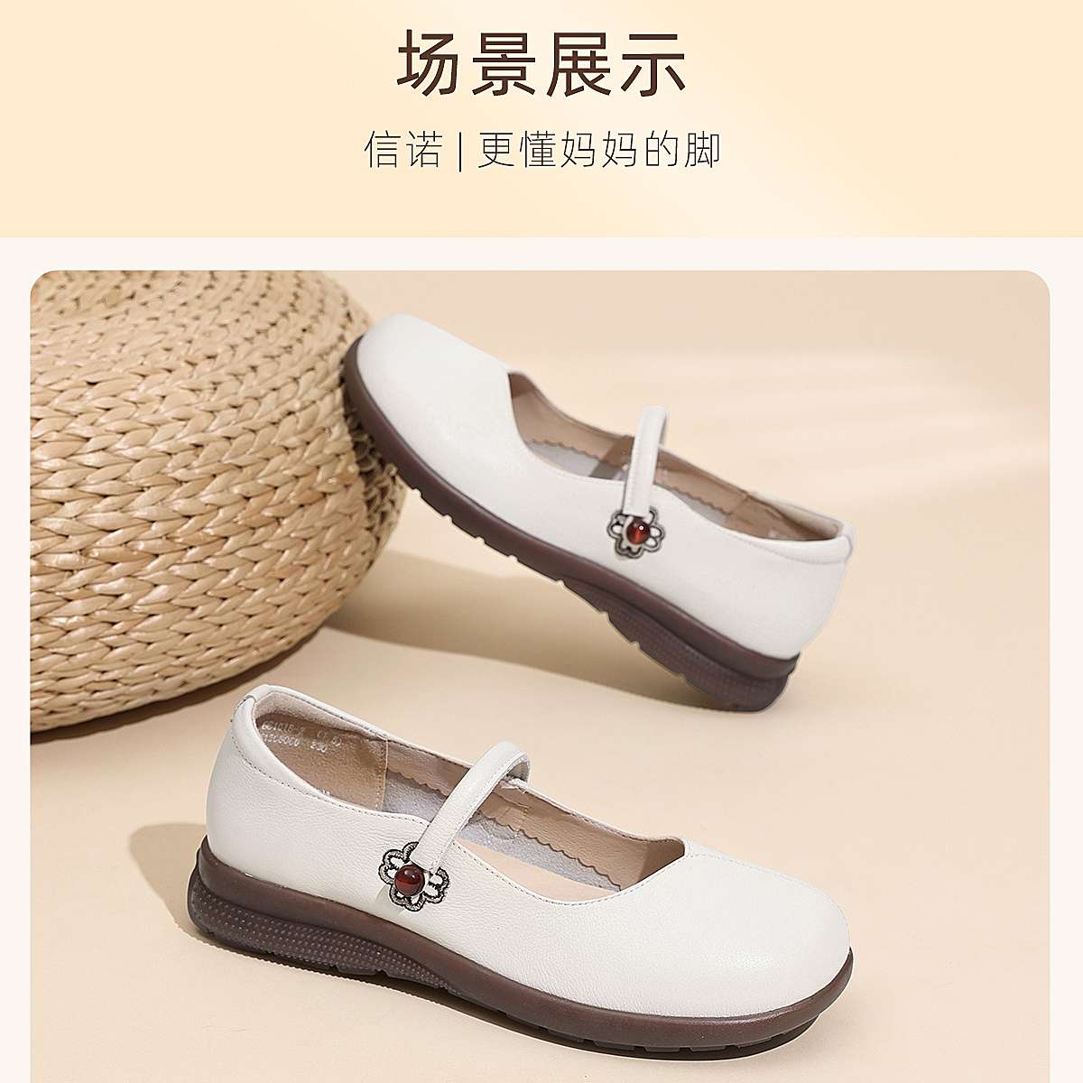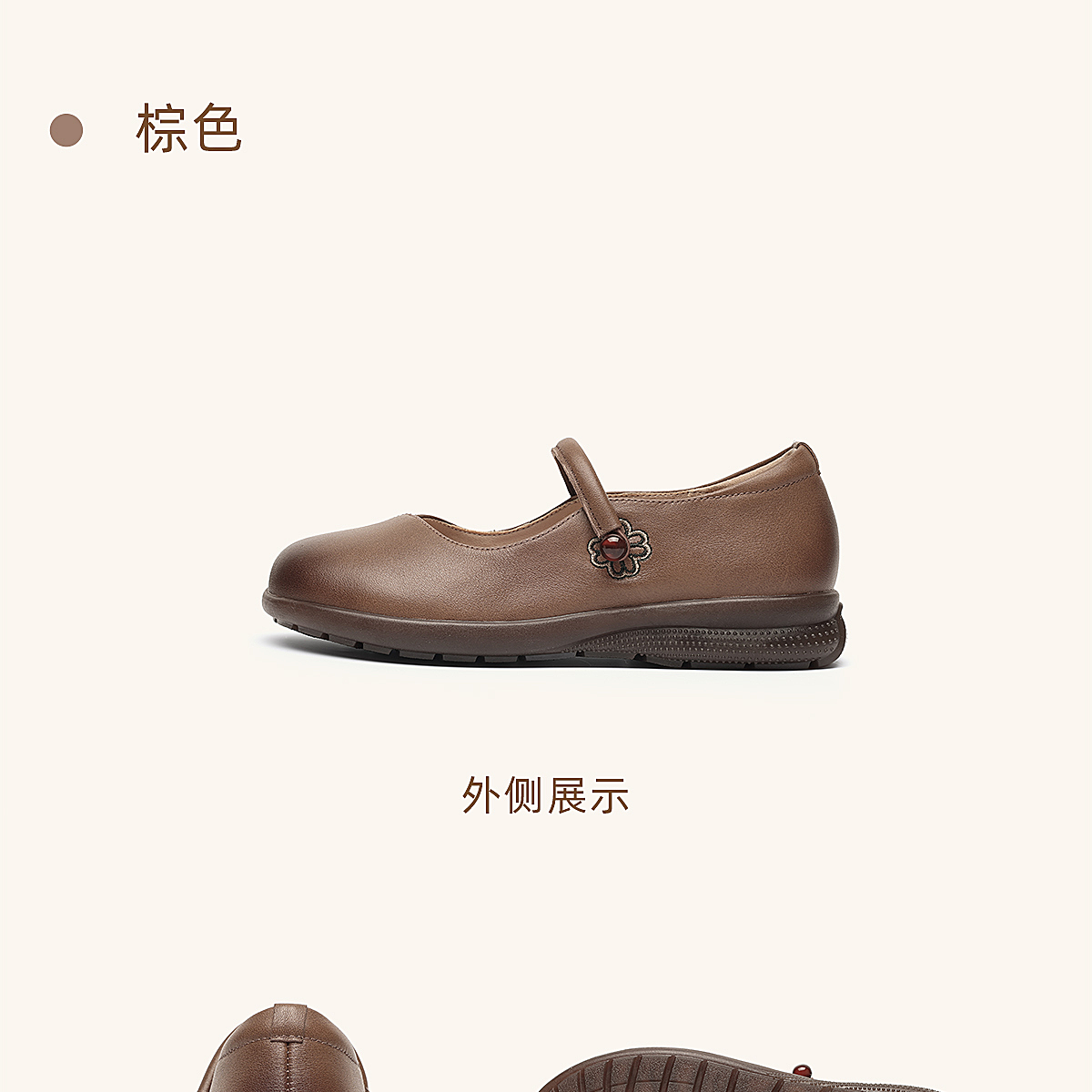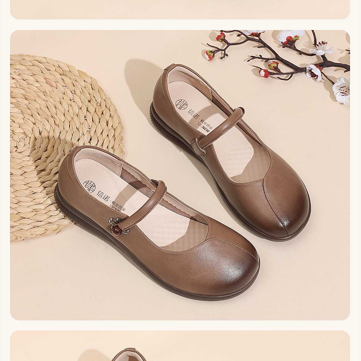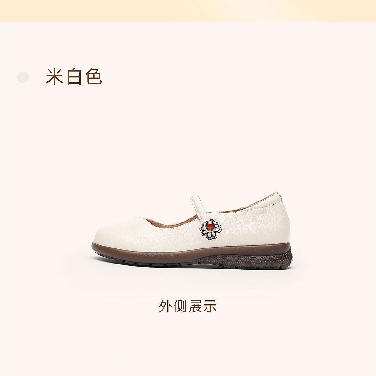 真皮软底玛丽珍鞋女平跟一字带扣奶奶鞋舒适单鞋6C1018-2