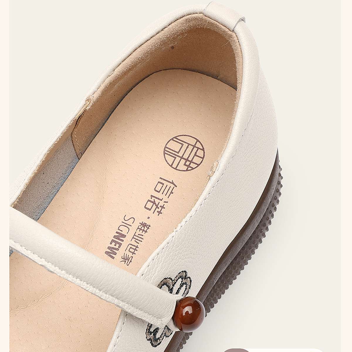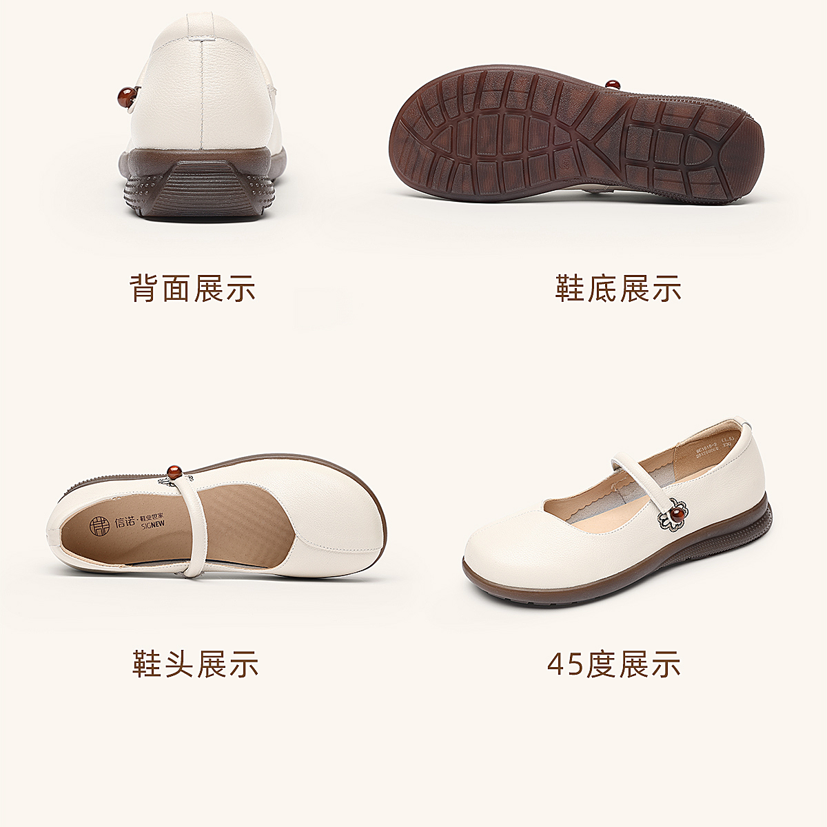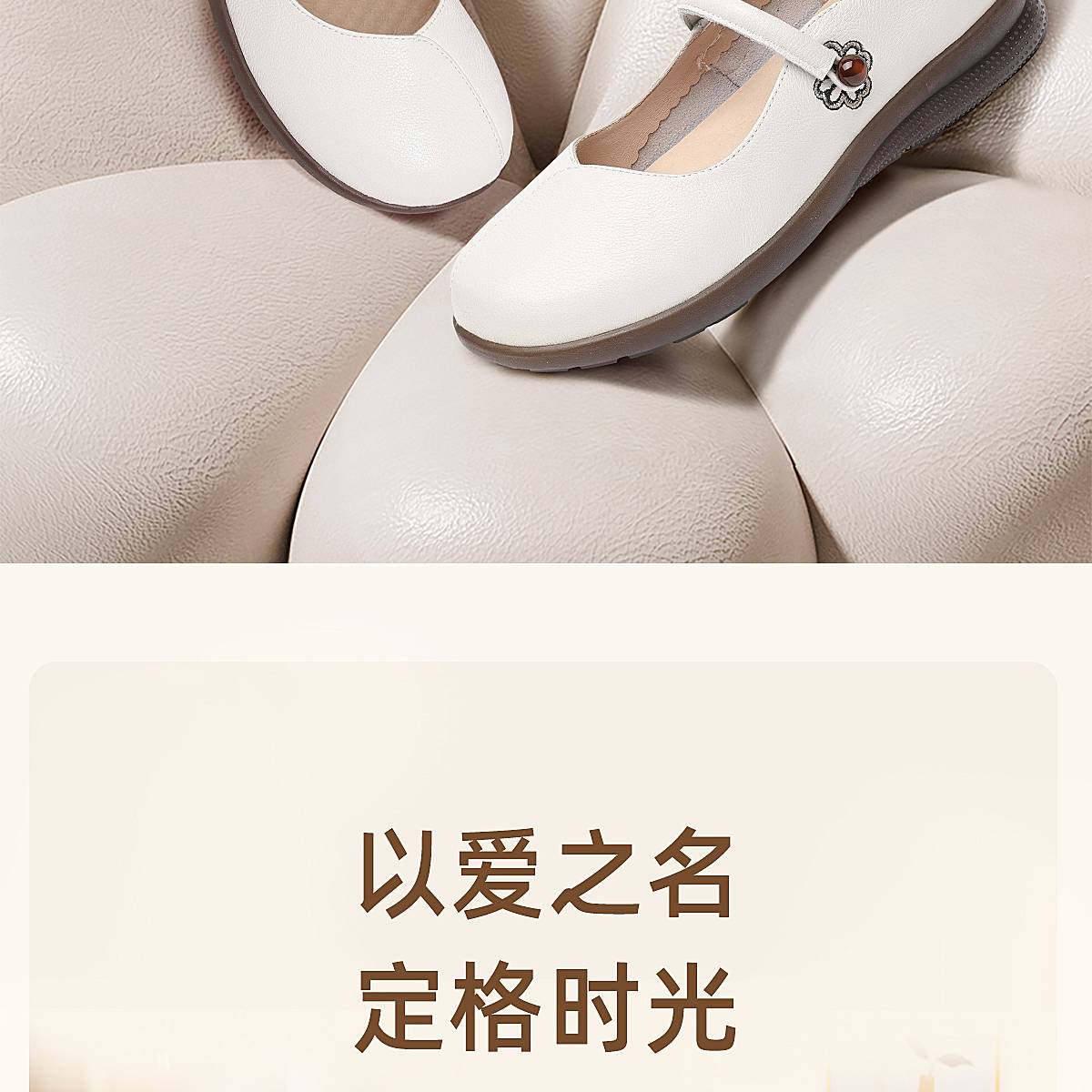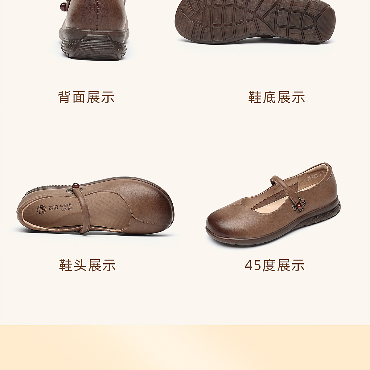 真皮软底玛丽珍鞋女平跟一字带扣奶奶鞋舒适单鞋6C1018-2