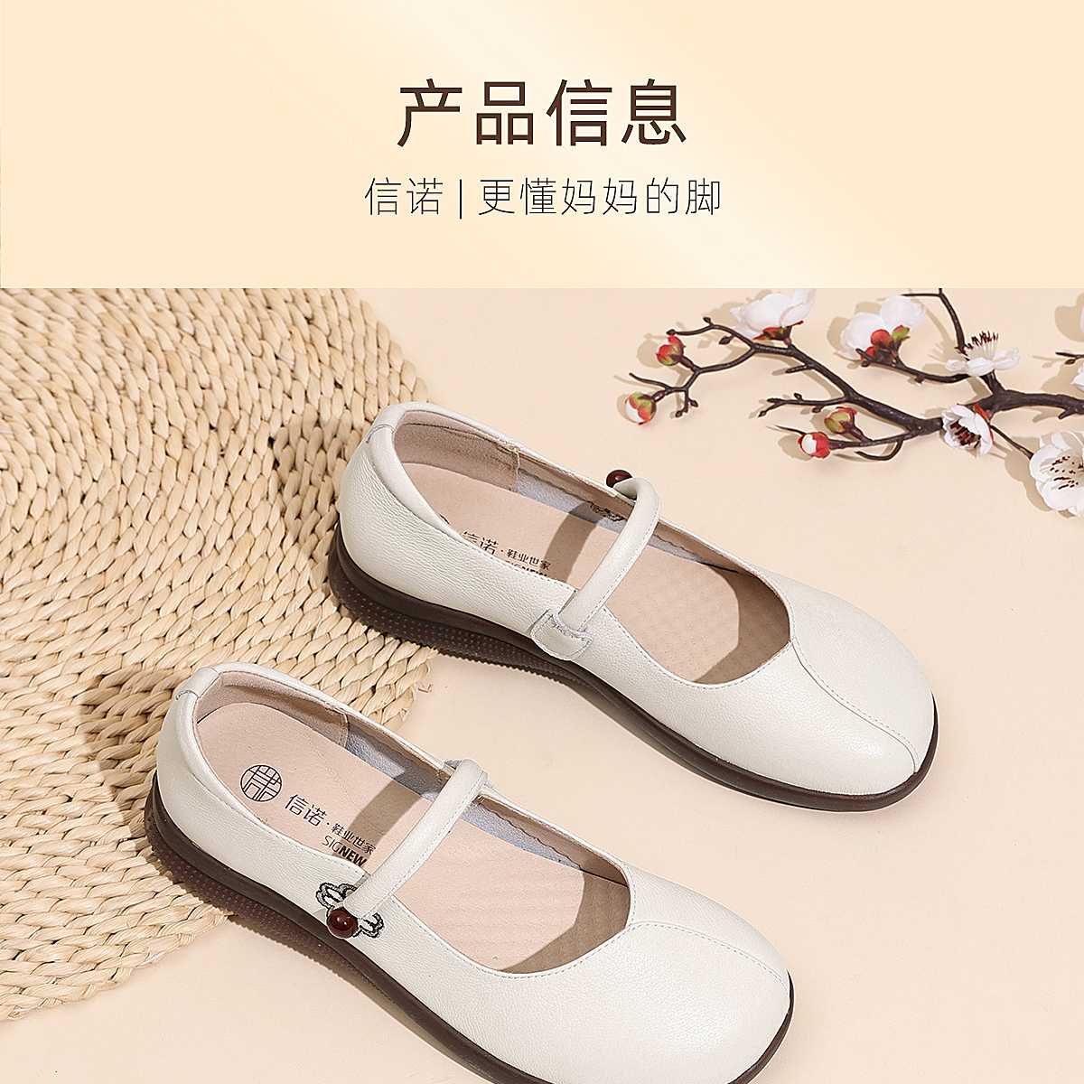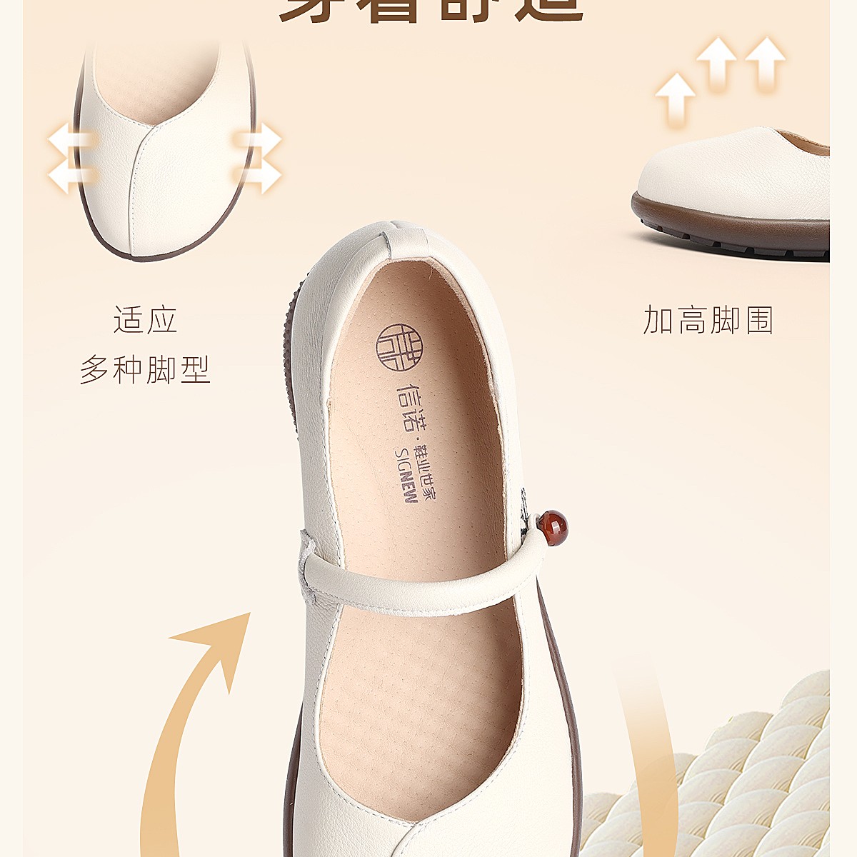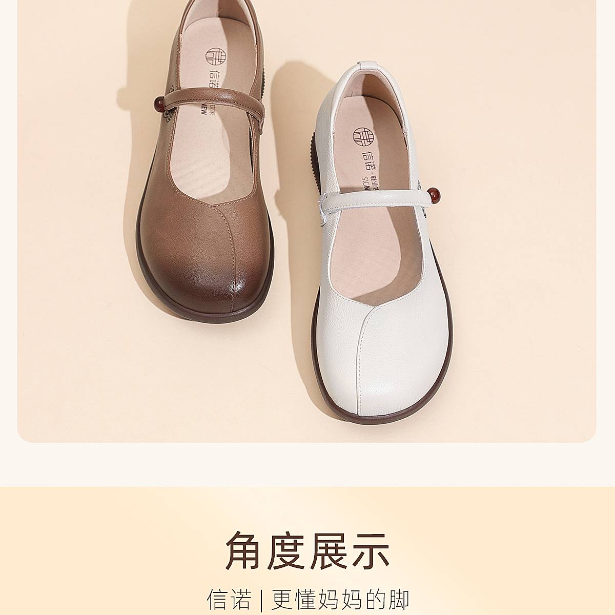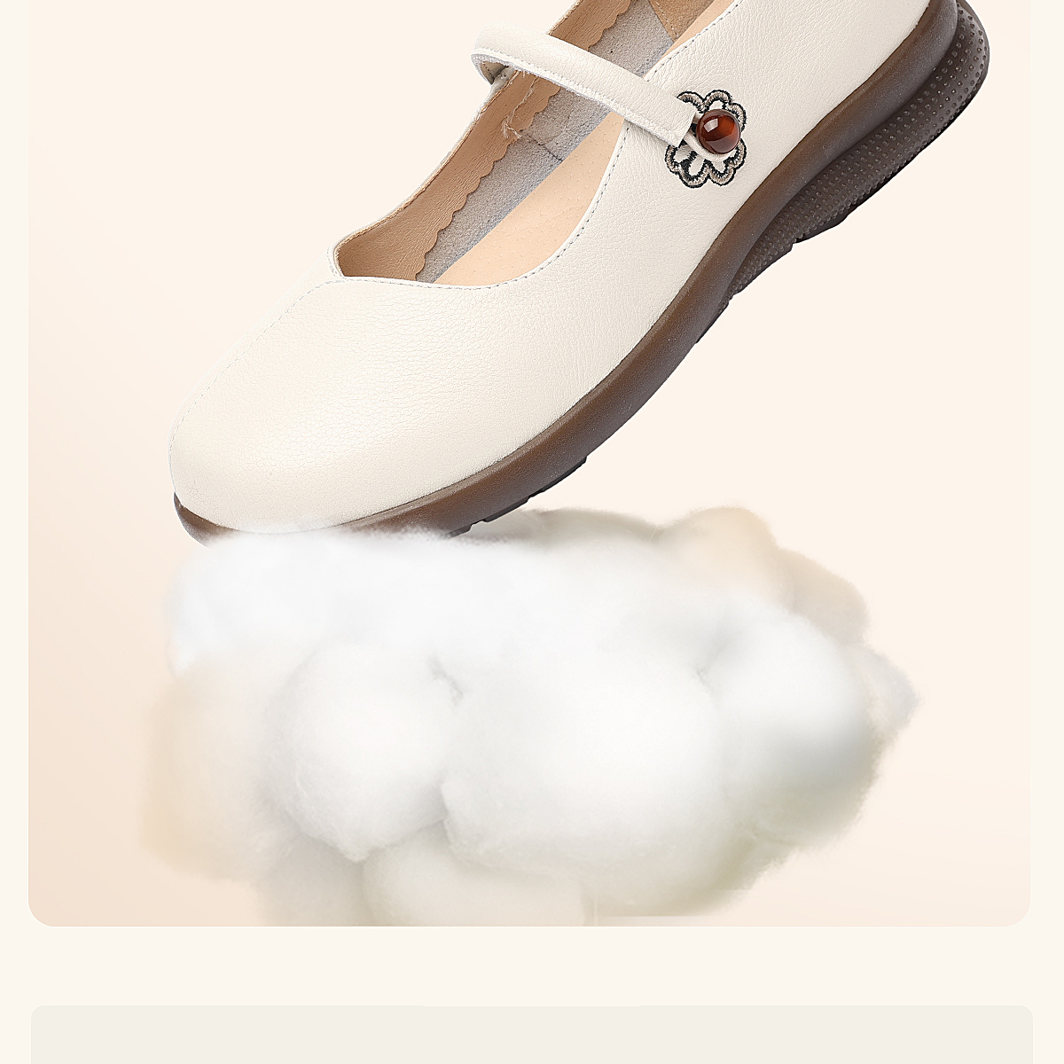 真皮软底玛丽珍鞋女平跟一字带扣奶奶鞋舒适单鞋6C1018-2