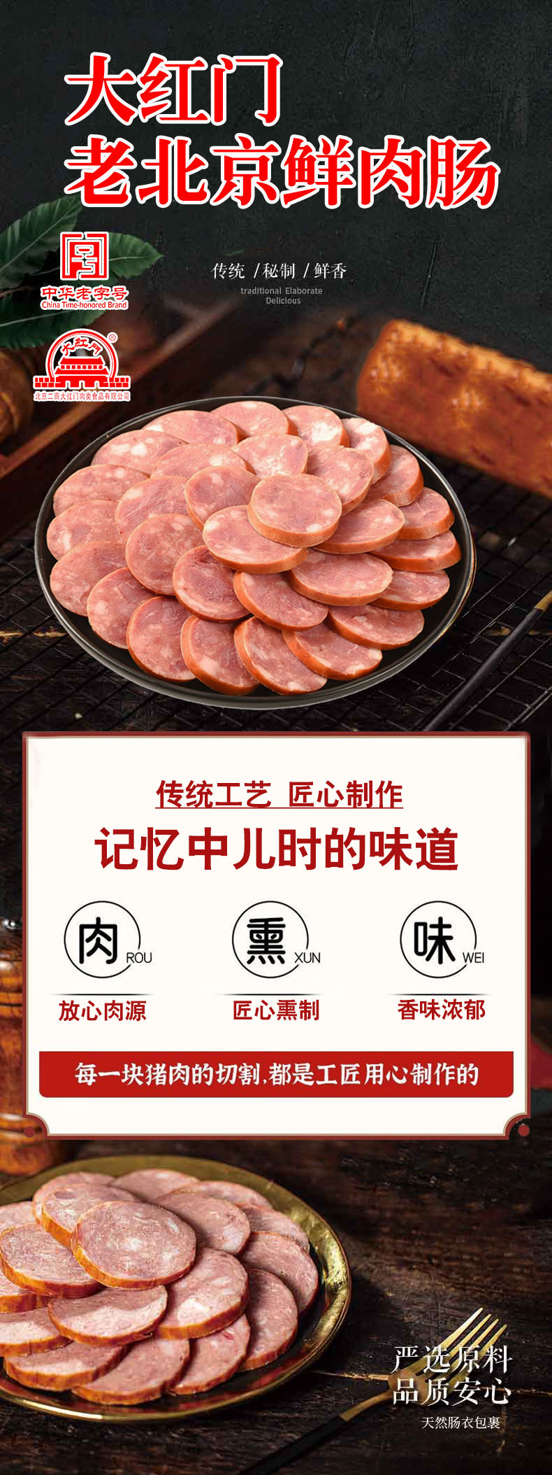 大红门老北京鲜肉肠,8袋装,二商大红门老字号,纯猪肉肠,甄选大红门冷鲜猪腿肉,大牌调味料,传统工艺,肉质纹理清晰、饱满,家人吃解馋、送人有面子,凉吃热吃吃法多样M
