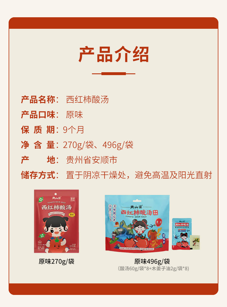 【新品推荐】南山婆【西红柿酸汤】270g*6袋 入口酸爽 汤鲜味美