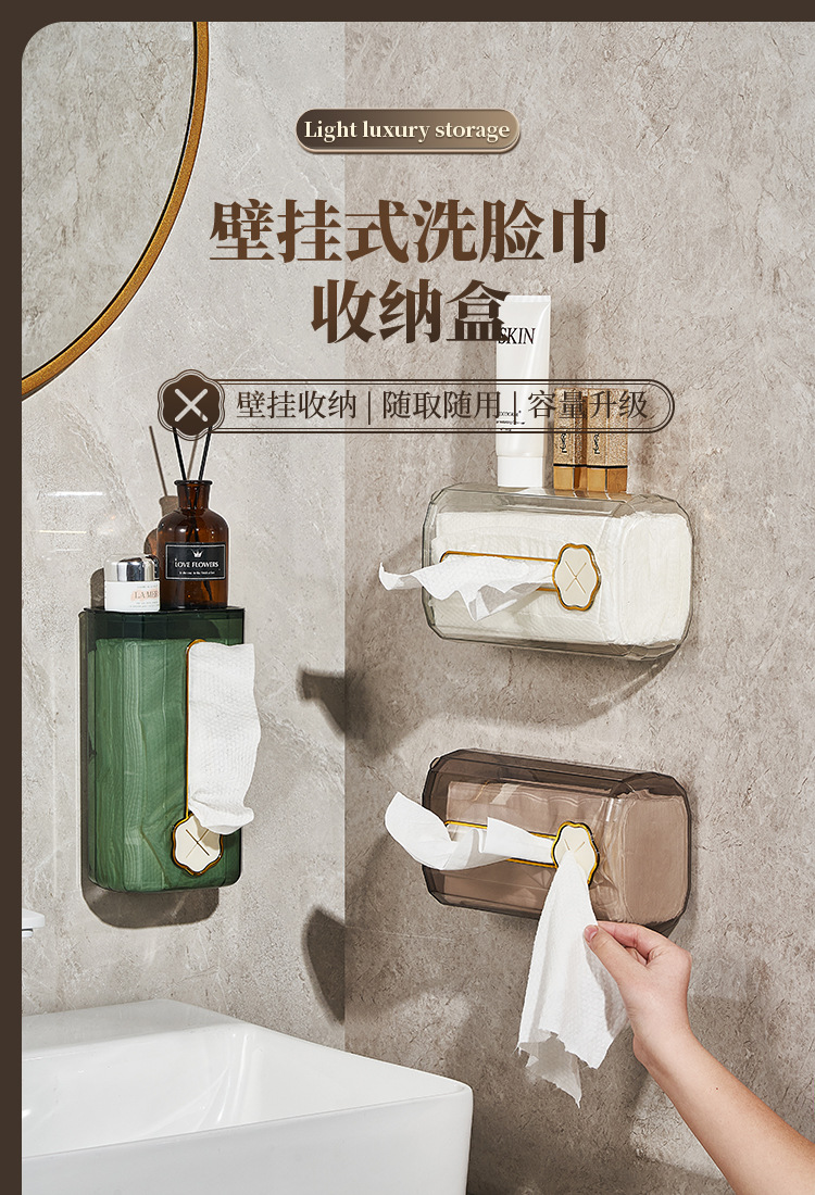 「三色可选!壁挂式」壁挂式洗脸巾盒免打孔浴室卫生间居家日用创意擦手巾收纳整理抽纸盒纸巾盒