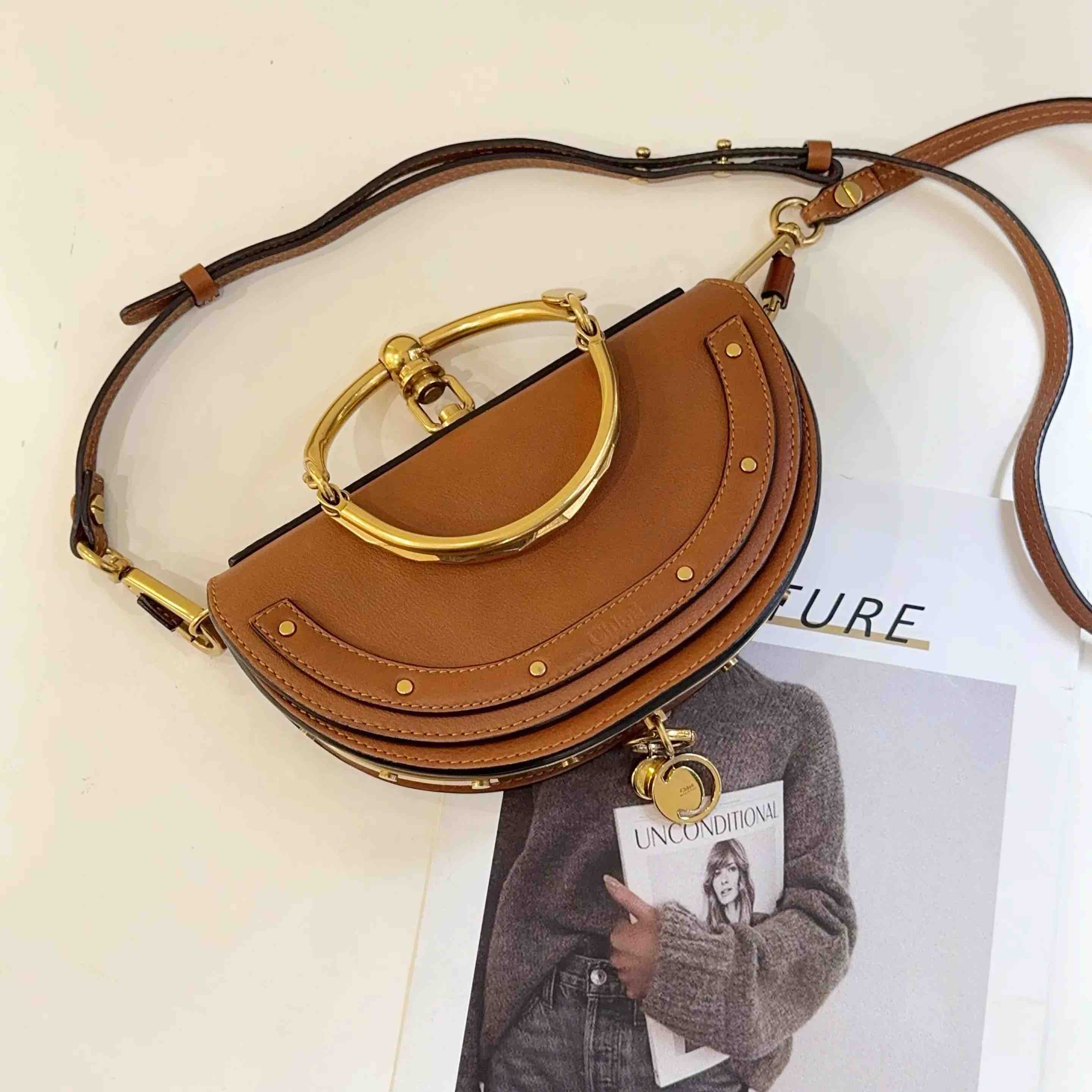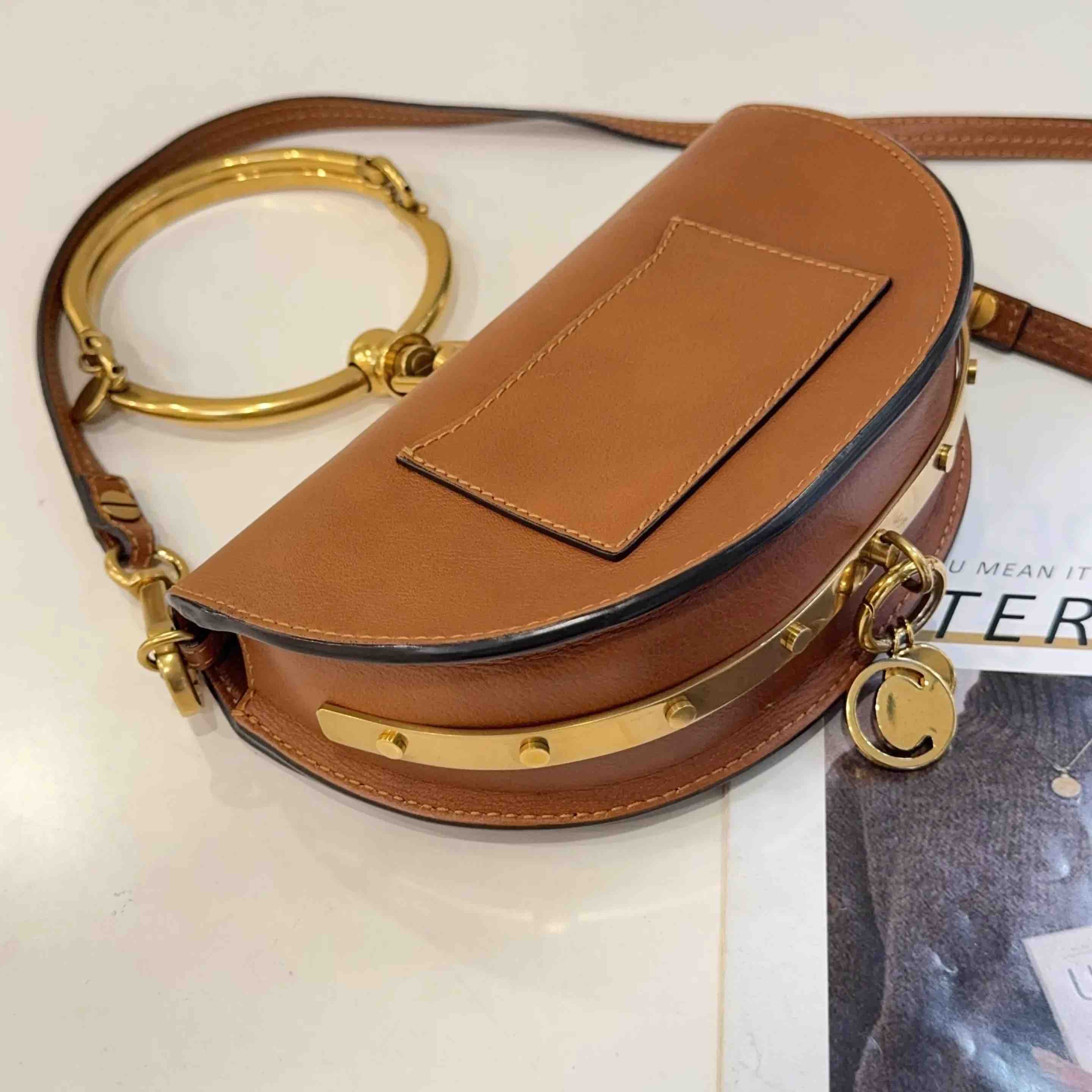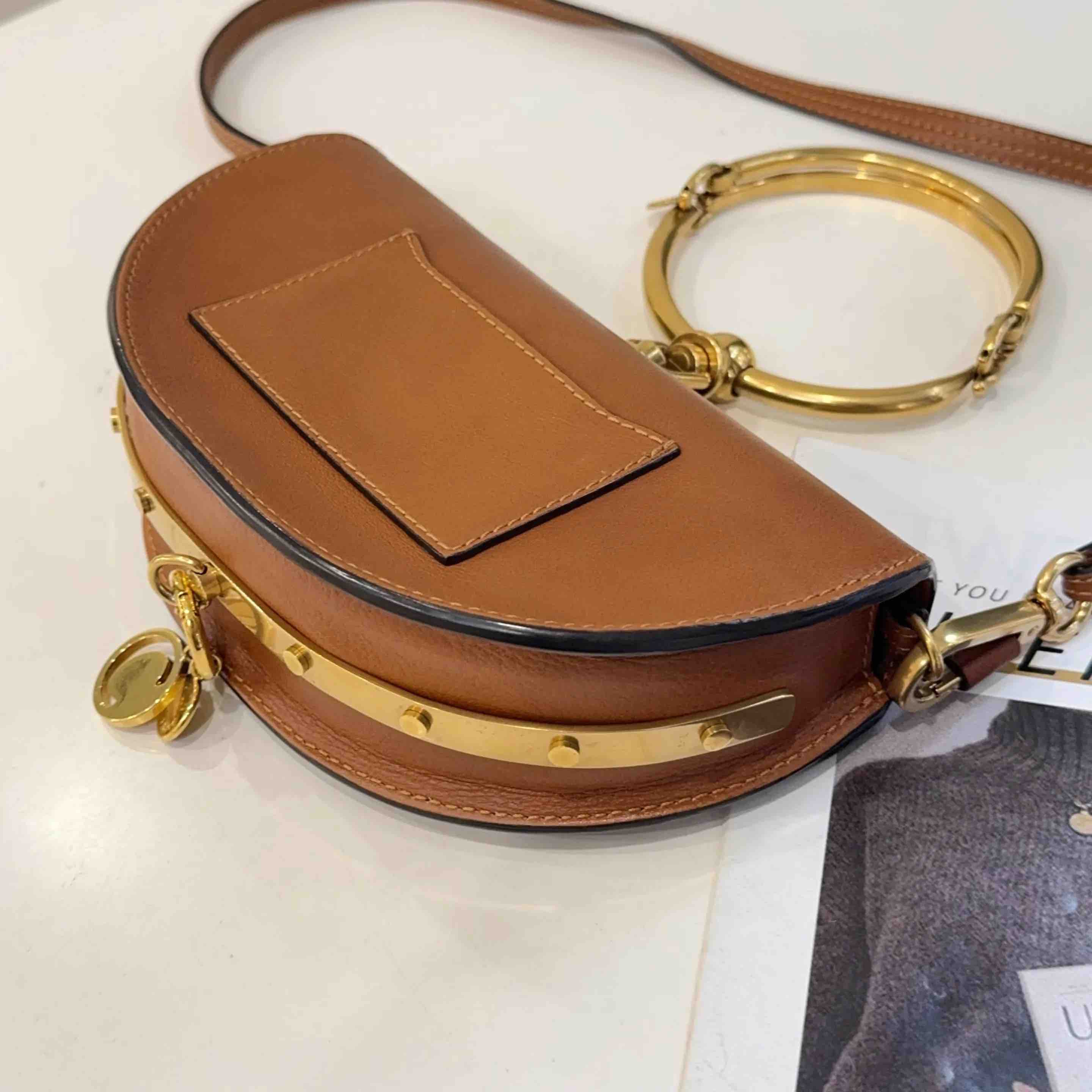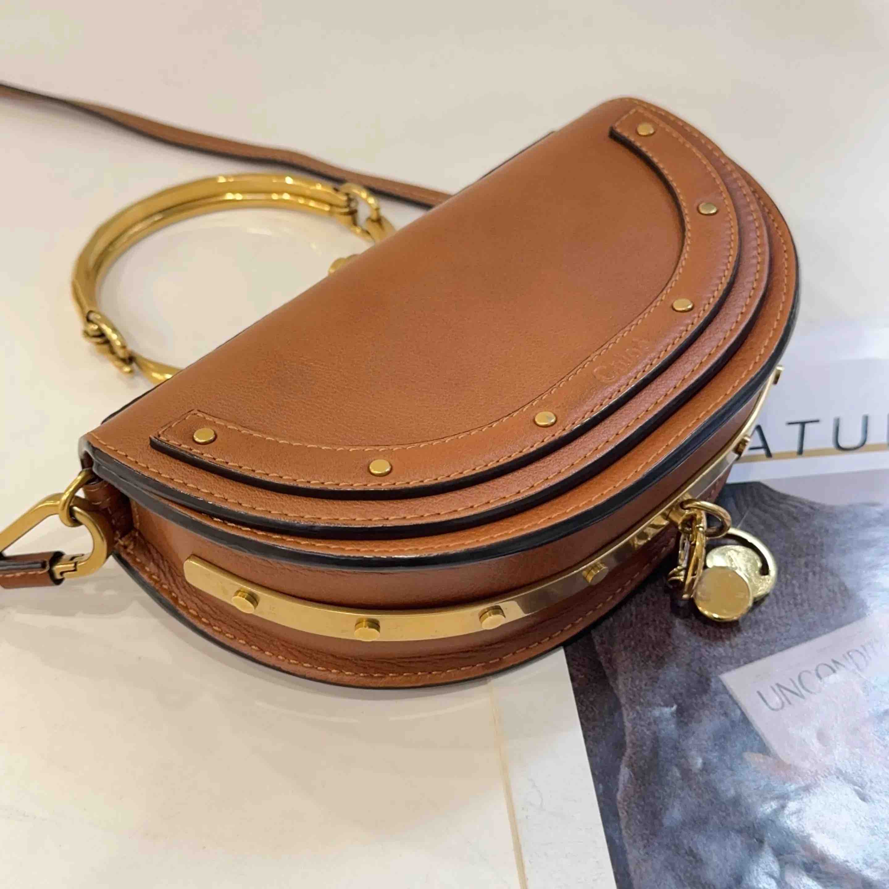 【商品详情】正品二手 克洛伊 Nile 小号 棕色 金扣 手环 半月包🍟 95新 20*13 配件:肩带。金属正常使用感。法式浪漫 适合凹造型身