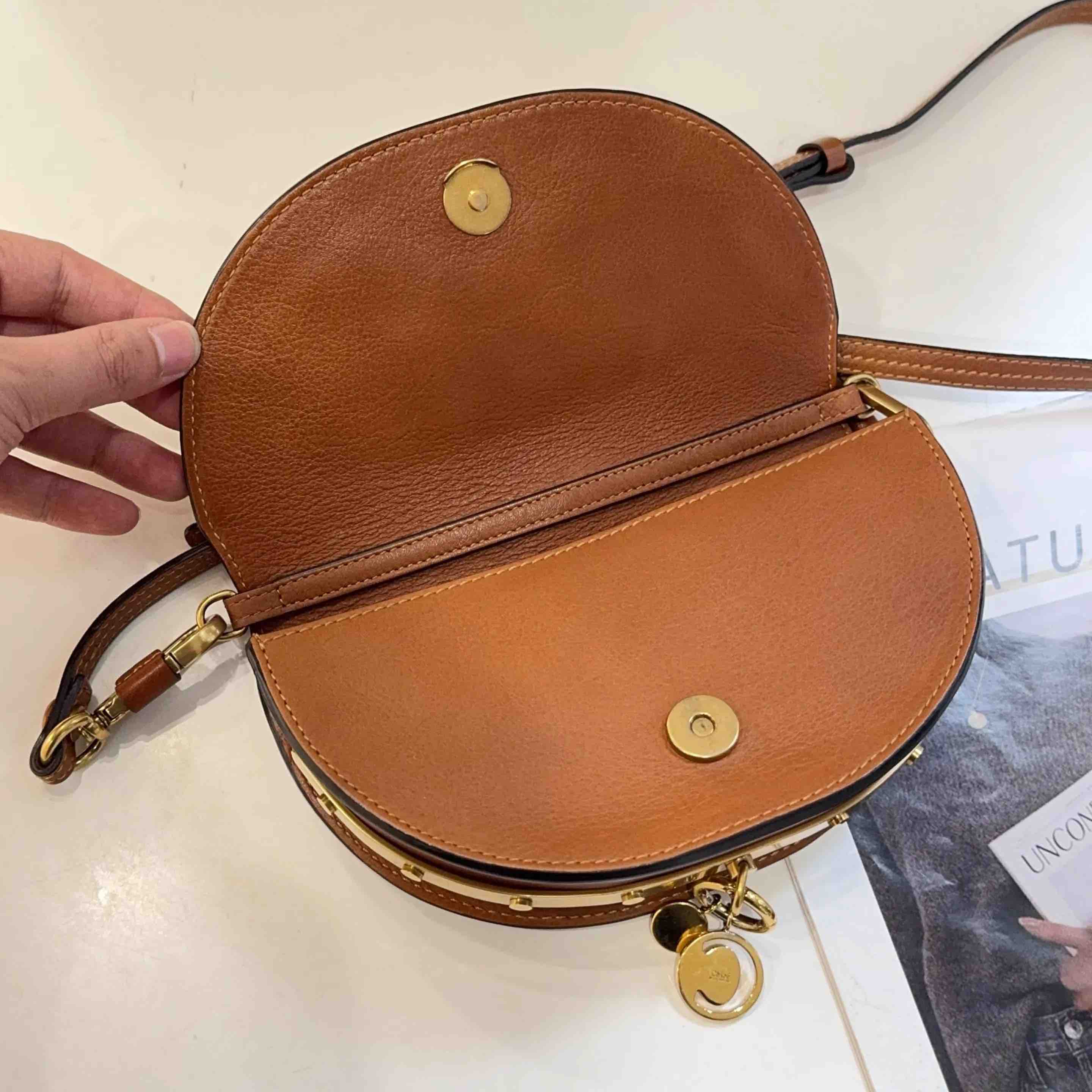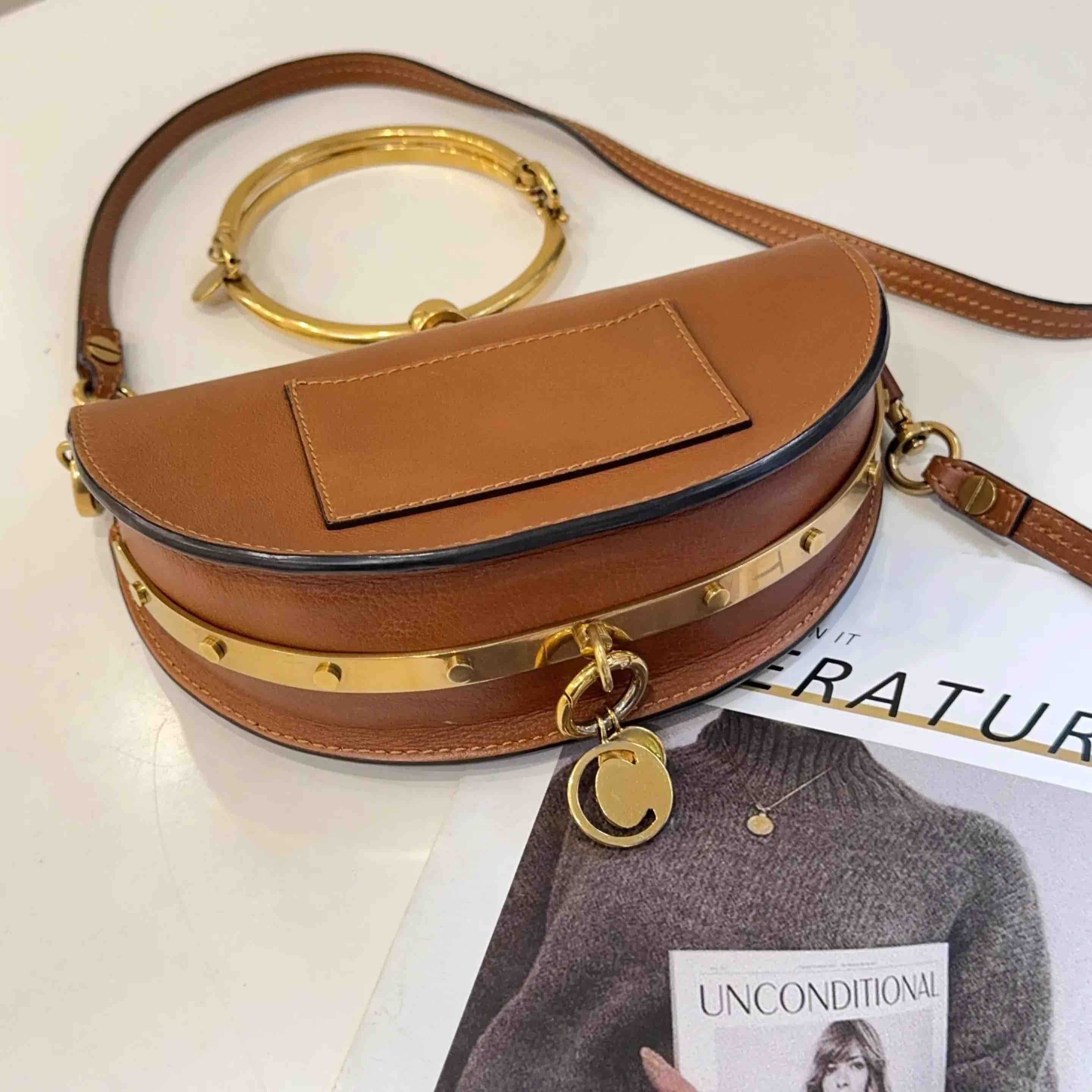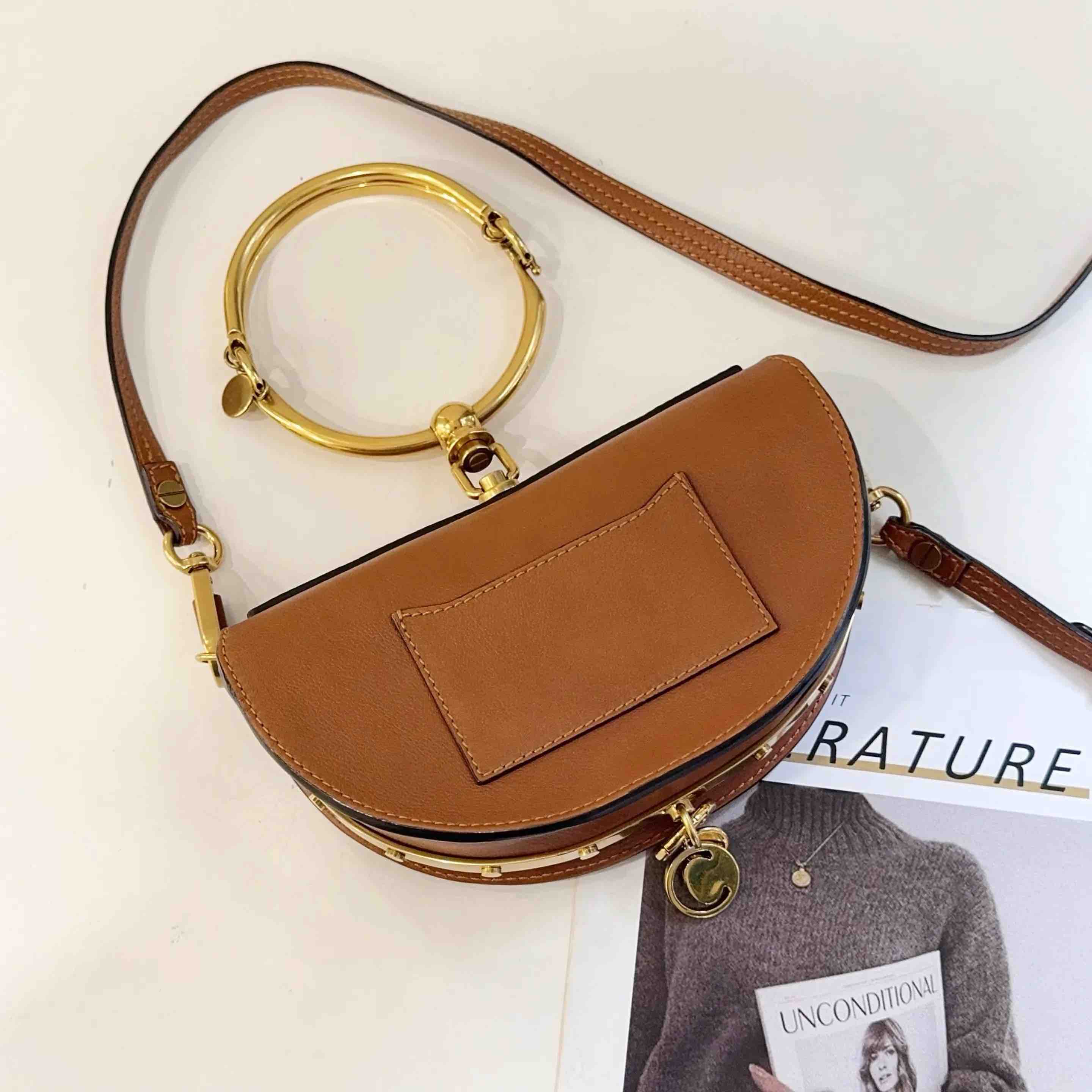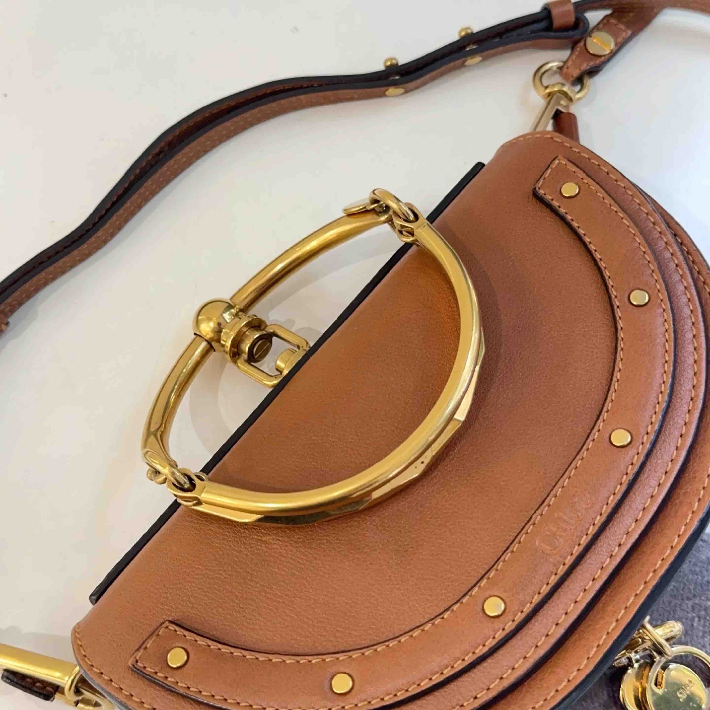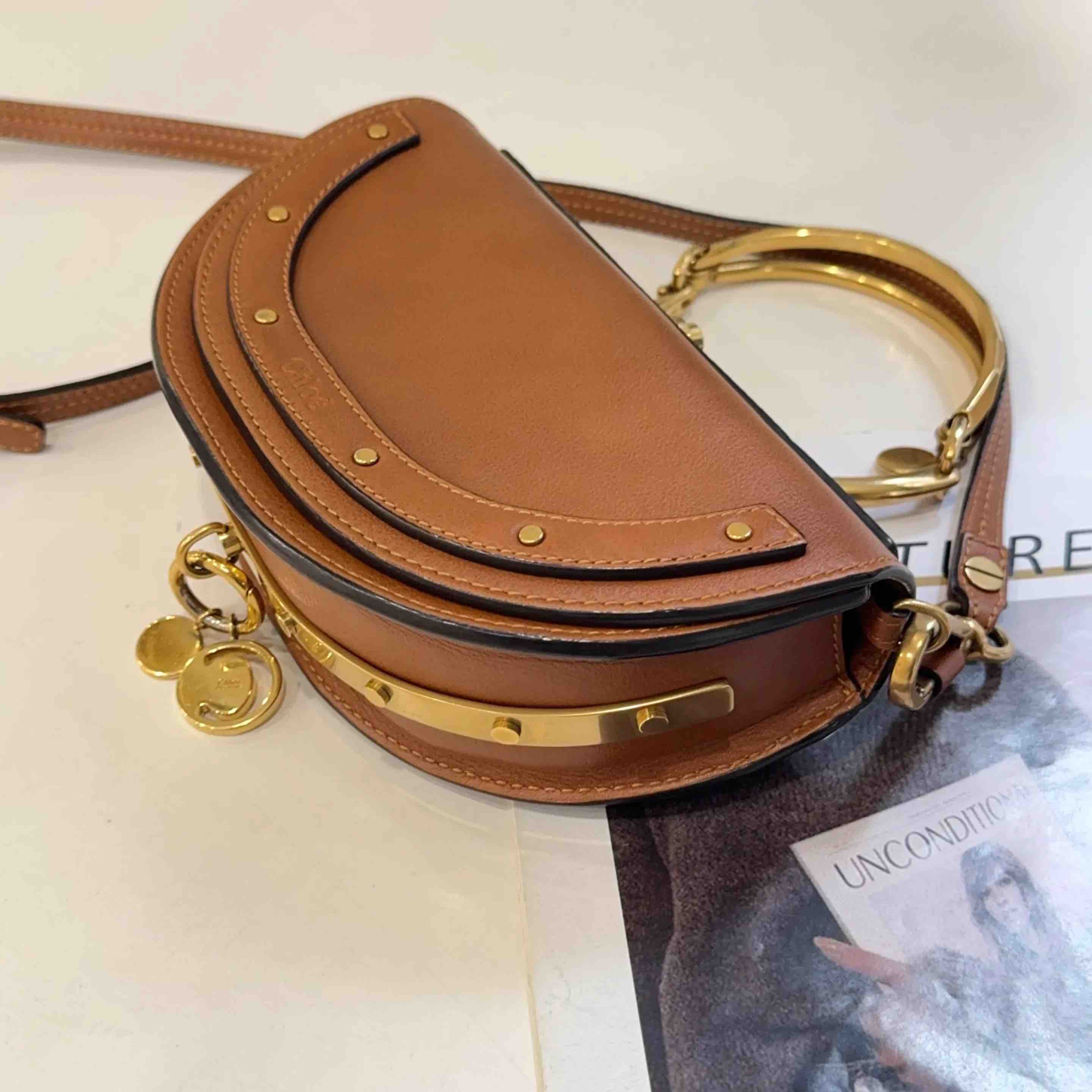 【商品详情】正品二手 克洛伊 Nile 小号 棕色 金扣 手环 半月包🍟 95新 20*13 配件:肩带。金属正常使用感。法式浪漫 适合凹造型身