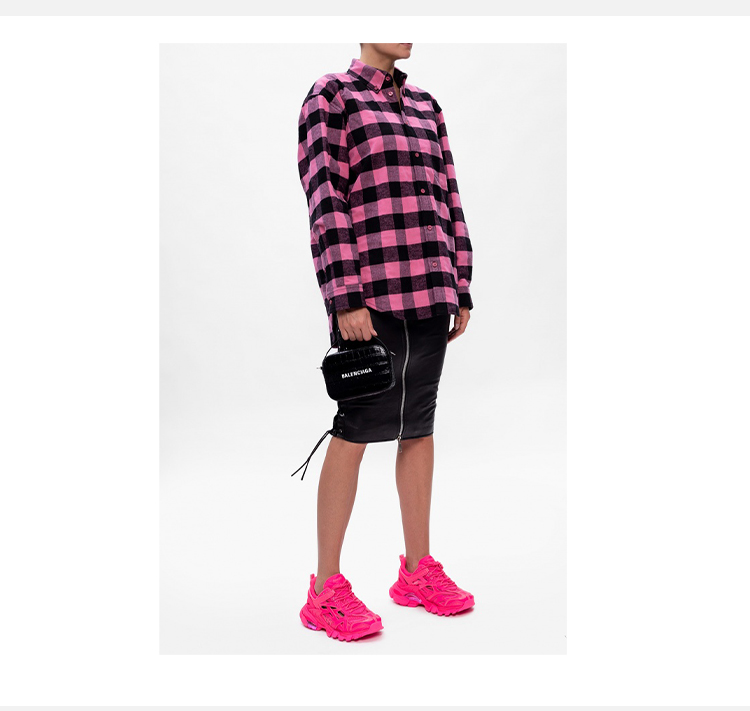BALENCIAGA 巴黎世家 女士再生灰色网眼和尼龙鞋底休闲运动鞋老爹鞋 玫红色 568615 W2FC1 5845