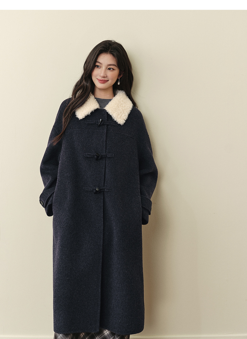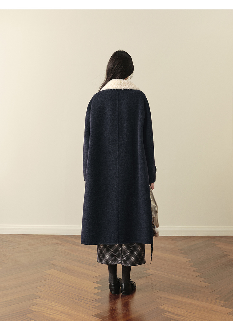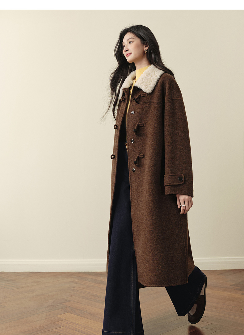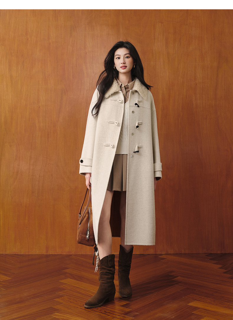 【严选】【牛角可露丽】诗凡黎100绵羊毛大衣2025冬新款羊羔毛领长款外套7G9370271
