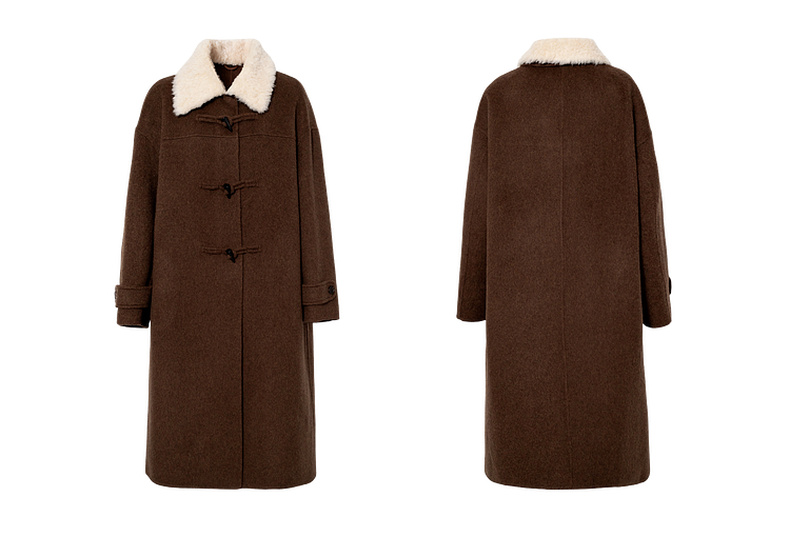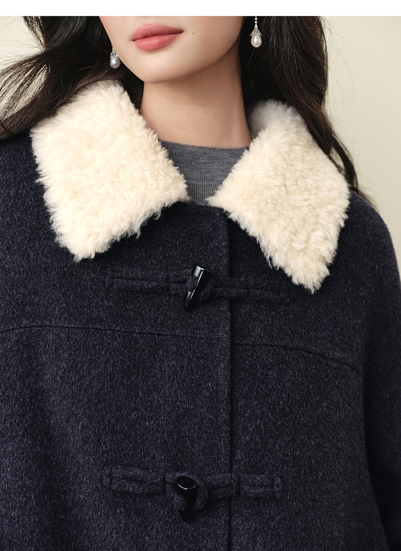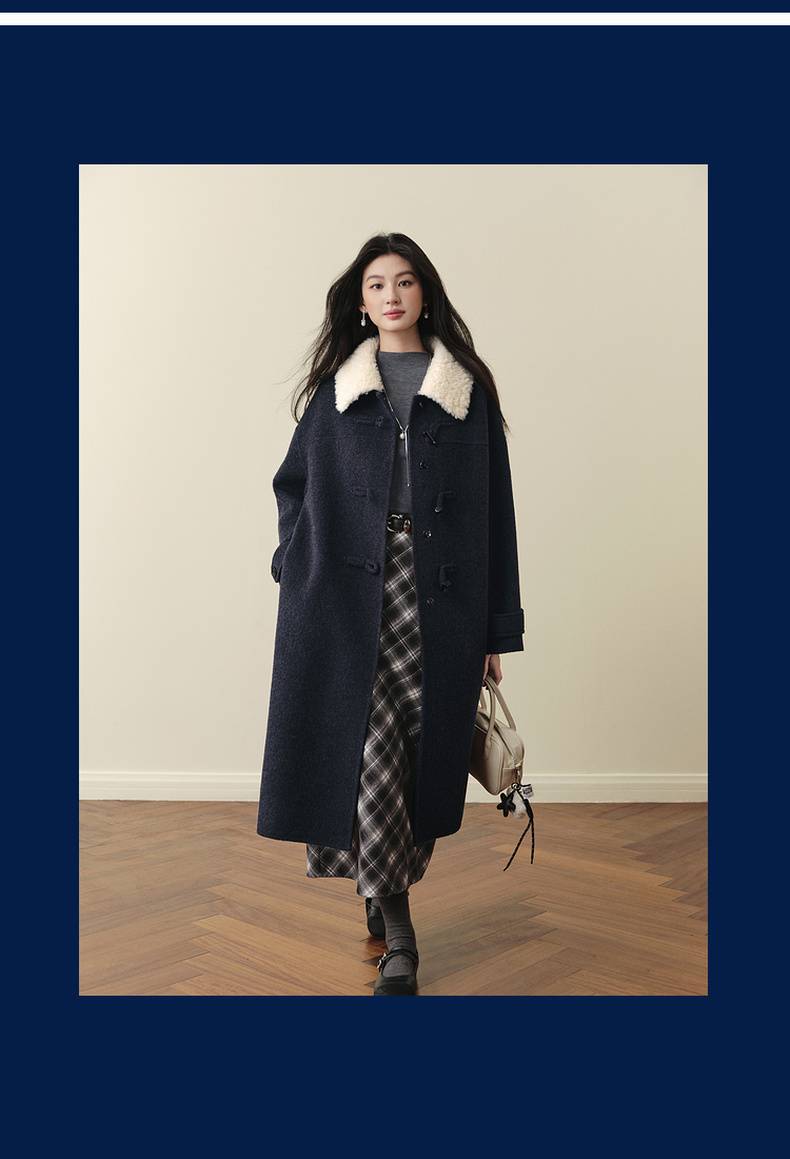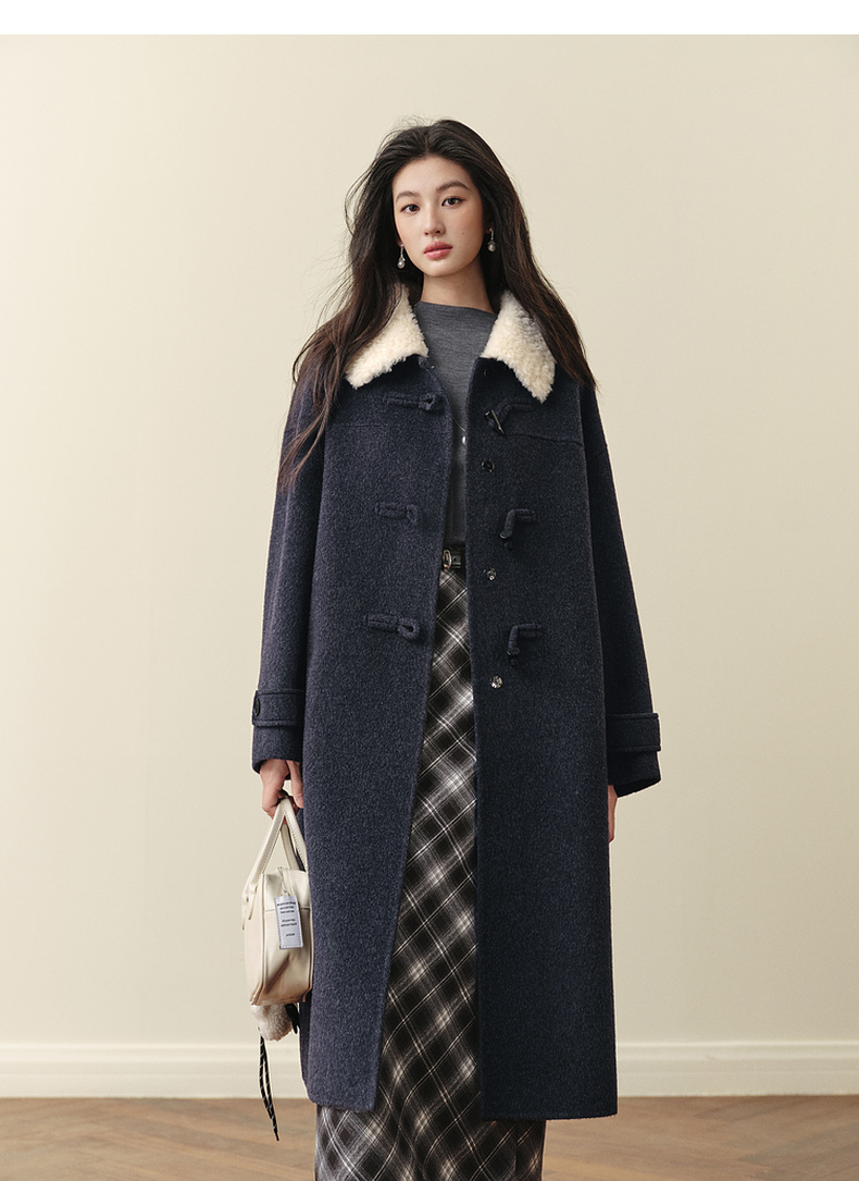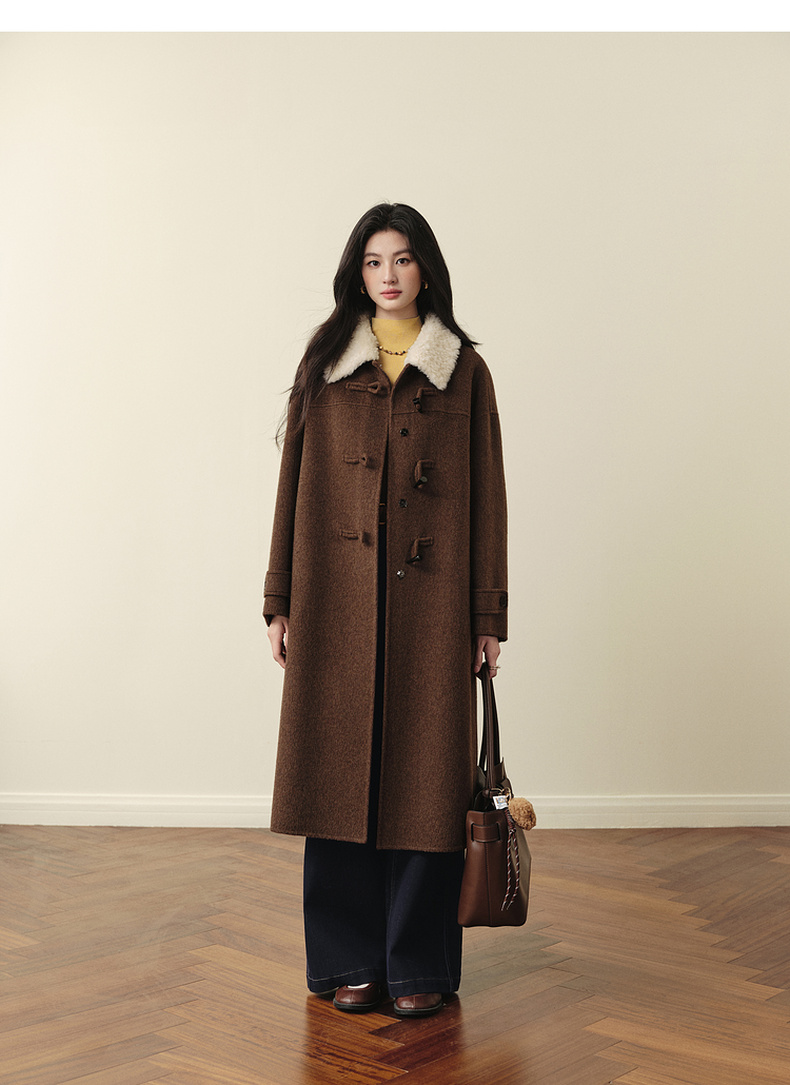 【严选】【牛角可露丽】诗凡黎100绵羊毛大衣2025冬新款羊羔毛领长款外套7G9370271