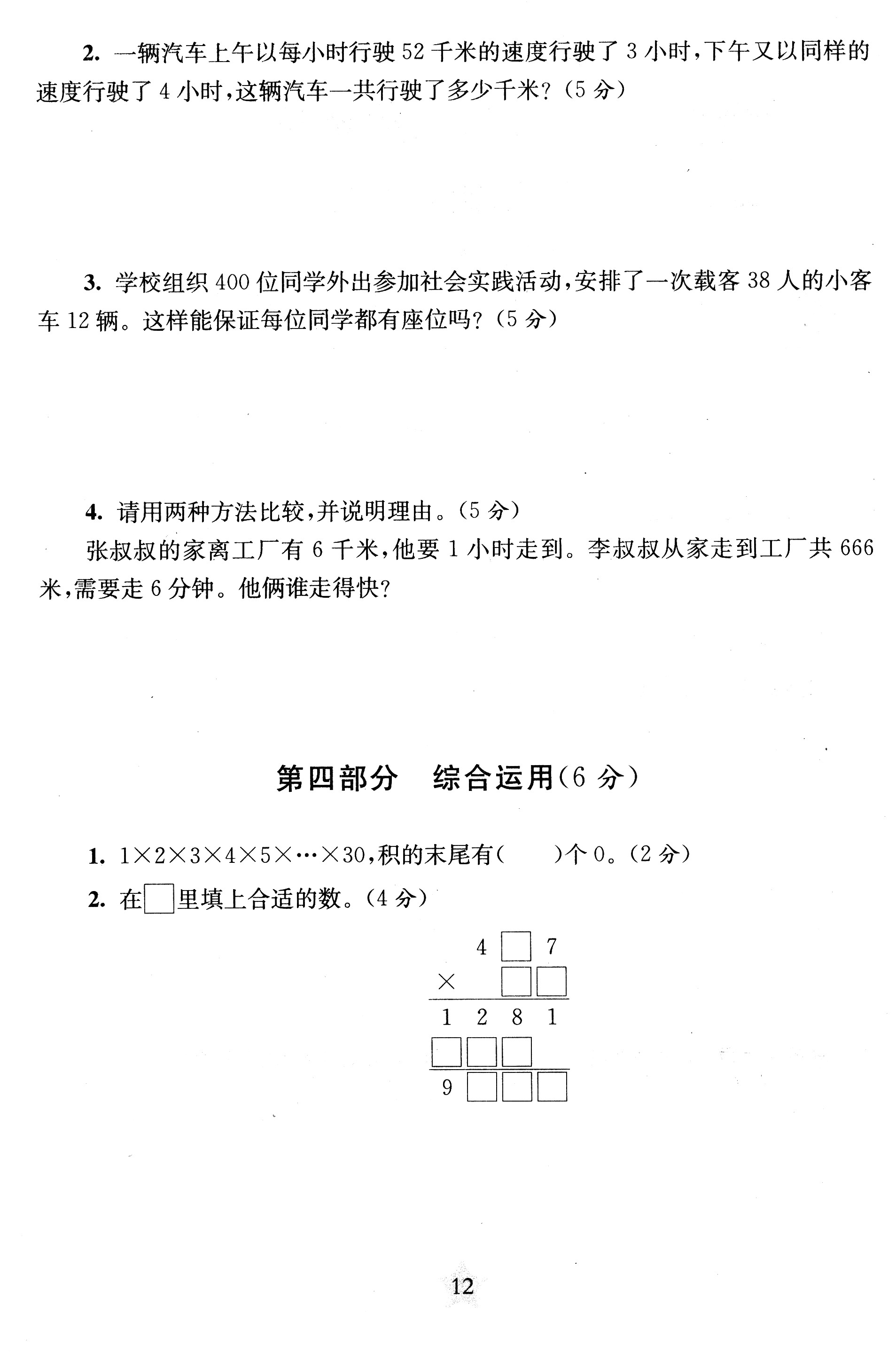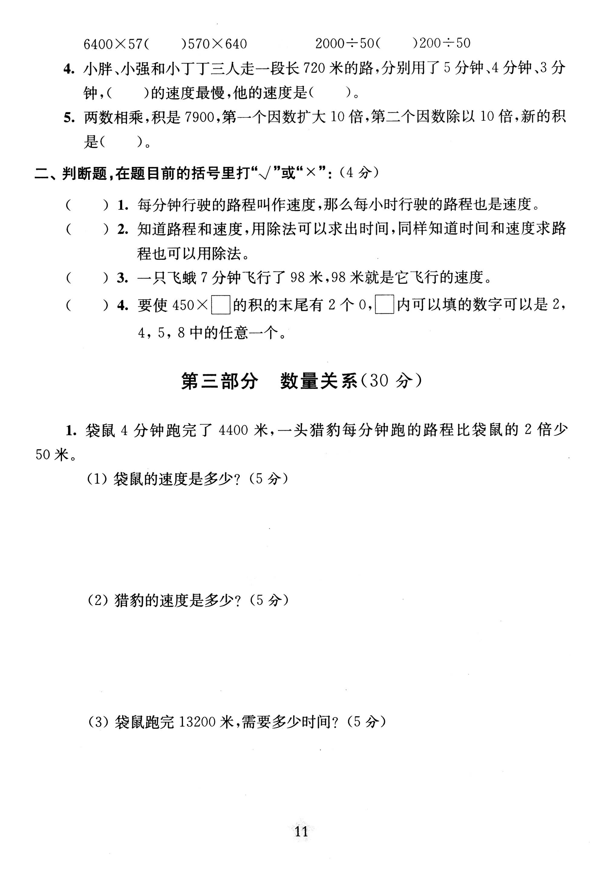第四,在切实减轻学生过重学习负担的前提下,每个单元的训练保证充分的训练量,供家长和学生根据实际情况自主调控选用,也使你能有机会从不同角度、不同形式进行训练,开拓思路,发展思维。